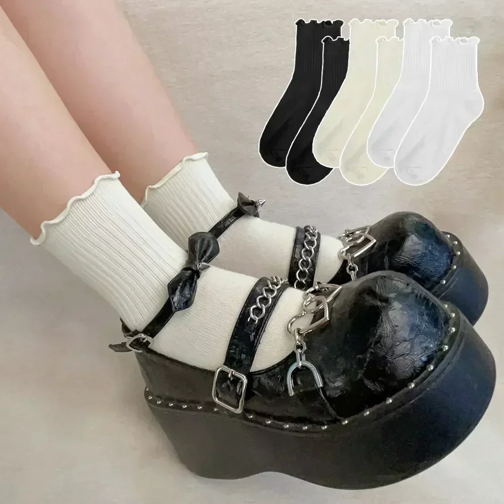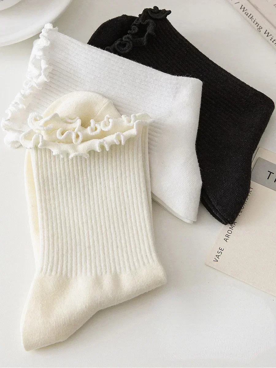 Lbsfy Thigh High Socks Knit Lace Bowknot Autumn and Winter Thick Leg Warmers Stockings White Black Lolita Cute Over the Knee Socks