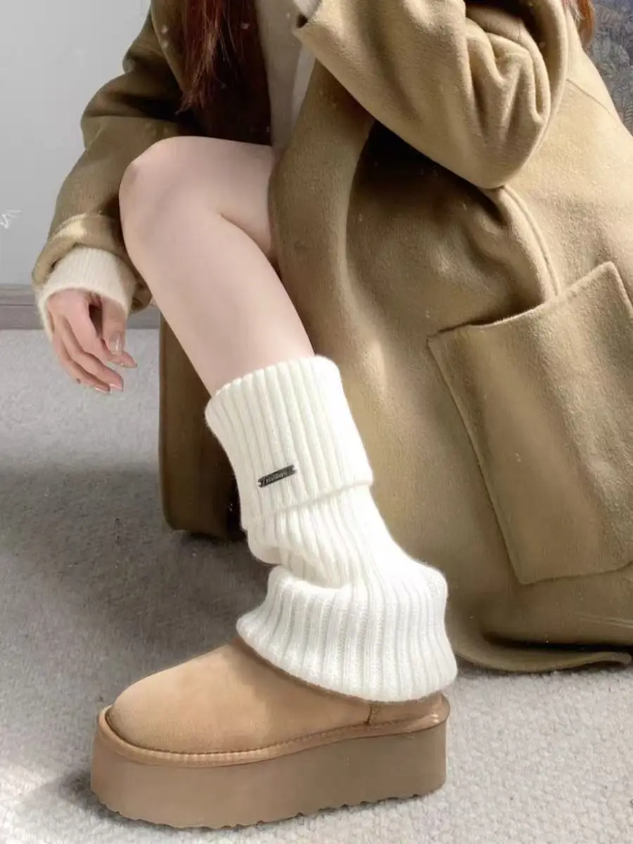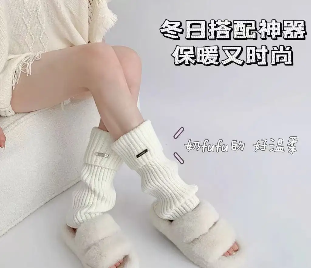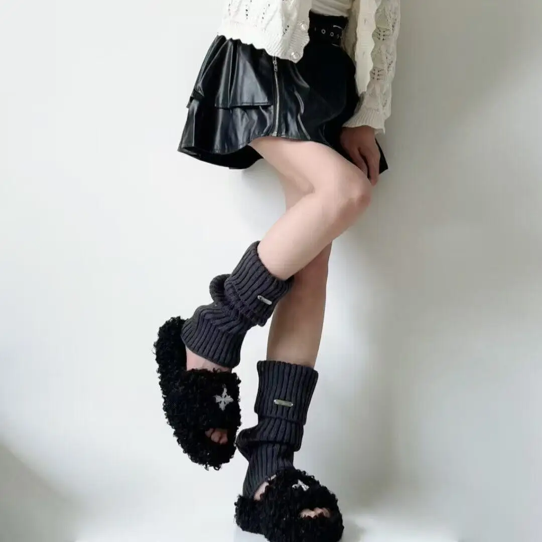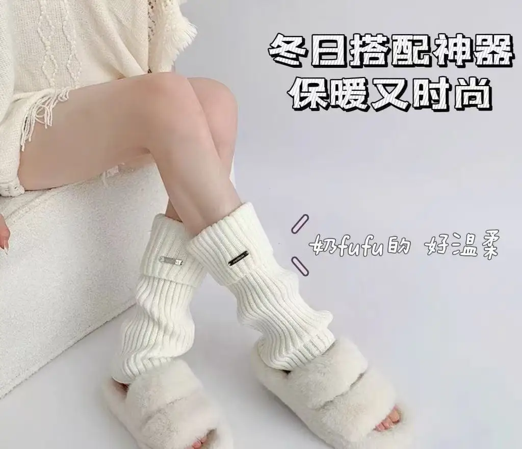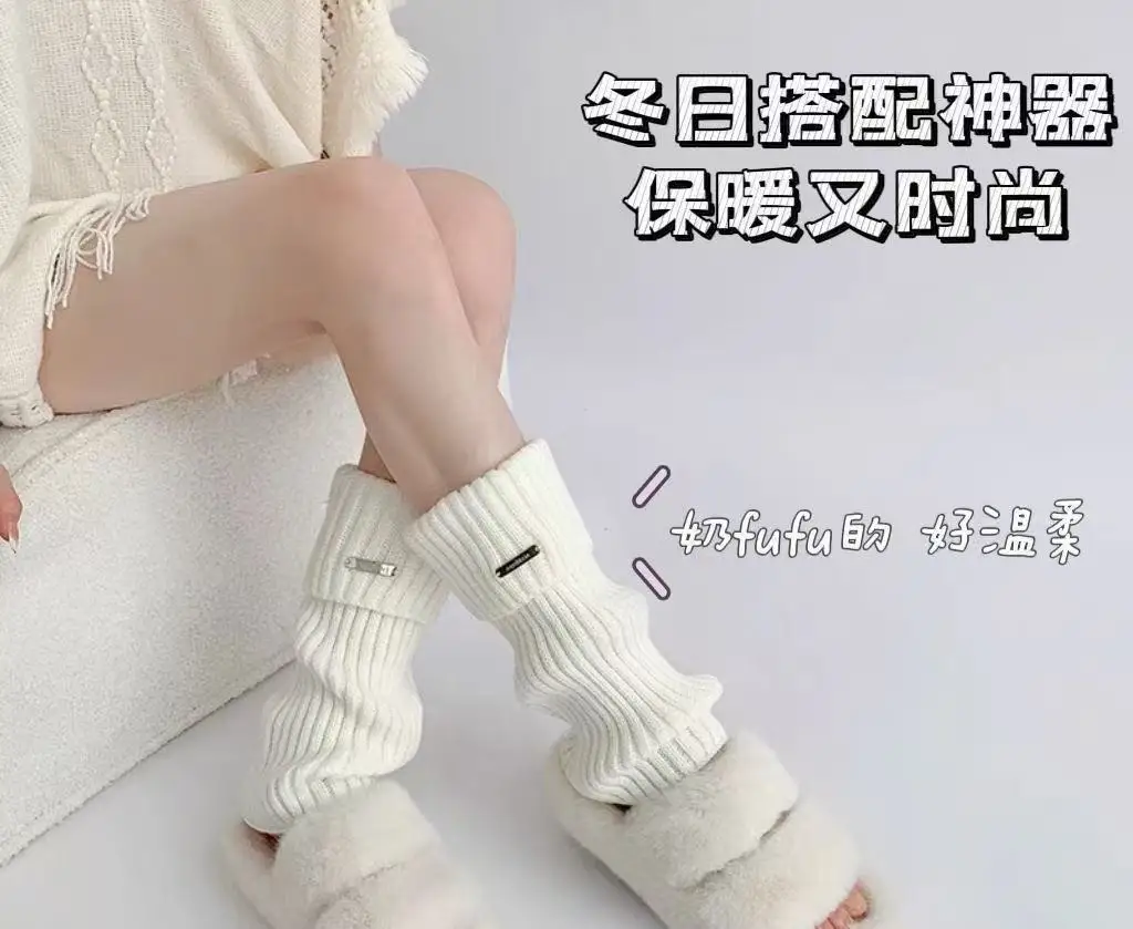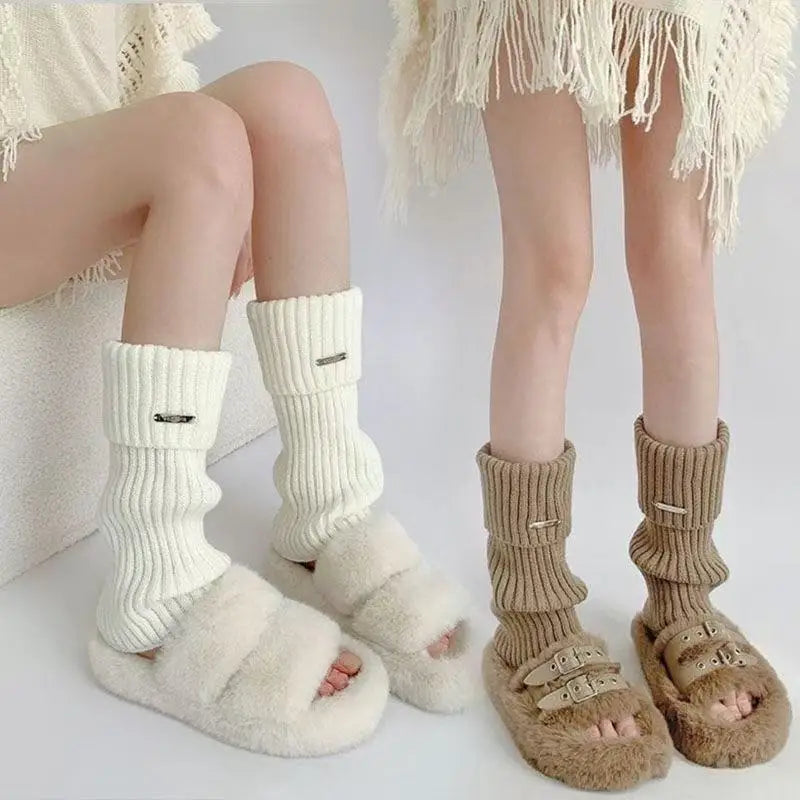 Lbsfy 1 Pair White Black Women Pleated Pile Metal Tags Socks Japanese Style Lolita Girls Autumn Winter Loose Striped Ankle Socks