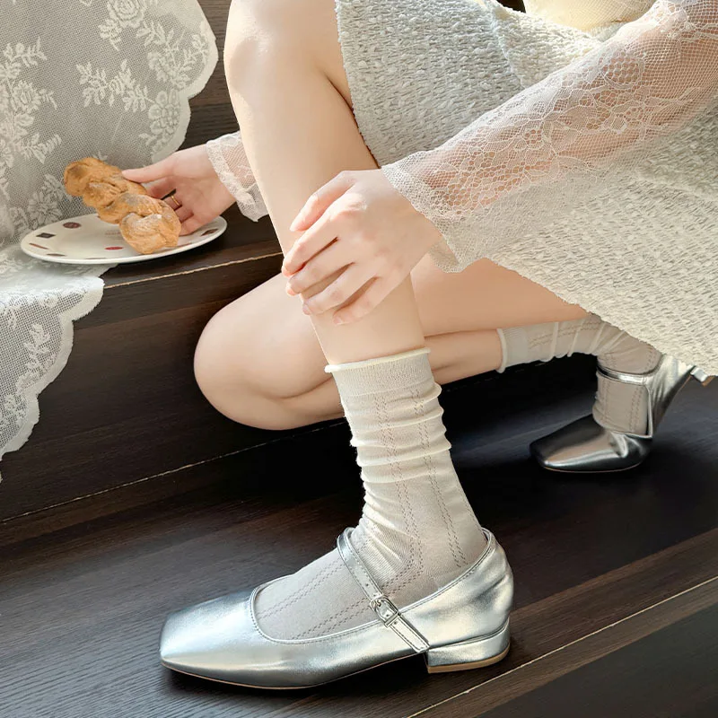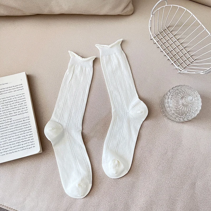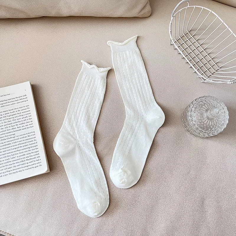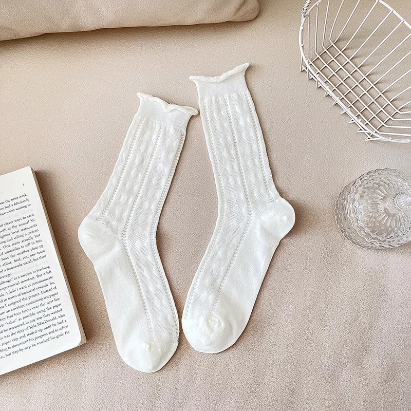 Lbsfy 1pair Spring Women Heart Hollow Out Lolita Style Cute Socks Thin Middle Tube Socks for Girl Sweet Soft Designer Loose Socks