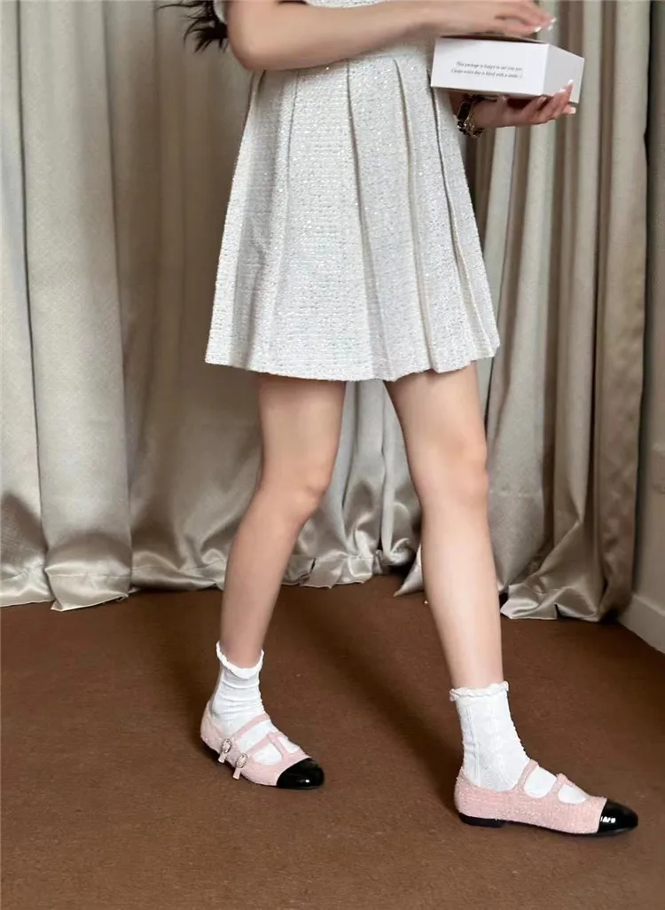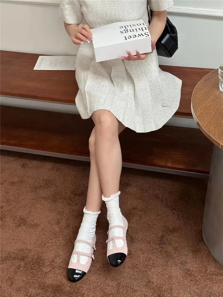 LBSFY - 2024 Brand New Women Flats Fashion Round Toe Mary Jane Ballerinas Flat Heel Casual Ballet Shoes Square Low Heel Pumps