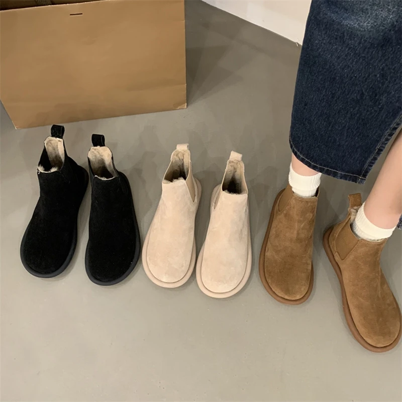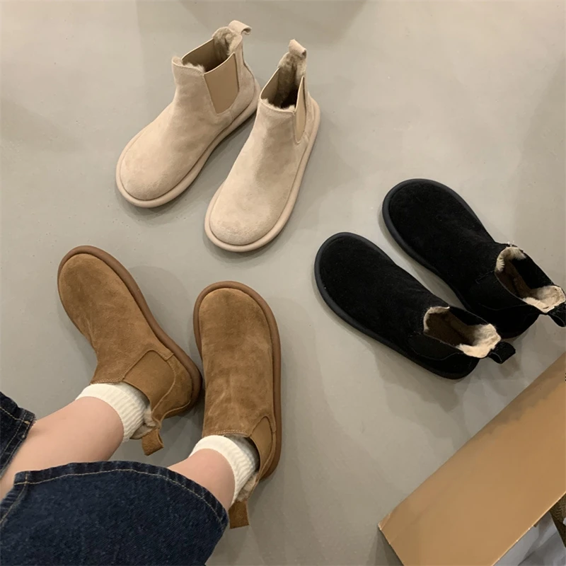 LBSFY - 2024 flat bottom women's chelsea boots anti-slip snow boots women winter warm shoes female boots large size
