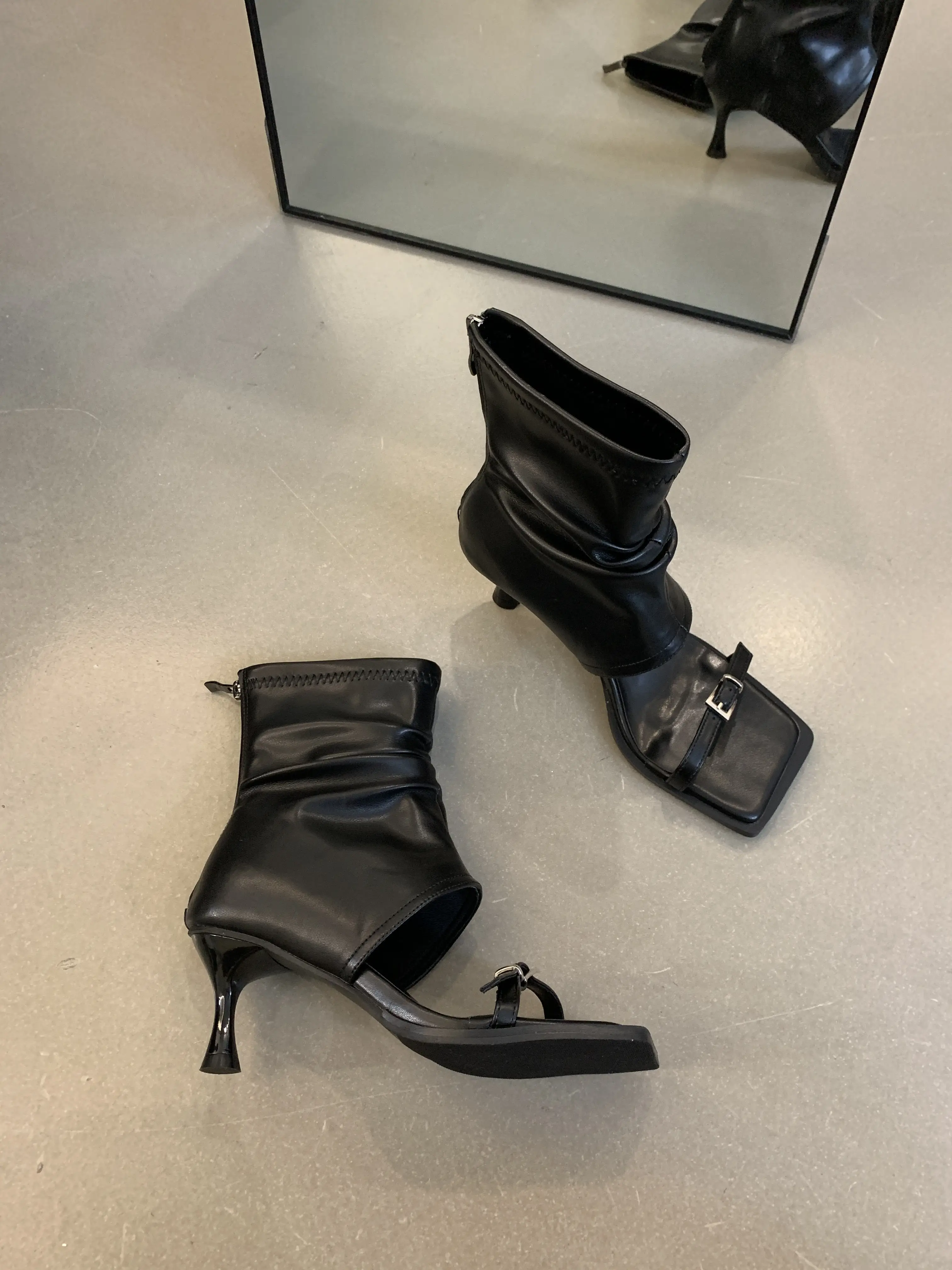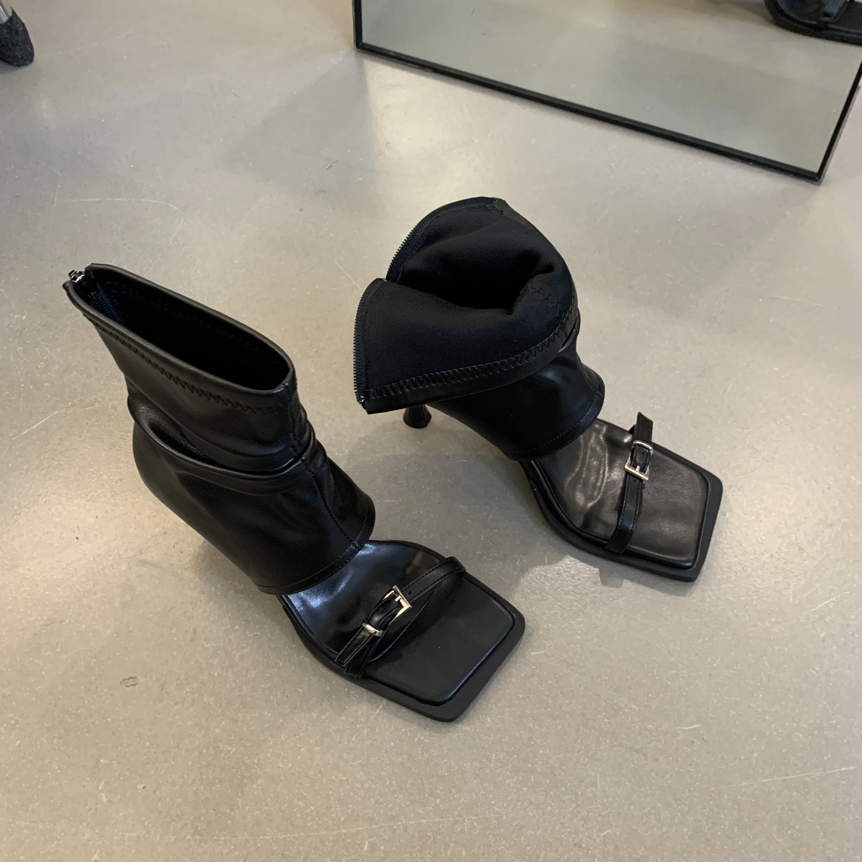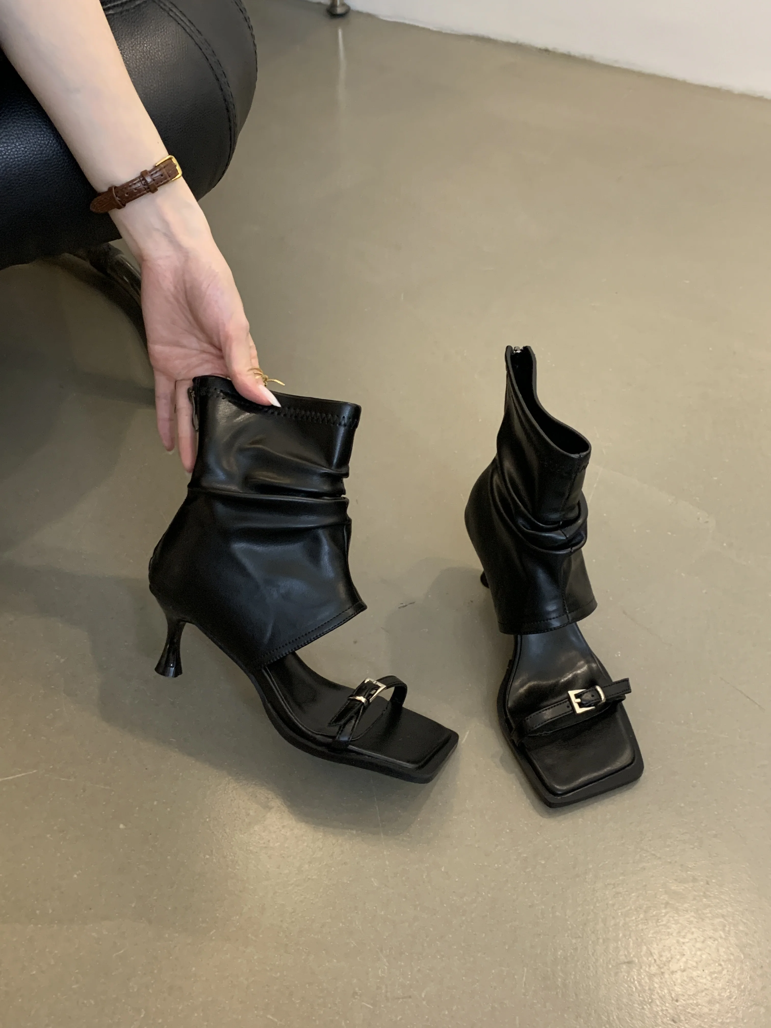 LBSFY - 2024 Gladiator Square Toe Women Boots Sandals Zipper Booties Thin Low Heels Ladies Shoes Designer Zapatos De Mujer