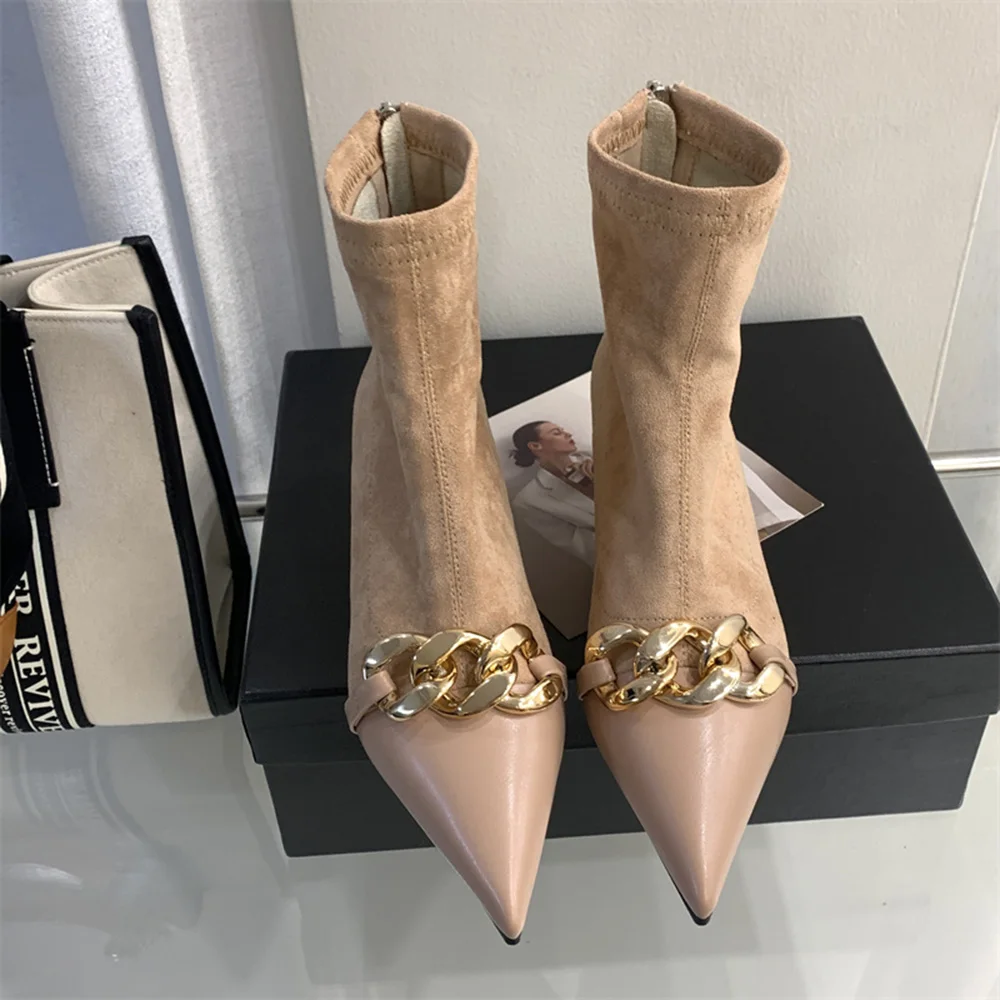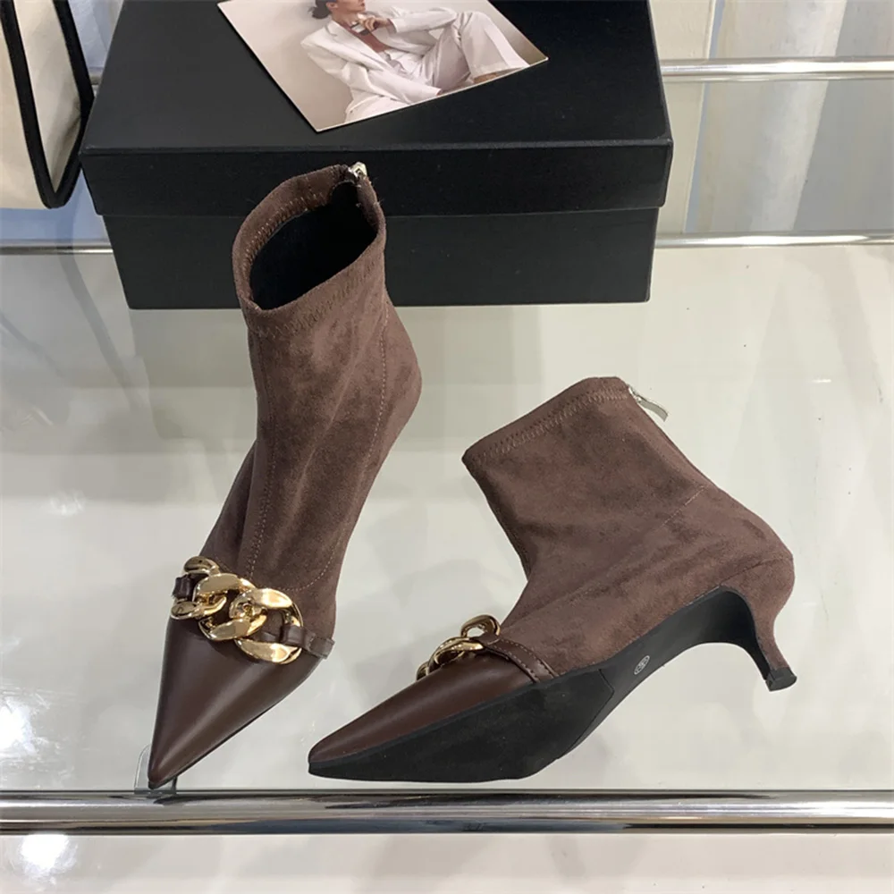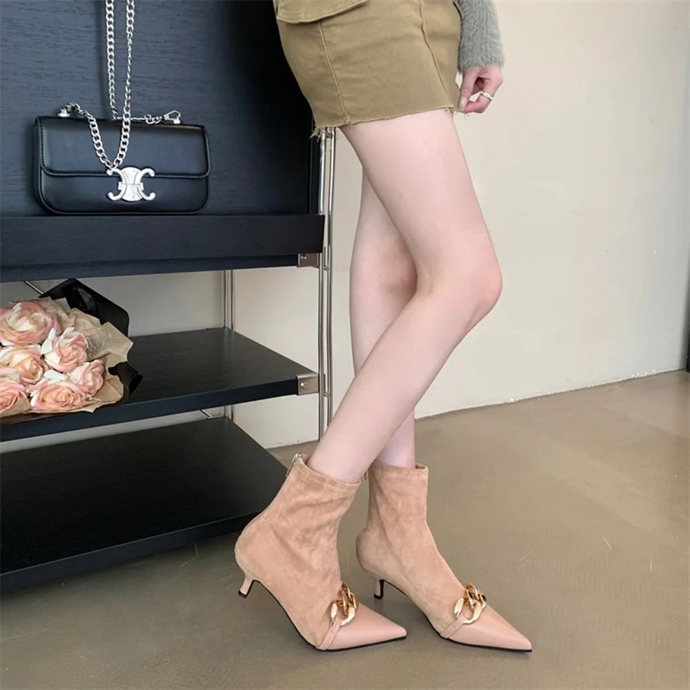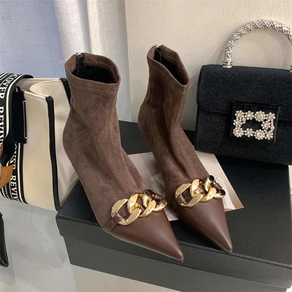 LBSFY - 2024 New Arrivals Women Ankle Boots Chelsea Botas Thin Mid Heels Metal Chain Size 35-40 Autumn Winter Sock Botas Size 35-40