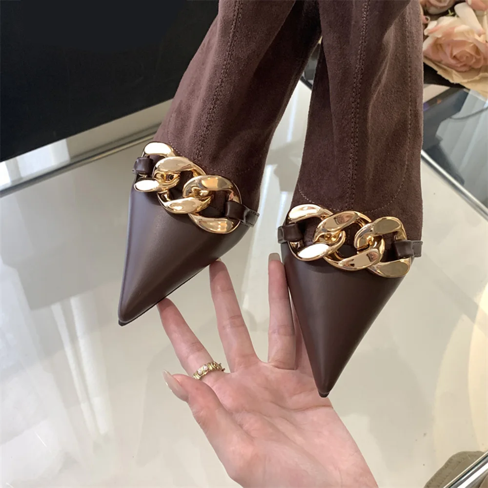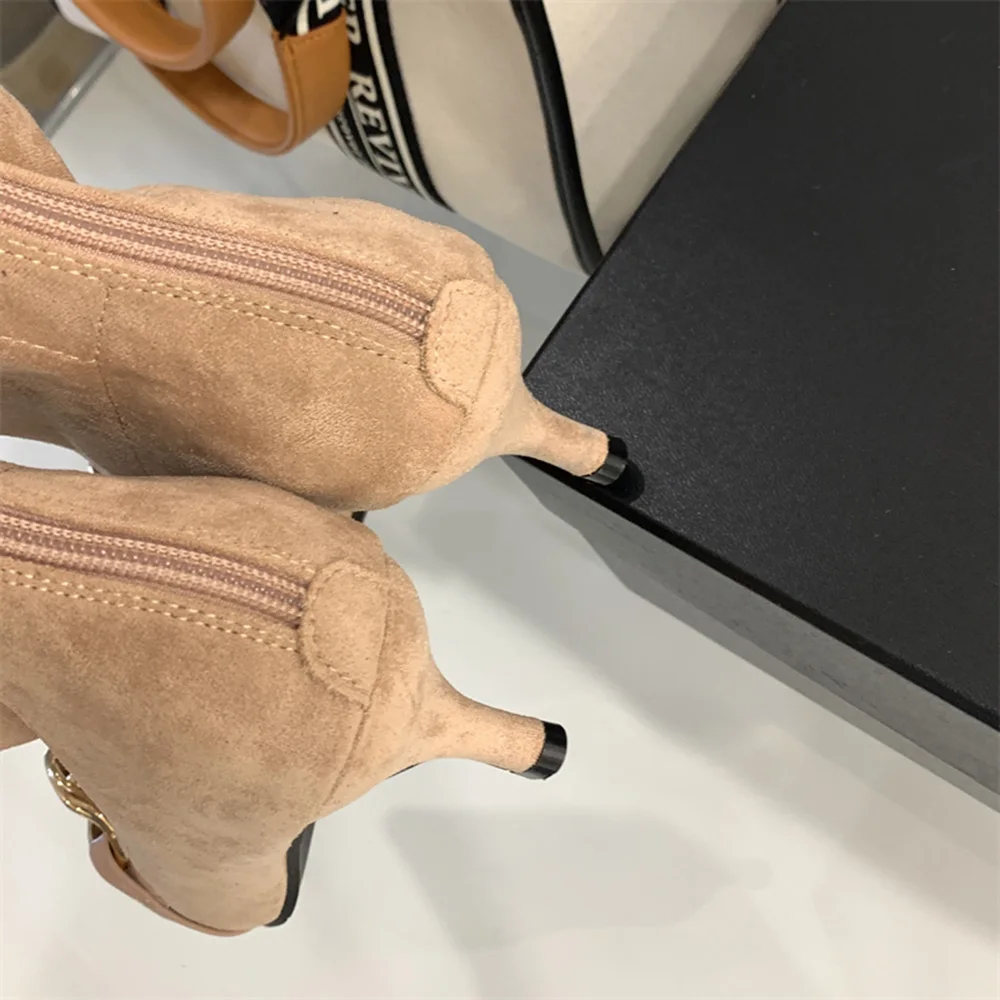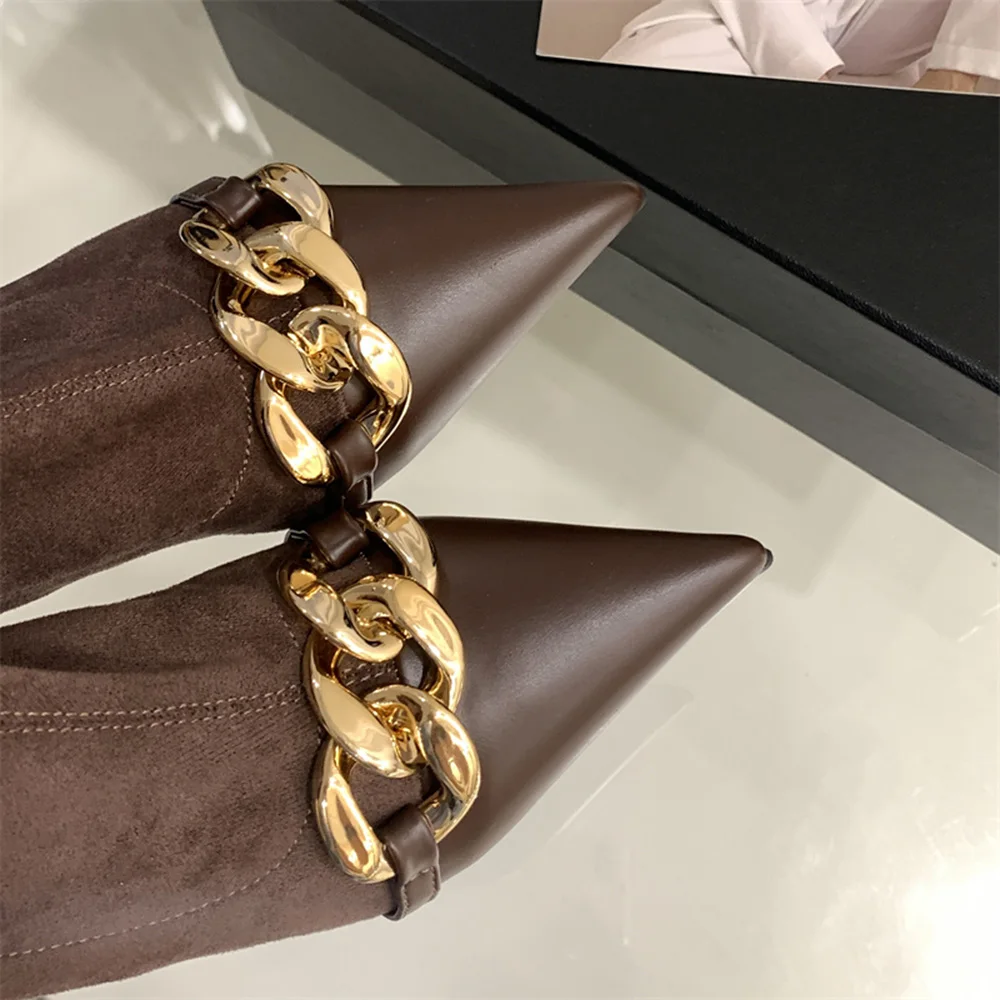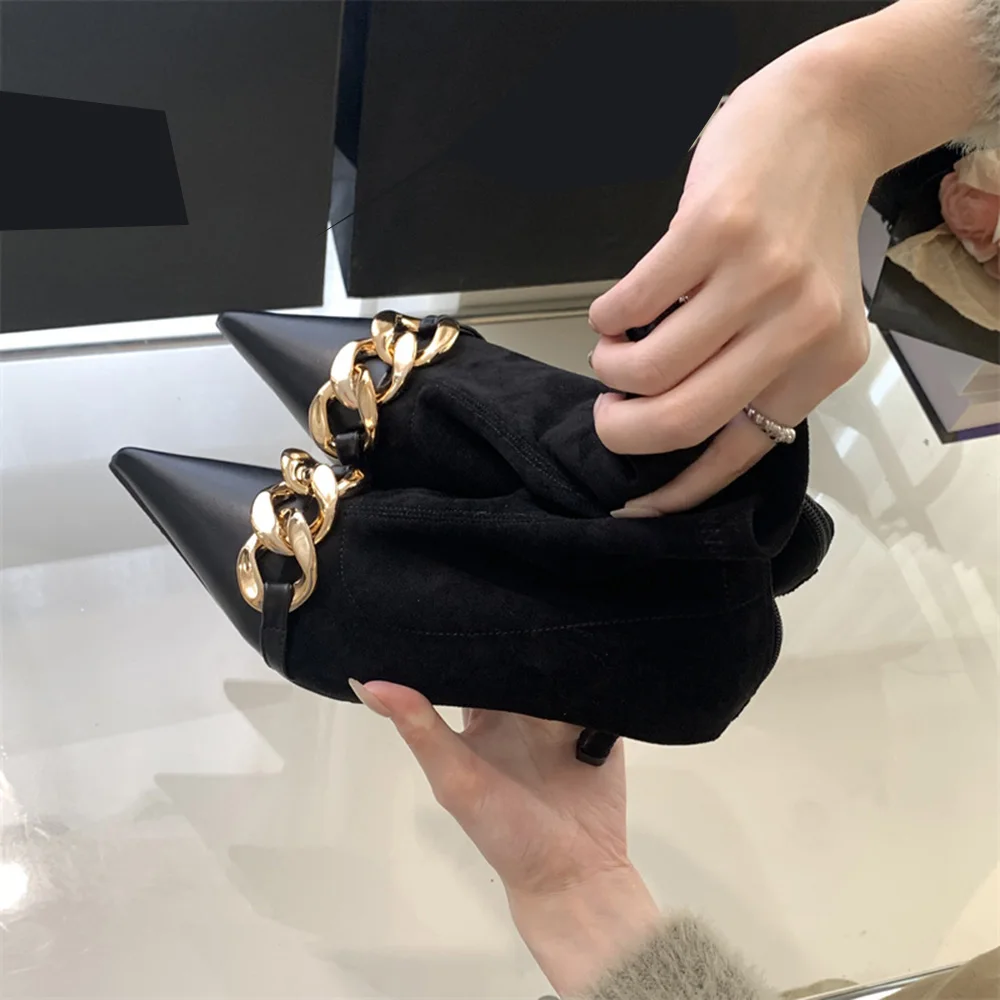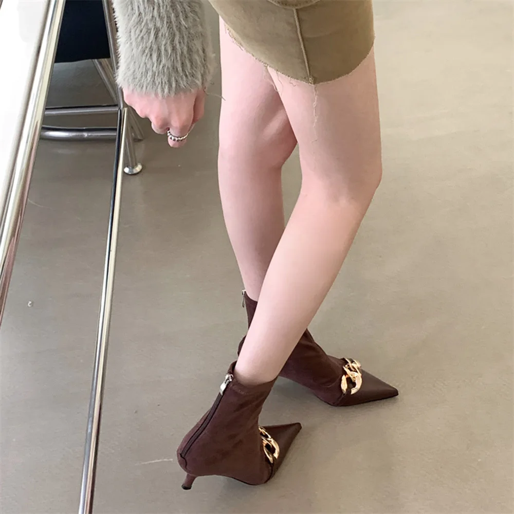 LBSFY - 2024 New Arrivals Women Ankle Boots Chelsea Botas Thin Mid Heels Metal Chain Size 35-40 Autumn Winter Sock Botas Size 35-40