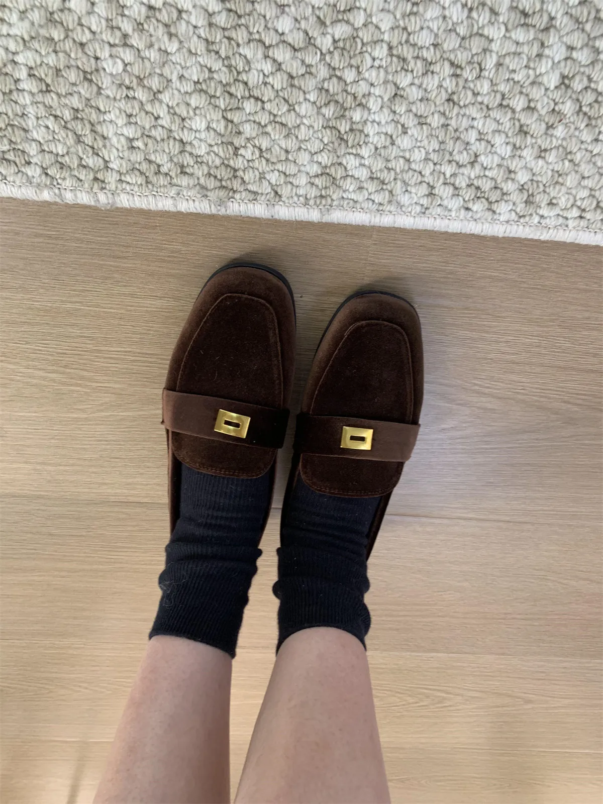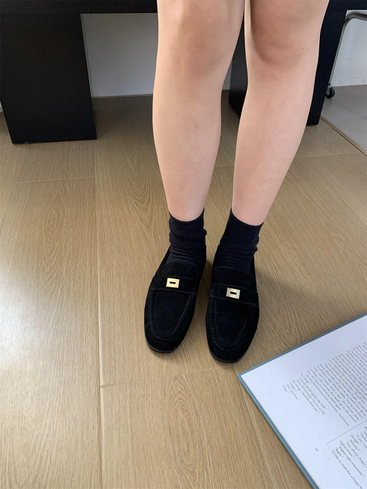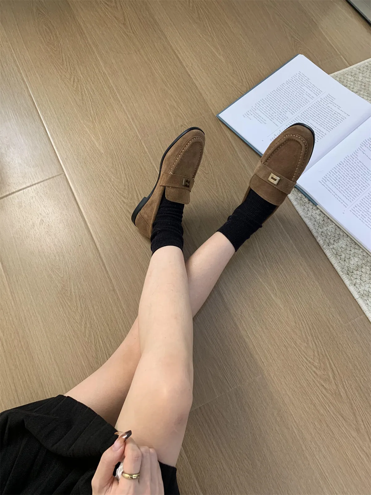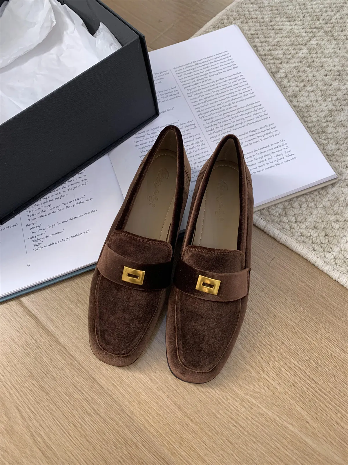 LBSFY - 2024 New Brand Women Flat Shoes Fashion Round Toe Flat Heel Slip On Laofer Shoes Casual Outdoor Gold Buckle Ballerinas