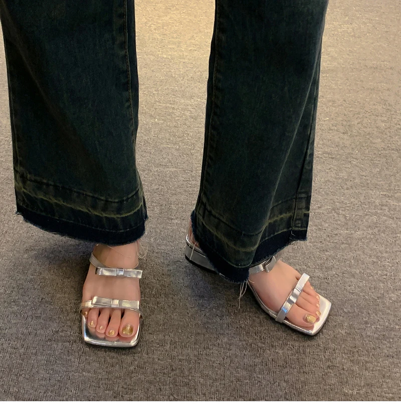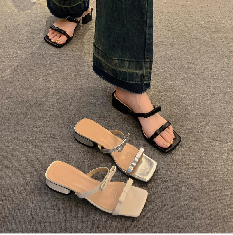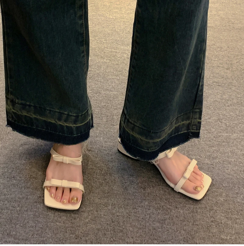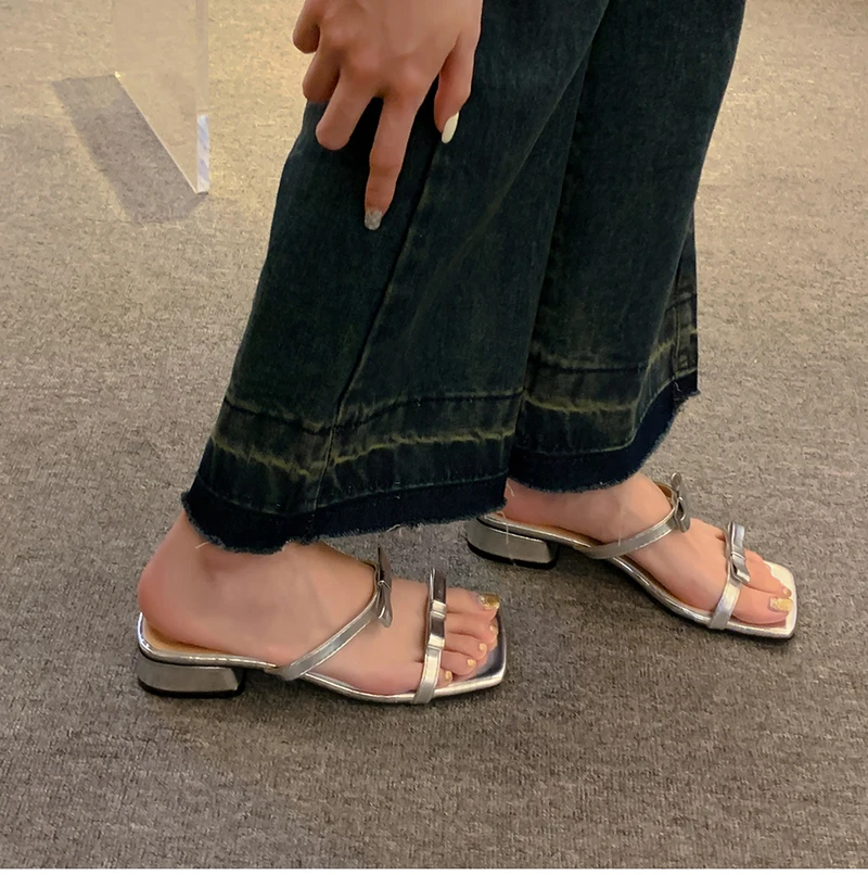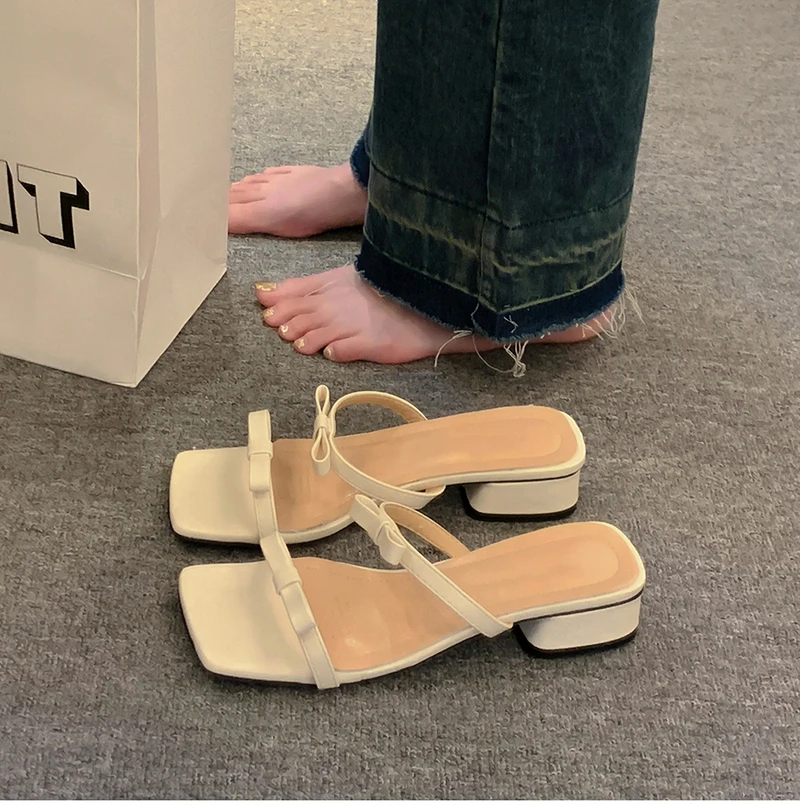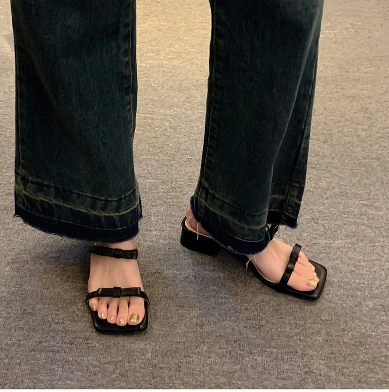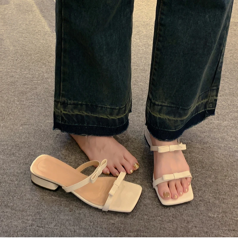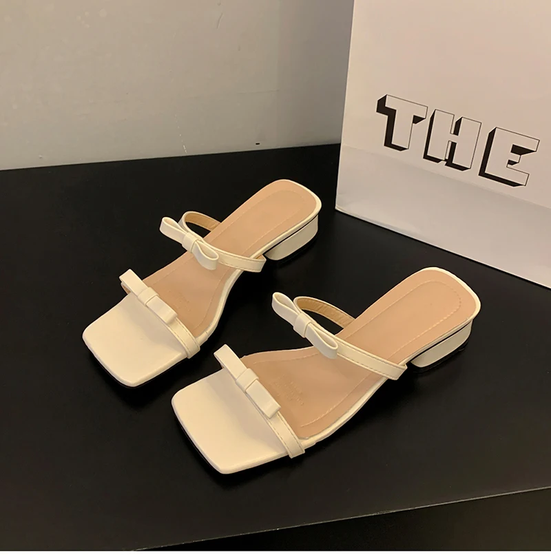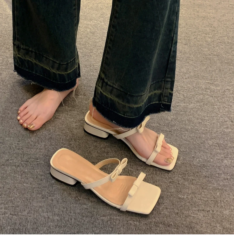 LBSFY - 2024 New Open Toe Women Slippers Fashion Butterfly-knot Slides Ladies Outdoor Low Heel Sandal Summer Women's Shoes