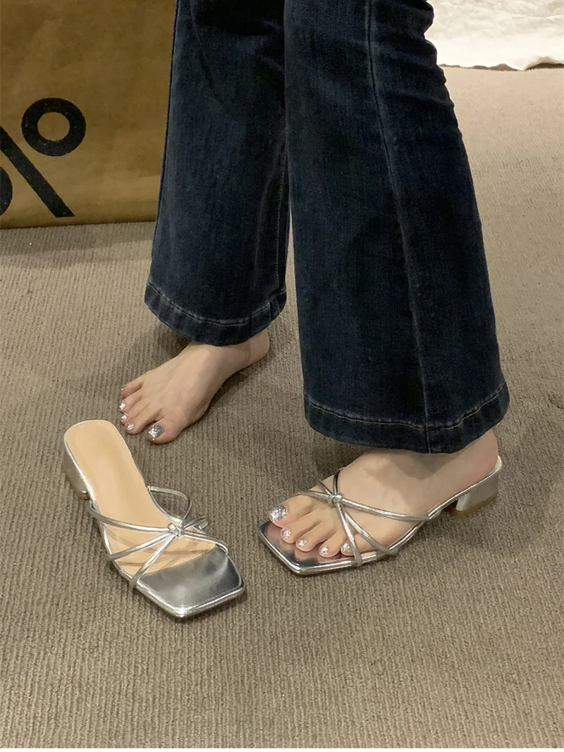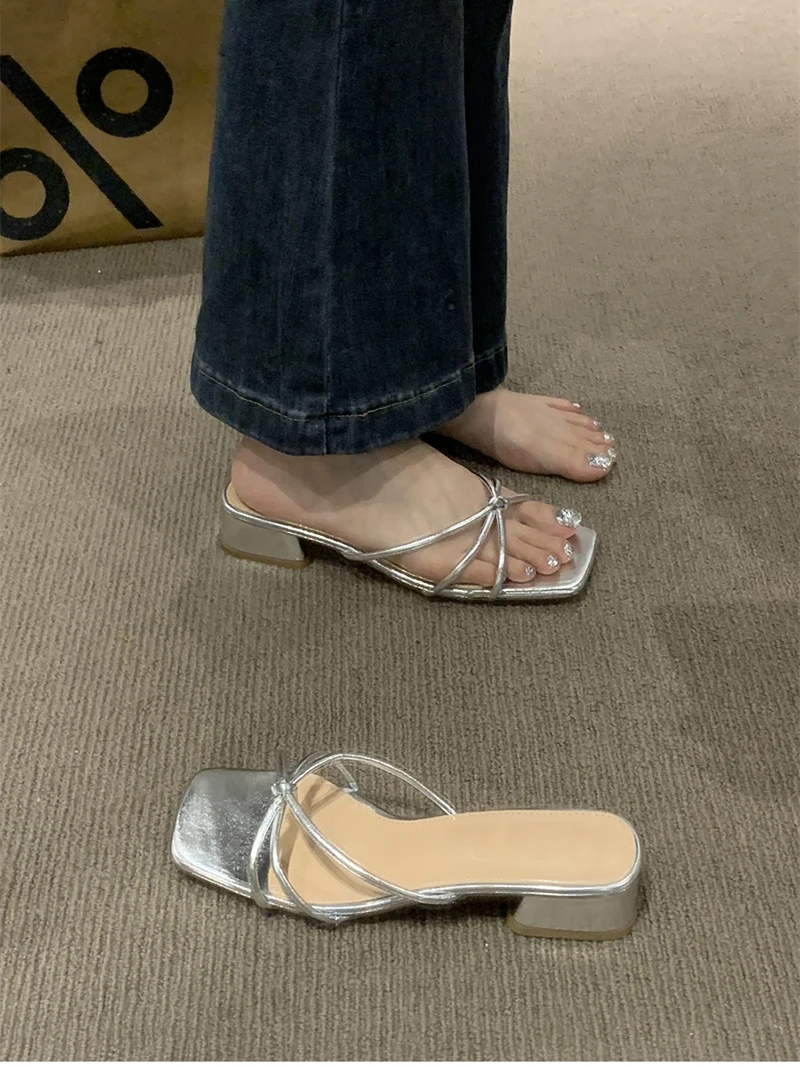 LBSFY - 2024 New Open Toe Women Slippers Fashion Narrow Band Slides Ladies Outdoor Low Heel Sandal Summer Women's Shoes