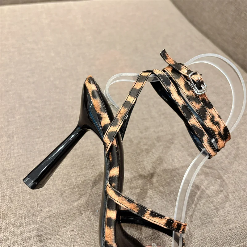 LBSFY - 2024 New Sexy Leopard Print Sandals Women Summer Pointed Open Toe Buckle Strap Gladiator High Heels Party Dress Shoes