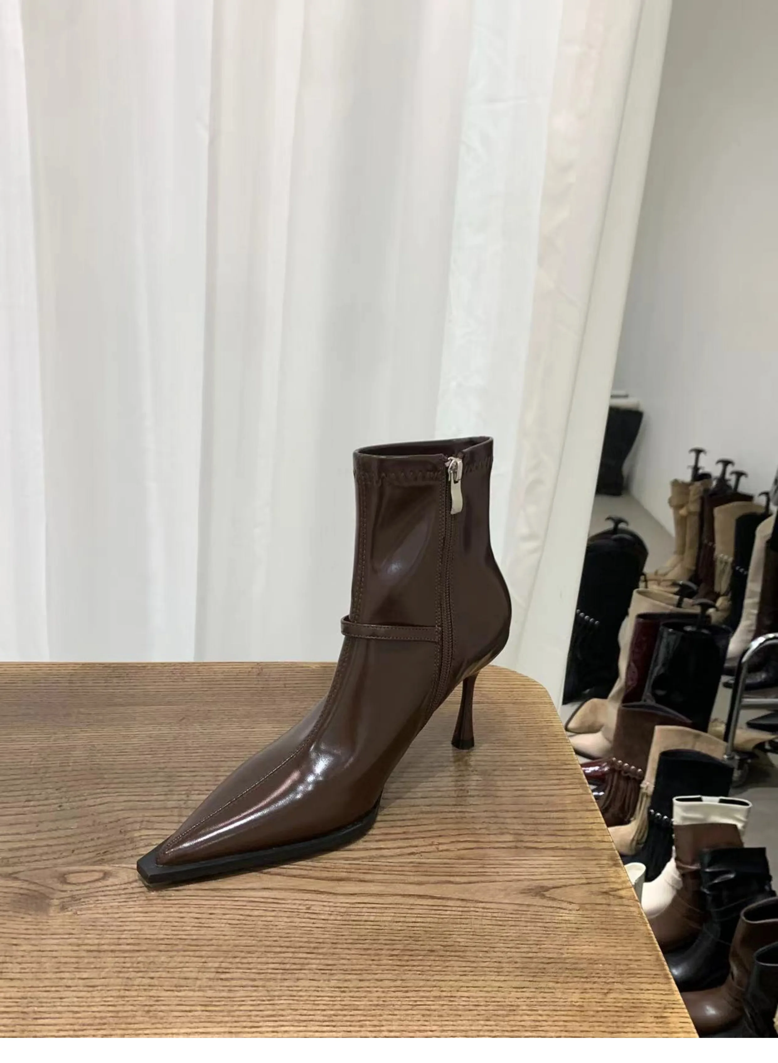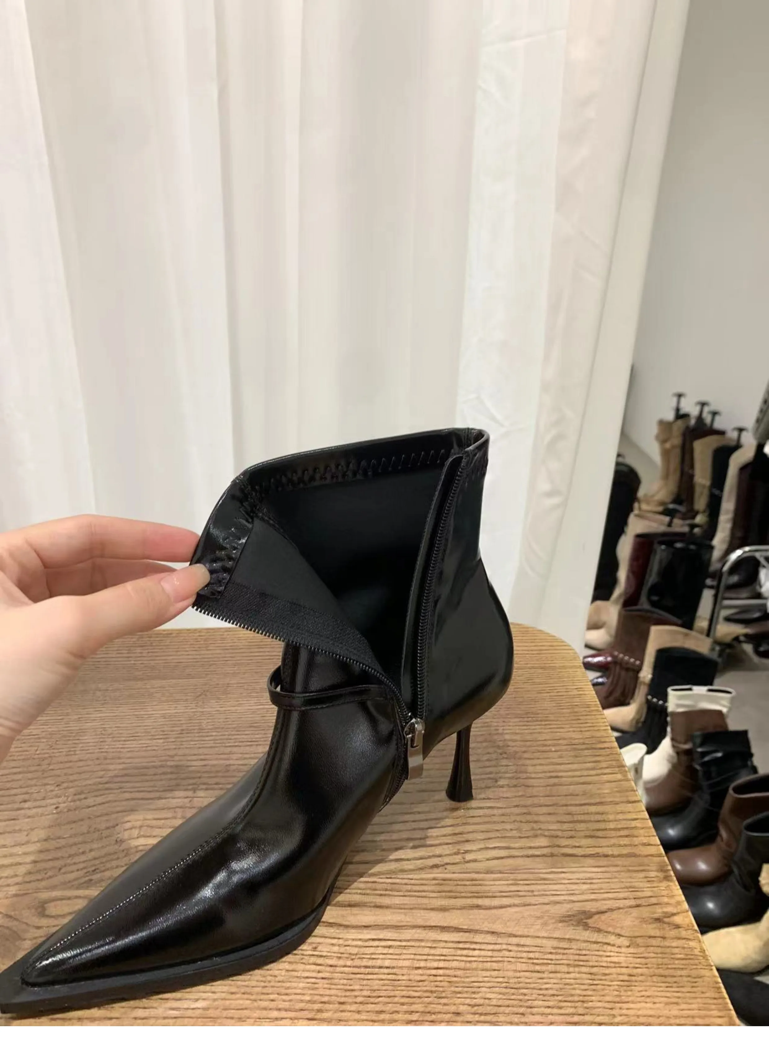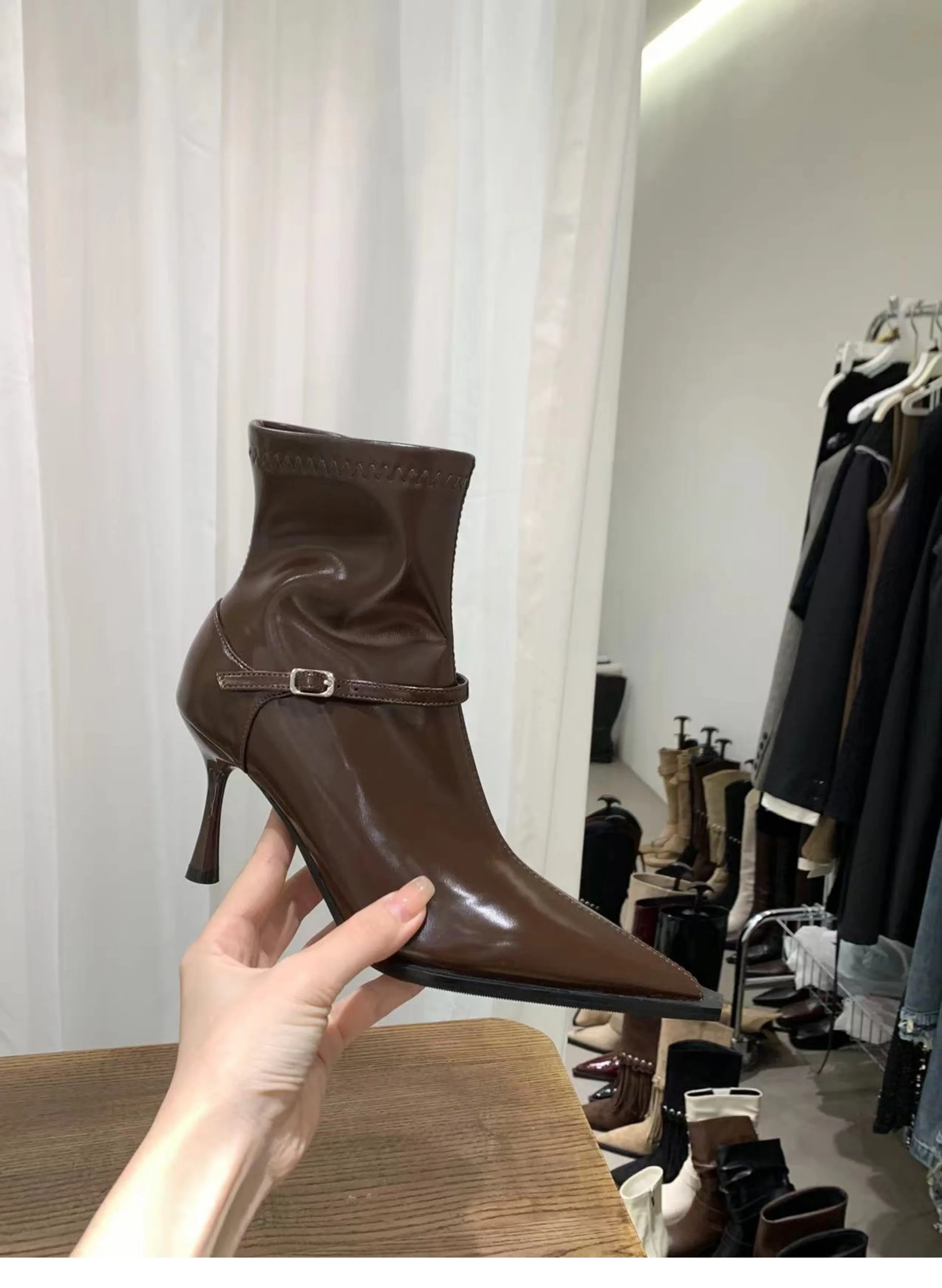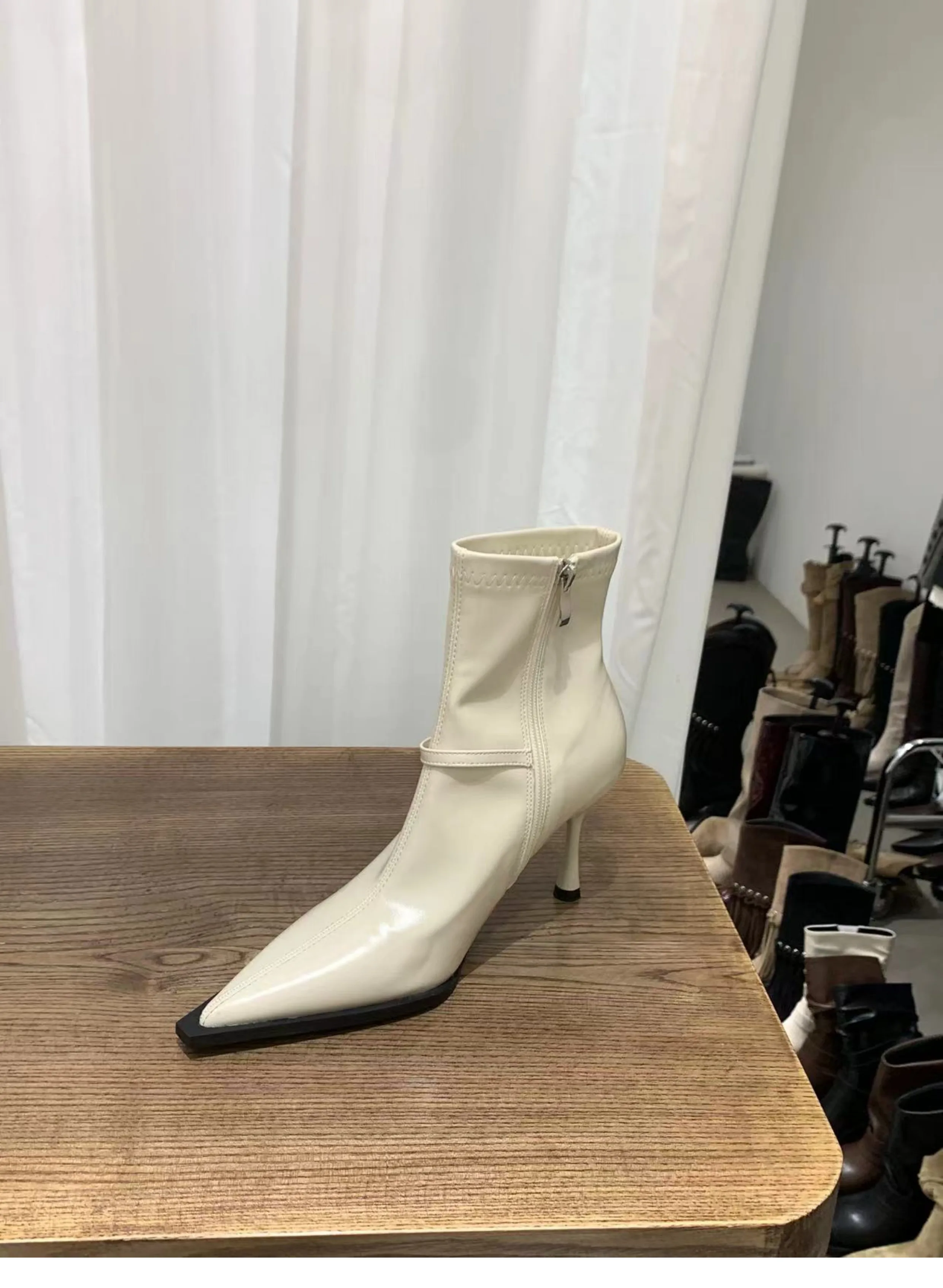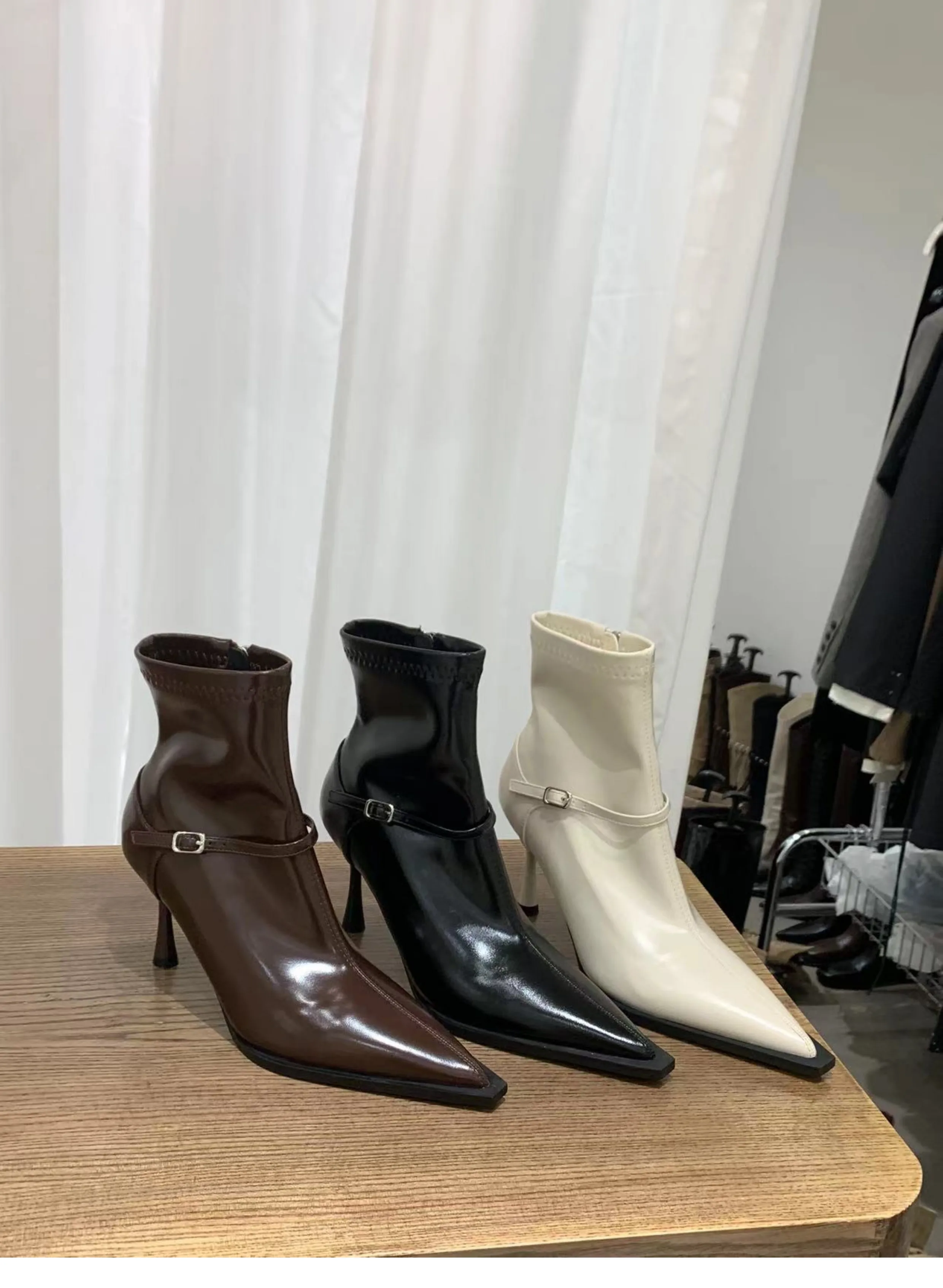 LBSFY - 2024 New Sexy Women Boots Pointed Toe Women Shoes Buckle Strap Patent Leather Fashion Stretch Ankle Boots Zapatos De Mu