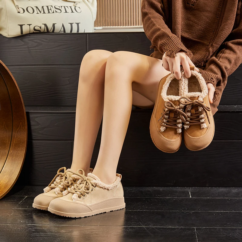 LBSFY - 2024 new winter female shoes flat-soled velvet sneakers for women large size snow boots women's fur shoes