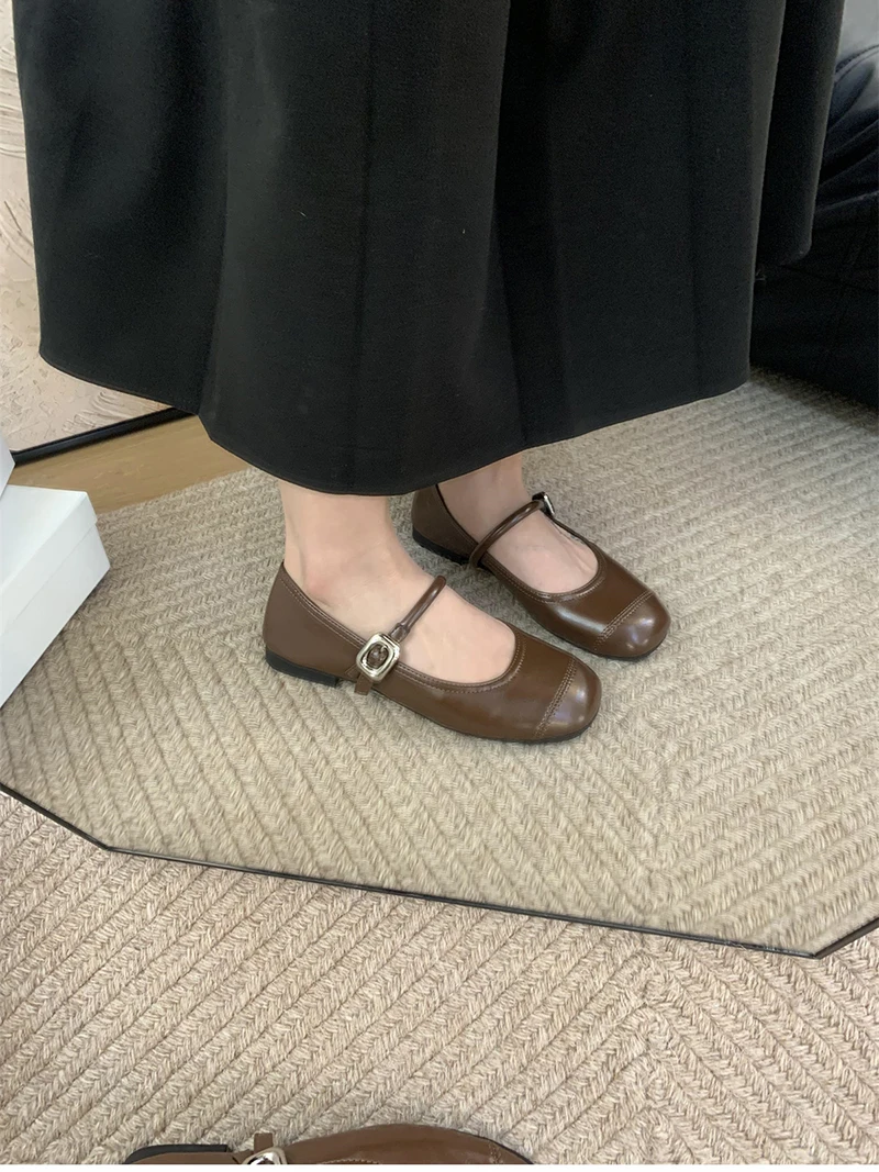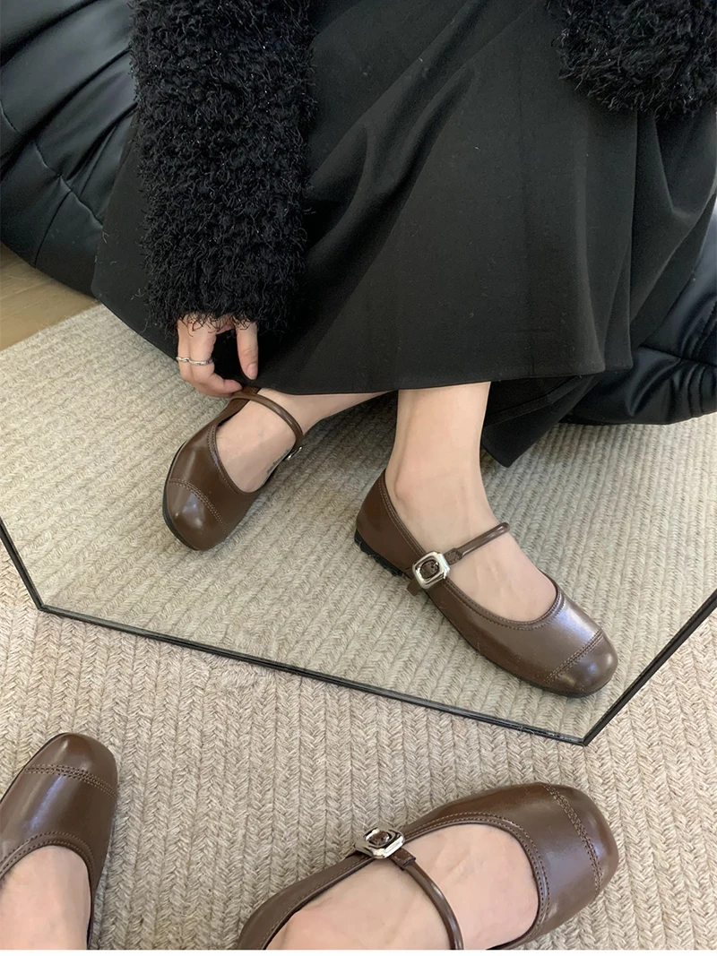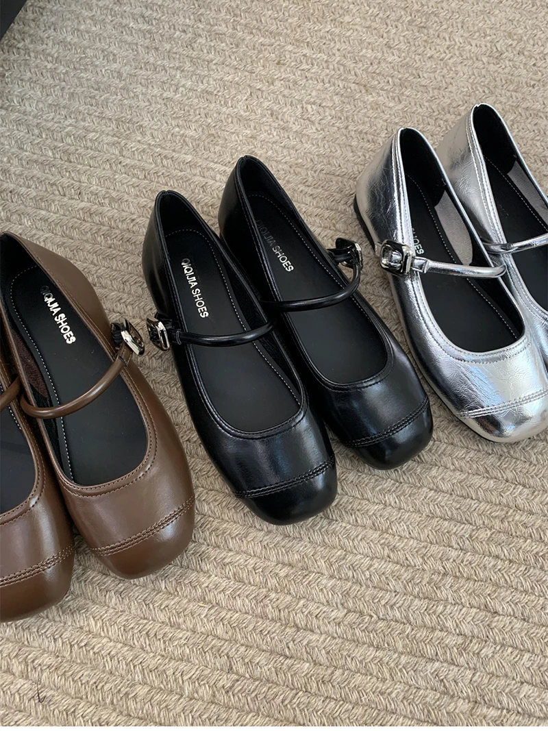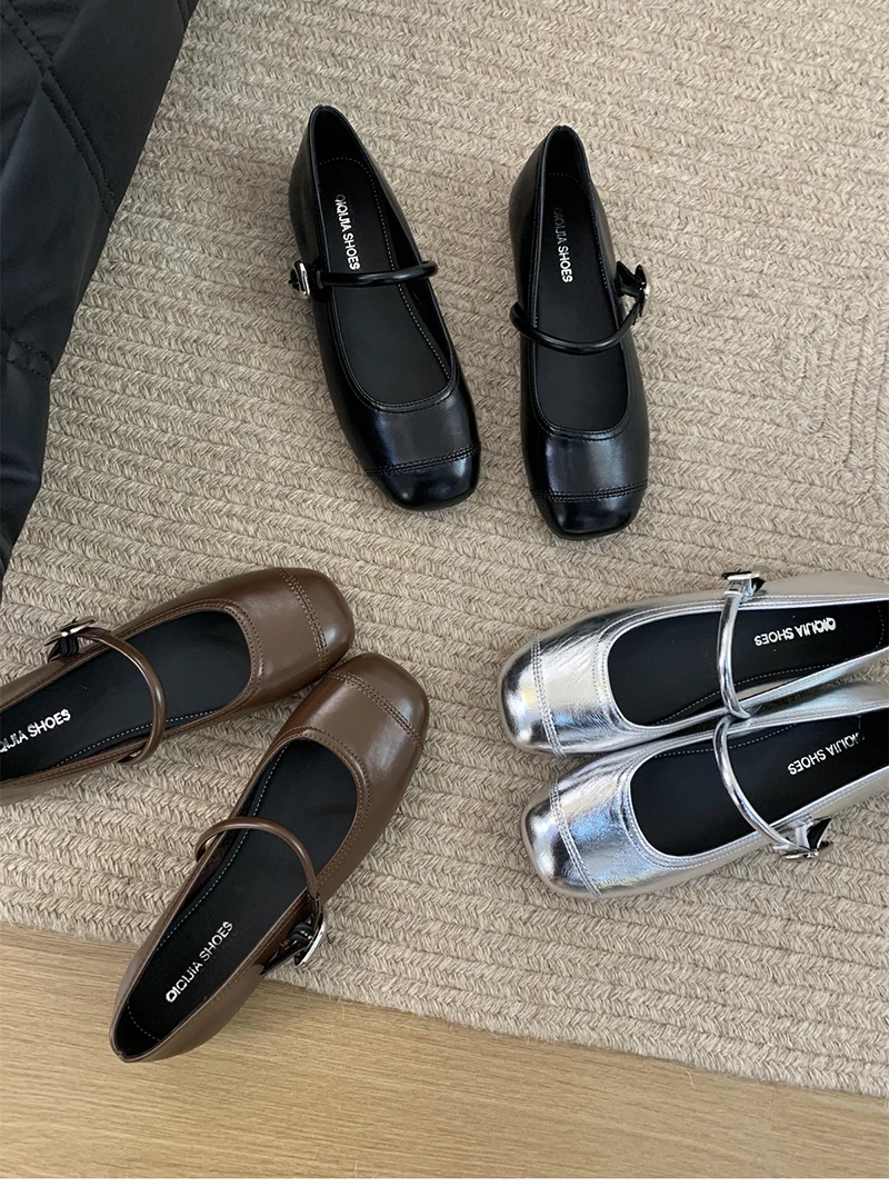 LBSFY - 2024 Silvery Women Ballte Flats Shoes Fashion Elegant Square Toe Buckle Shoes Ladies Outdoor Dress Flats Ballerina Shoes
