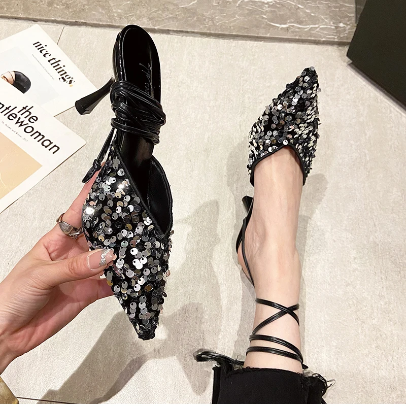 LBSFY - 2024 Summer Ankle Cross Strap Women Sandals Fashion Elegant High Heel Shoes Outdoor Party Dress Bling Women's Sandalias