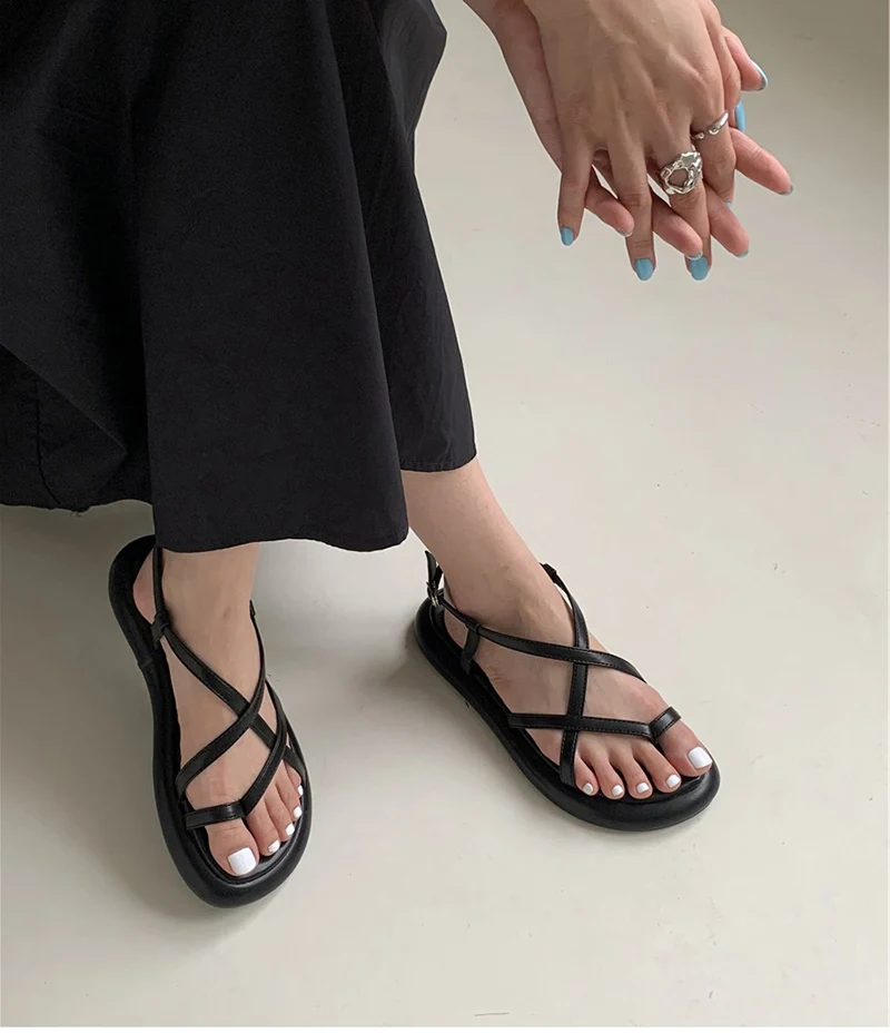 LBSFY - 2024 Summer Gladiator Women Sandals Fashion Clip Toe Narrow Band Shoes Ladies Casual Outdoor Soft Sole Flats Sandalias