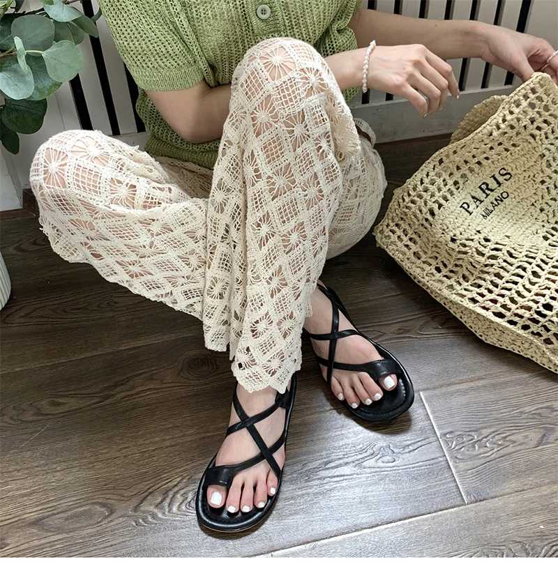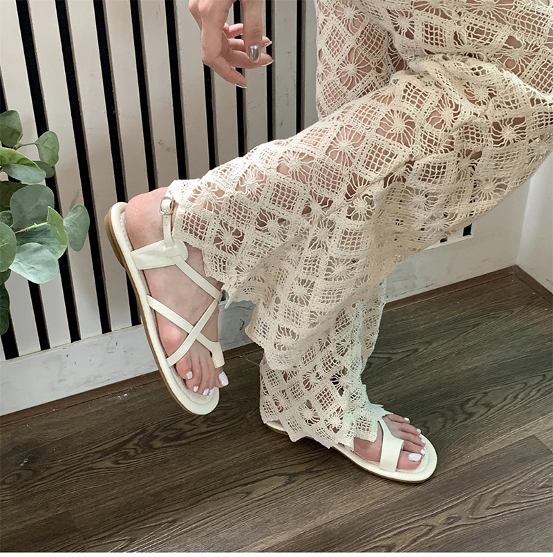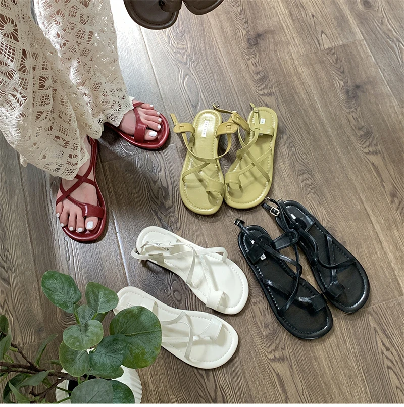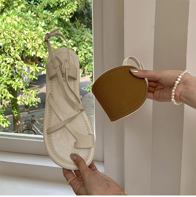 LBSFY - 2024 Summer Gladiator Women Sandals Fashion Elegant Narrow Band Shoes Ladies Outdoor Street Style Flats Sandalias