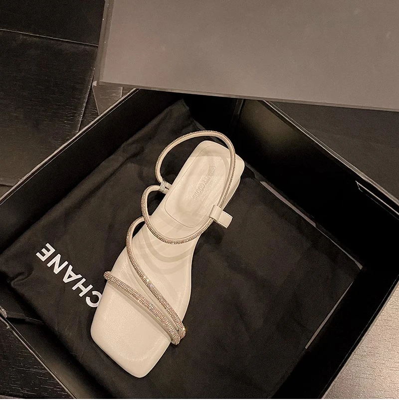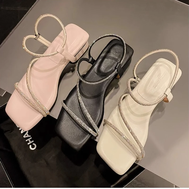 LBSFY - 2024 Summer Open Toe Women Sandals Fashion Elegant Crystal Narrow Band Shoes Ladies Outdoor Dress Thick Heel Sandalias