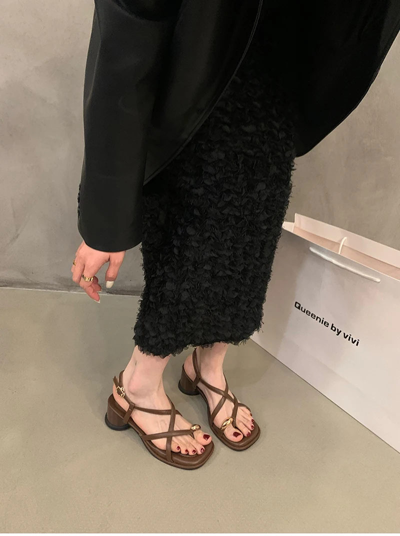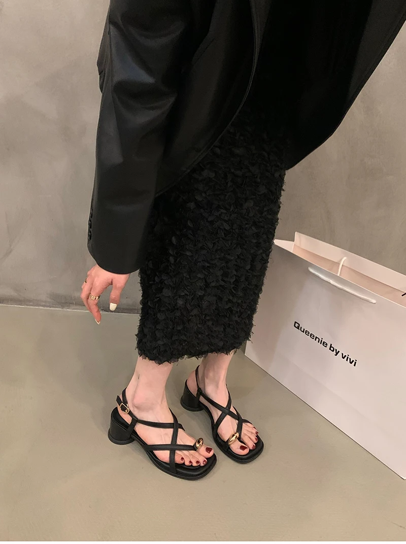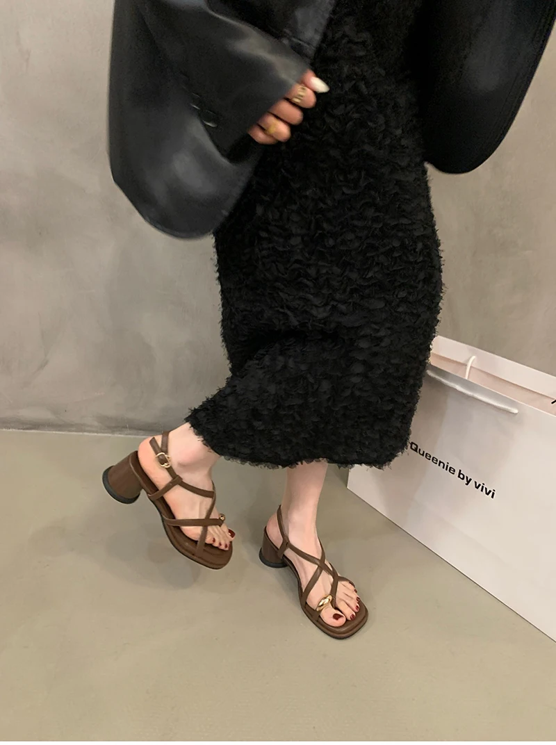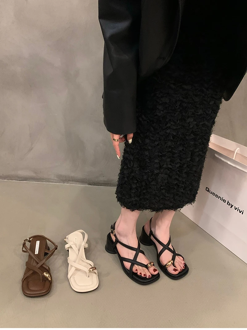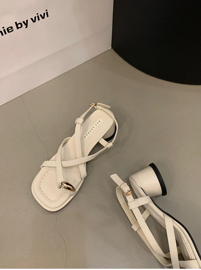 LBSFY - 2024 Summers Gladiator Women's Sandals Fashion Narrow Band High Heel Ladies Elegant Outdoor Clip Toe Sandalias