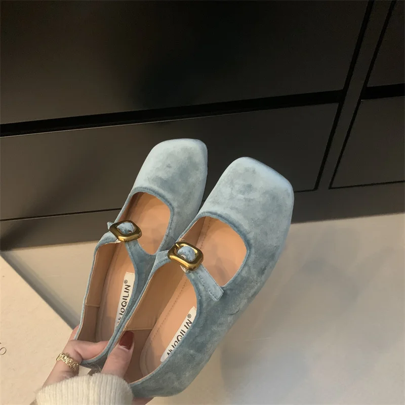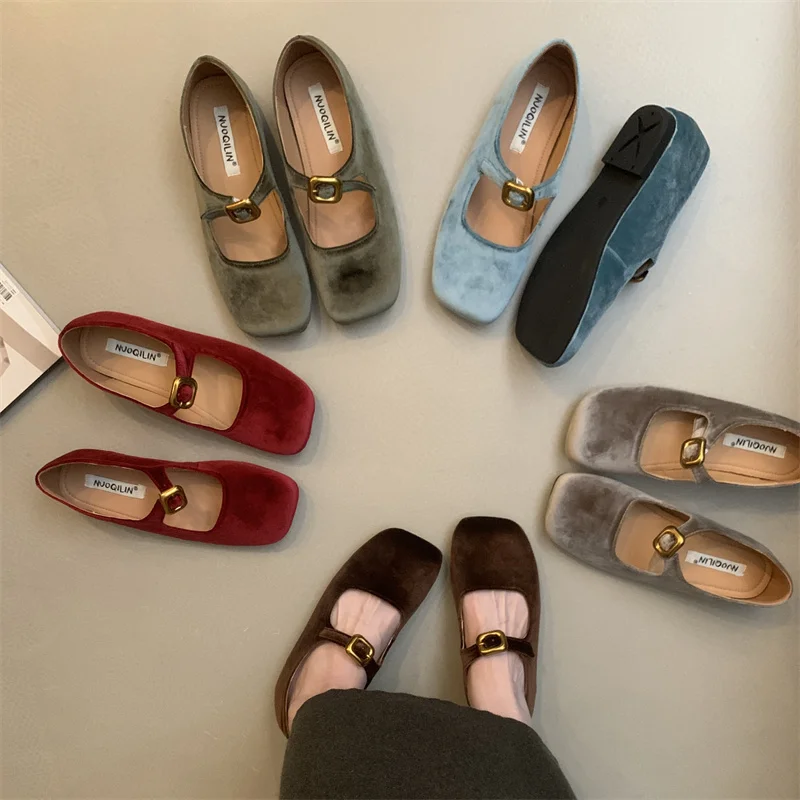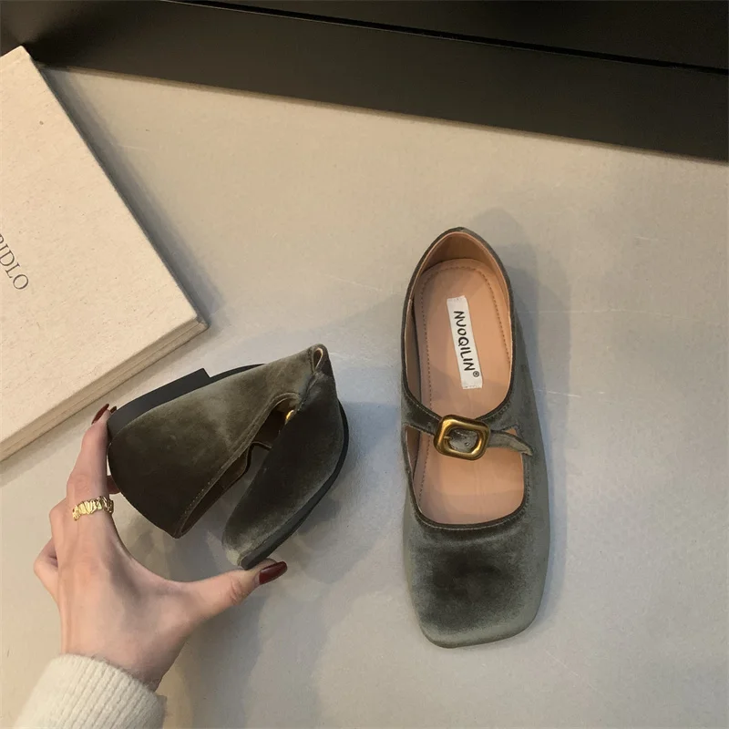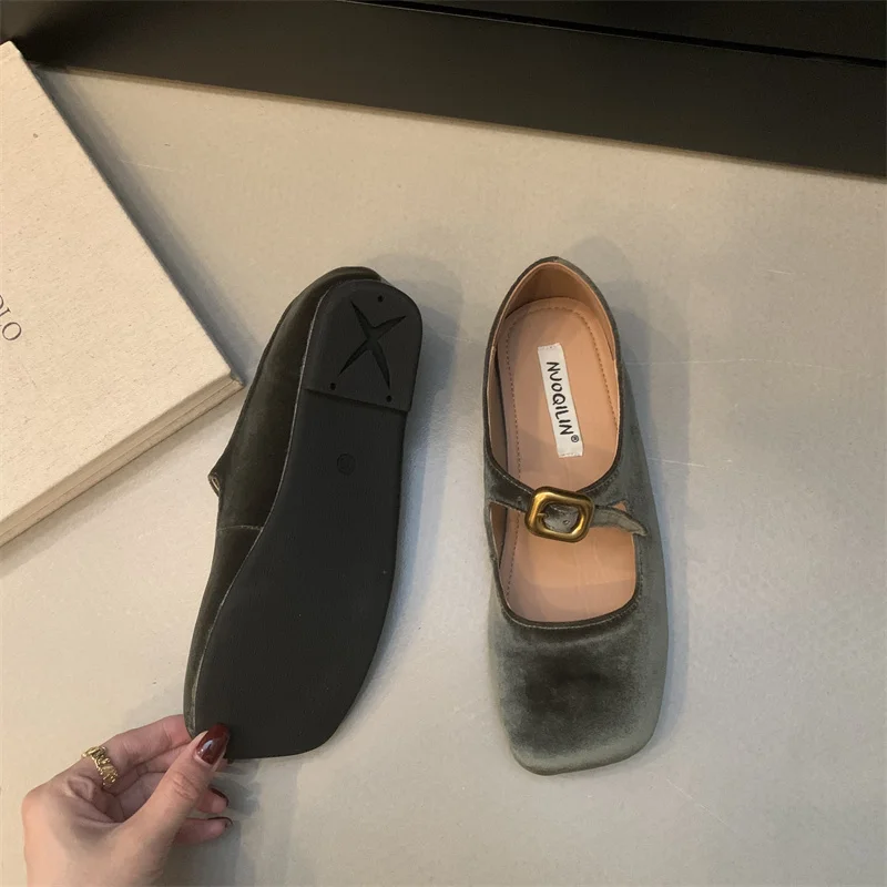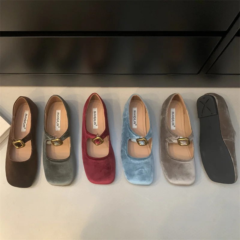 LBSFY - 2024 Winter New Women Flats Fashion Velvet Round Toe Ladies Casual Mary Jane Shoes Soft Sole Ballerinas Shoes