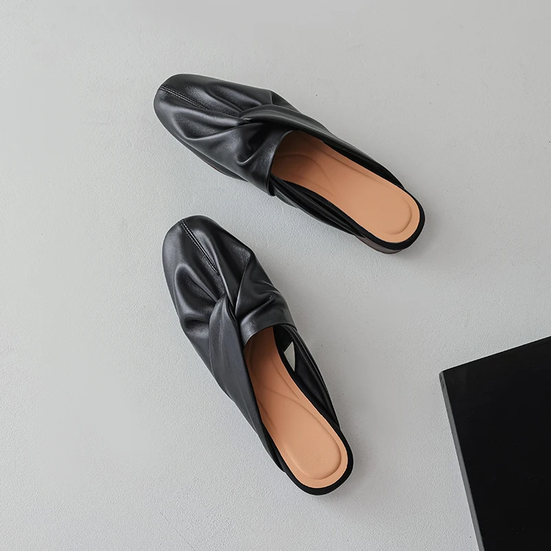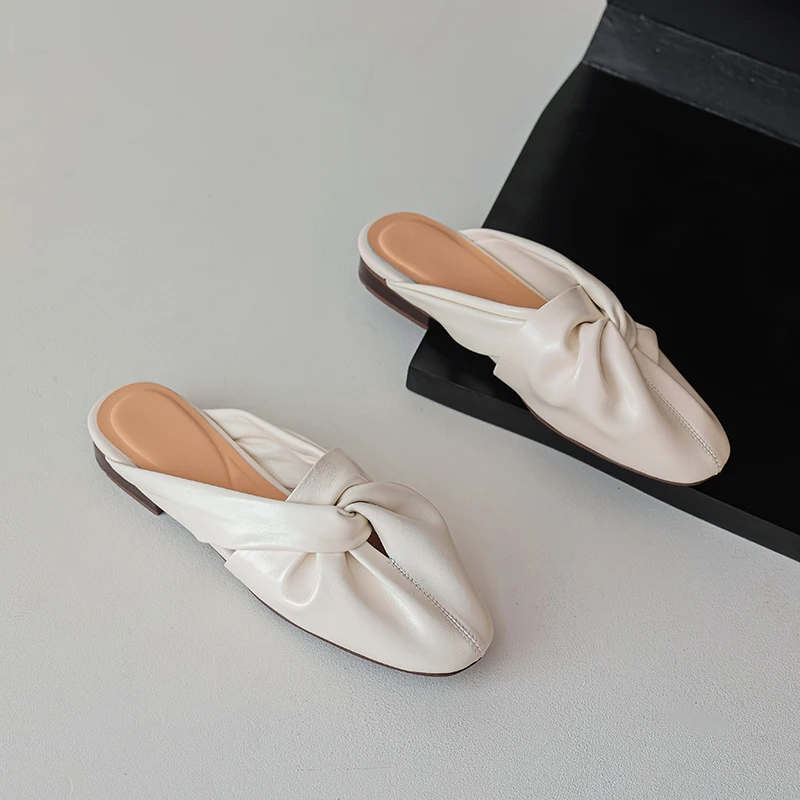 LBSFY - 2024 Women Mule Slippers Concise Style Simple Low Heel Shoes Cow Leather Square Toe Mules Spring Autumn Women Outdoor Slippers
