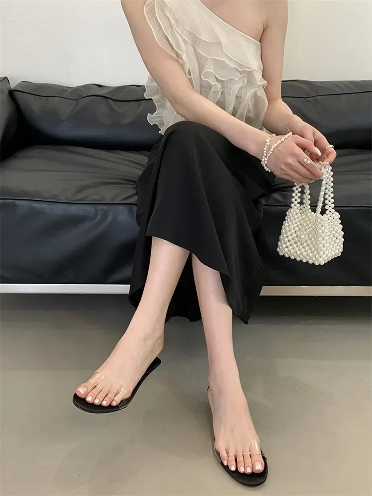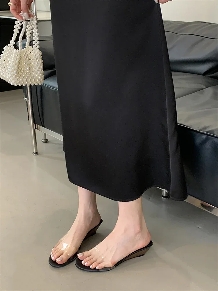 LBSFY -2025 New Summer PVC Transparent Wedges Open Toe Women Slippers Low Heels Banquet Dress Beach Female Shoes