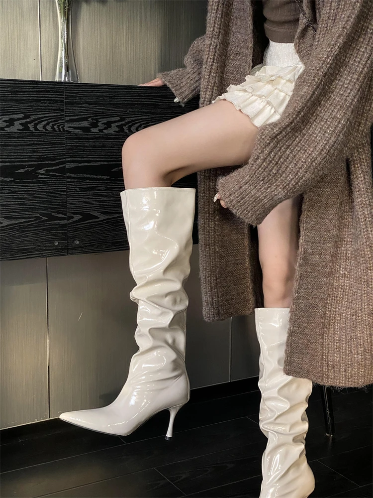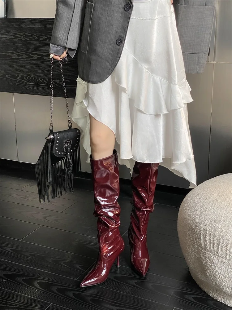 LBSFY - 2025 PU Autumn Rome Fashion Solid Women Shoes Buckle Pleated Pointed Toe Knee-High Boots Women Boots Thin Heels DRESS