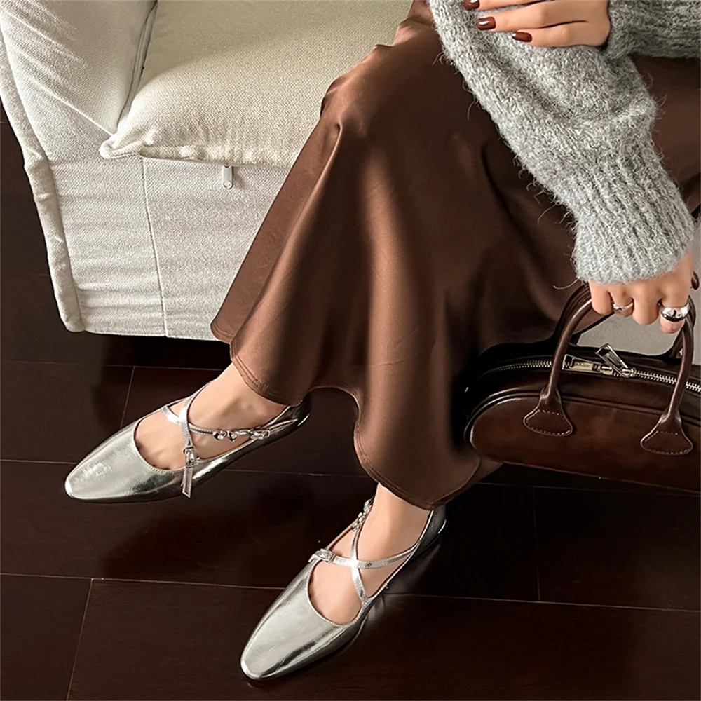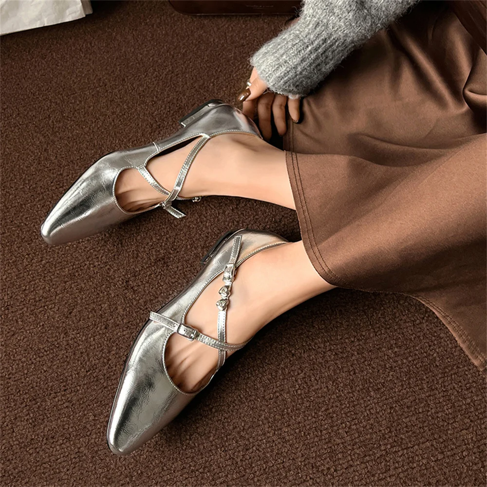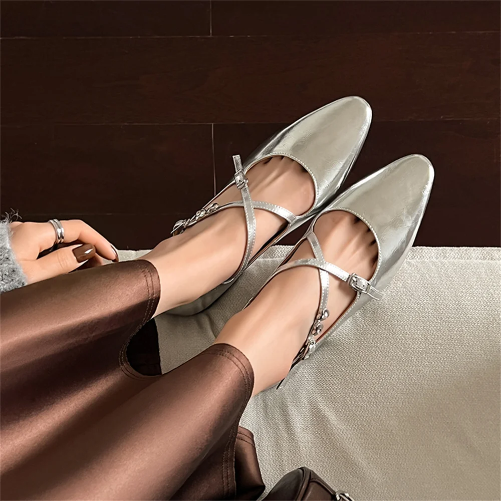 LBSFY - 2025 Spring Summer Elegant Genuine Leather Pumps Woman Low Heeled Elegant Casual Shoes Woman Party Shoes Silver