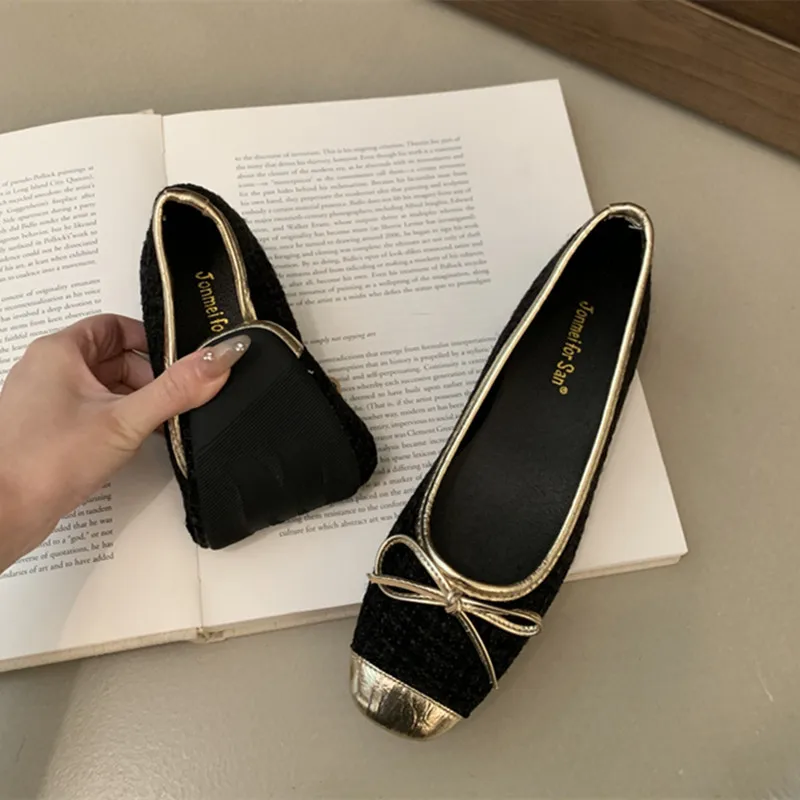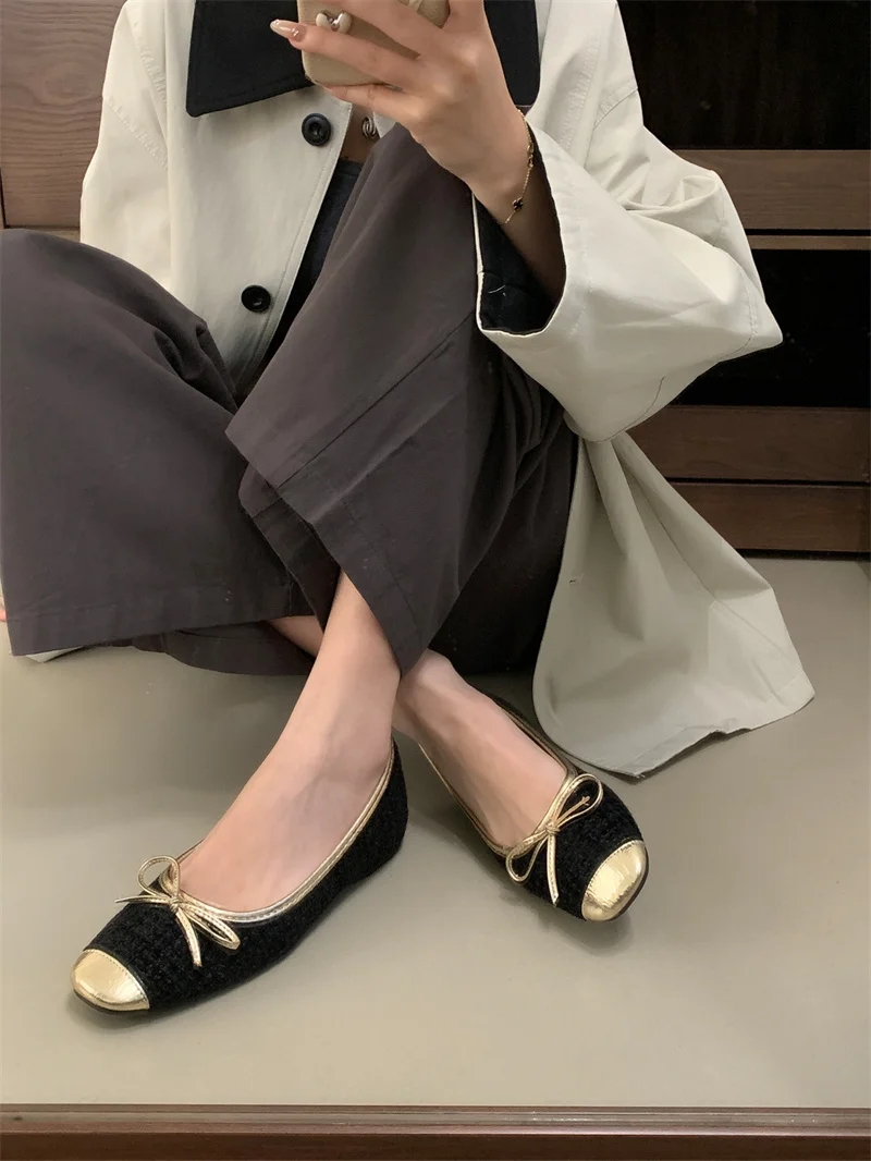 LBSFY - 2025 Spring Women Flats Fashion Round Toe Bow-knot Slip On Ballerinas Shoes Soft Flat Ladies Casual Dress Ballet Shoes