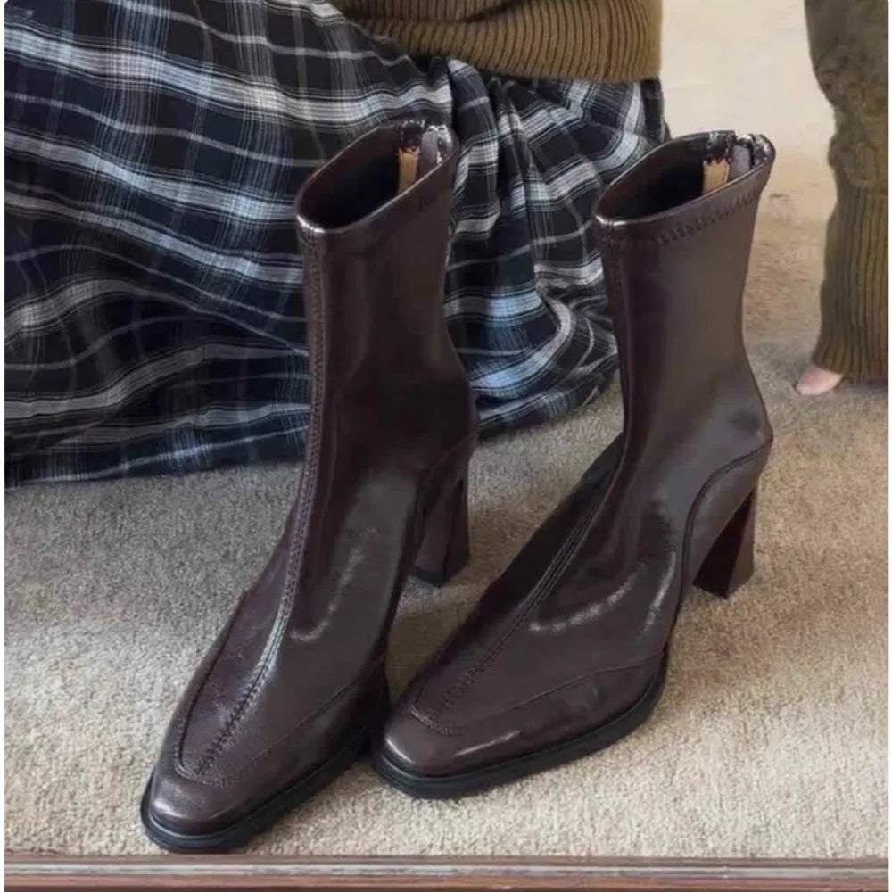 LBSFY -2025 Vintage High Heel Women Ankle Boots Fashion Square Toe Short Booties Autumn Winter Ladies Shoes Botas Mujer
