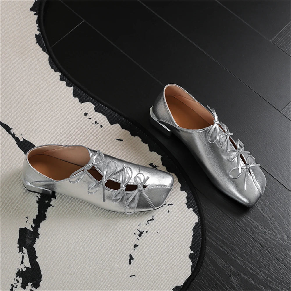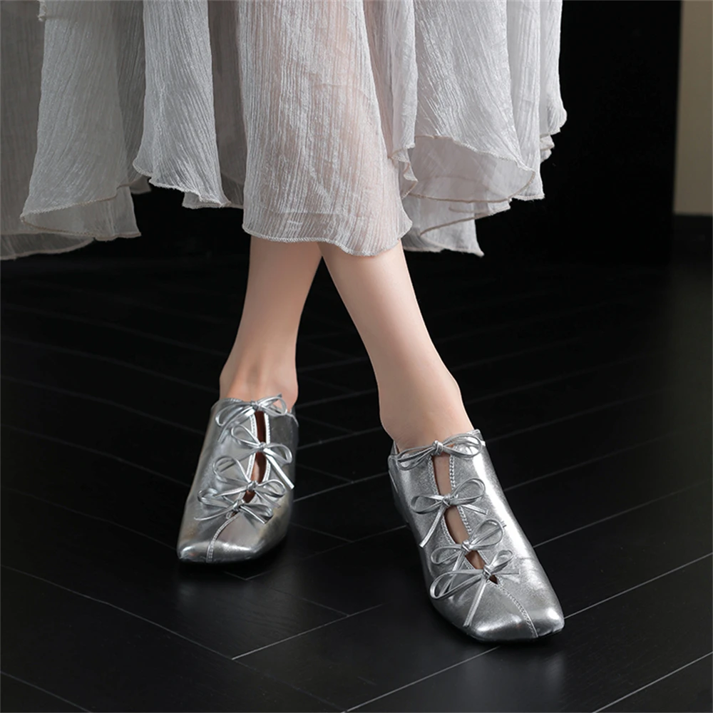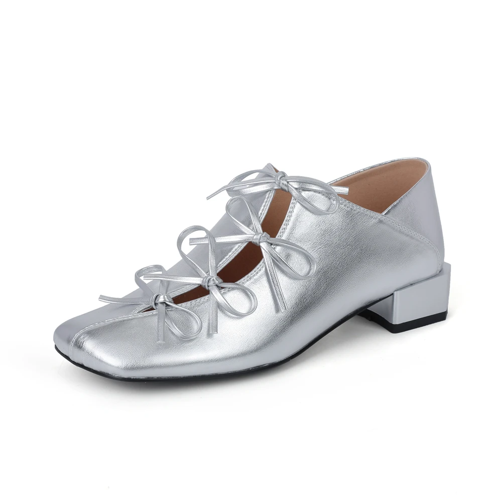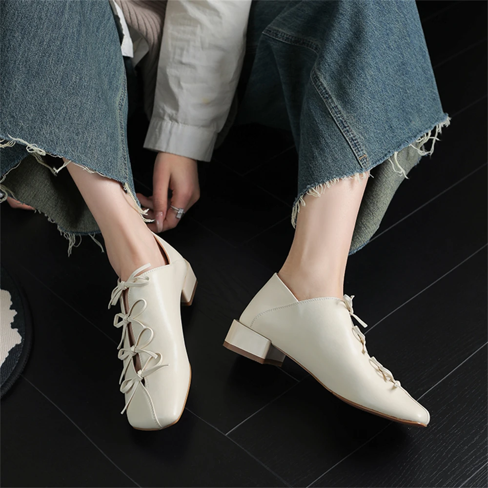 LBSFY  -  2025 Women Genuine Leather Square Toe Thick Heel Mature Sweet Dating Bowtie Party Wedding Shoes Woman Prom Pumps