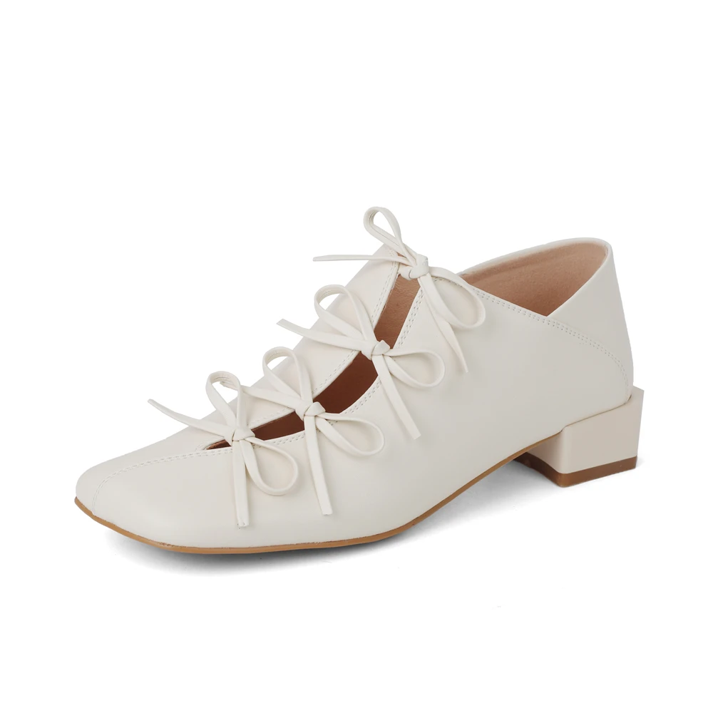 LBSFY  -  2025 Women Genuine Leather Square Toe Thick Heel Mature Sweet Dating Bowtie Party Wedding Shoes Woman Prom Pumps