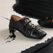 LBSFY - 2025 Women Genuine Leather Square Toe Thick Heel Mature Sweet Dating Bowtie Party Wedding Shoes Woman Prom Pumps