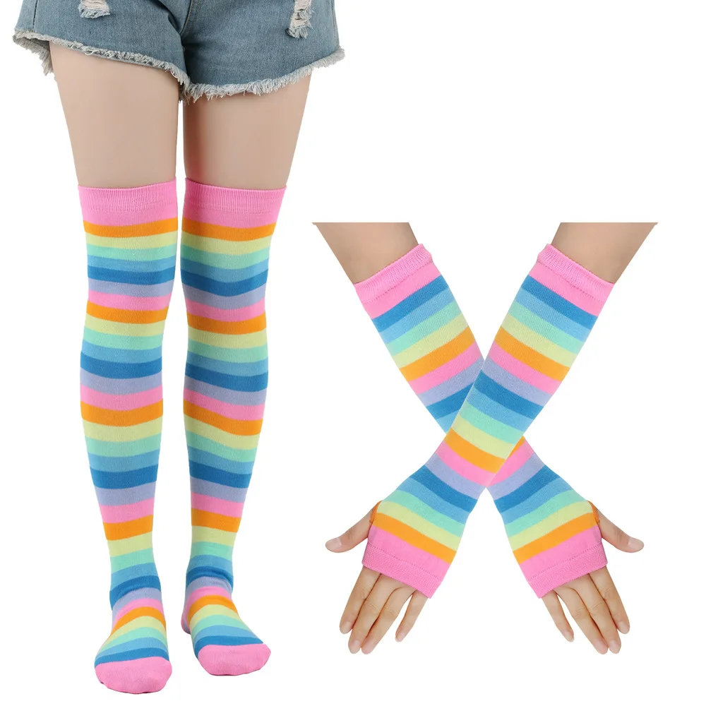Lbsfy Gothic Anime Soft Gloves Autumn Winter JK Girls Mittens Oversleeve for Women Men Cool Tattered Style Cuff Fingerless Arm Warmers