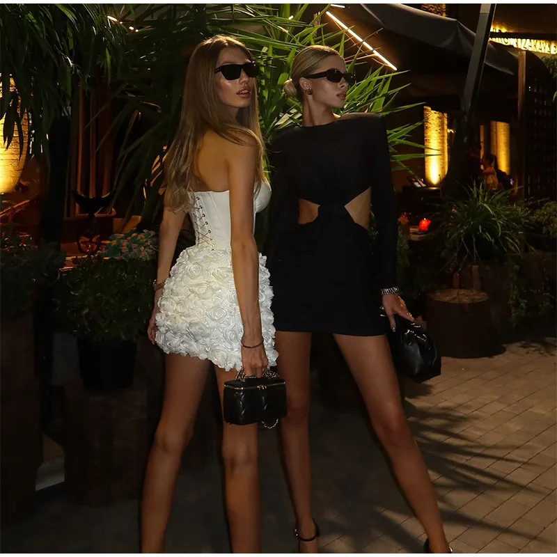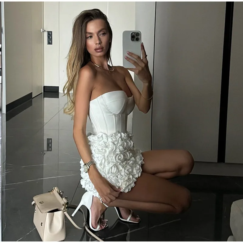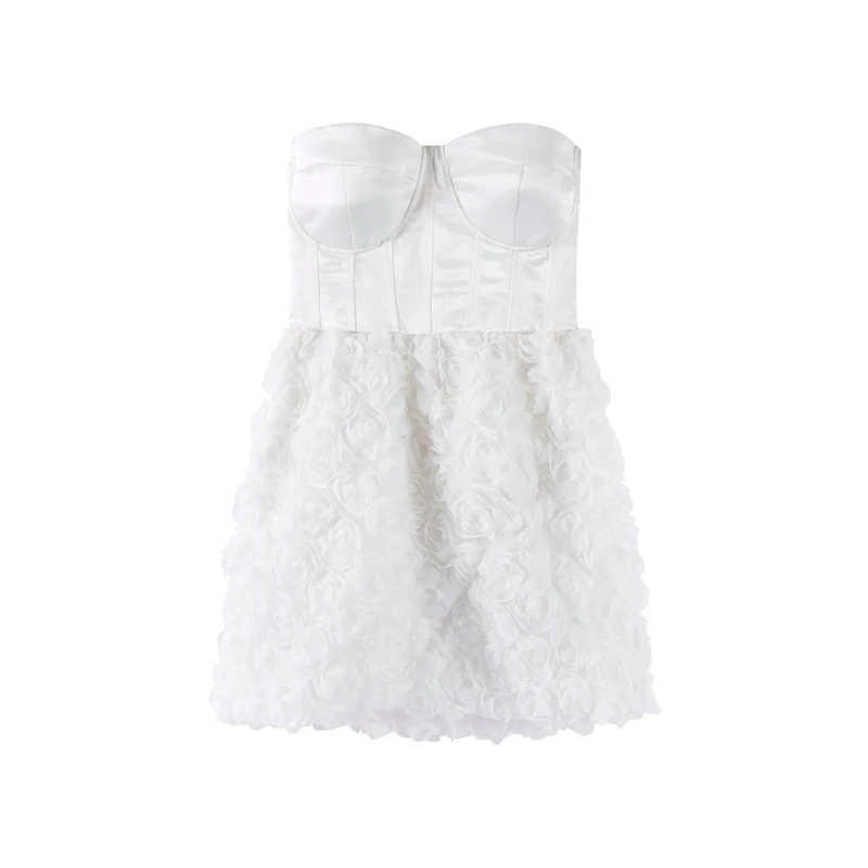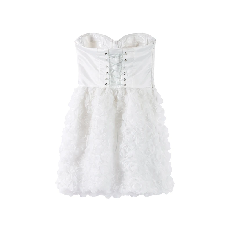 LBSFY -3D Flowers Short Wedding Dresses Women White Luxury Lace Up Back Mini Bride Dress Customized Evening Party Gowns Vestidos Lady