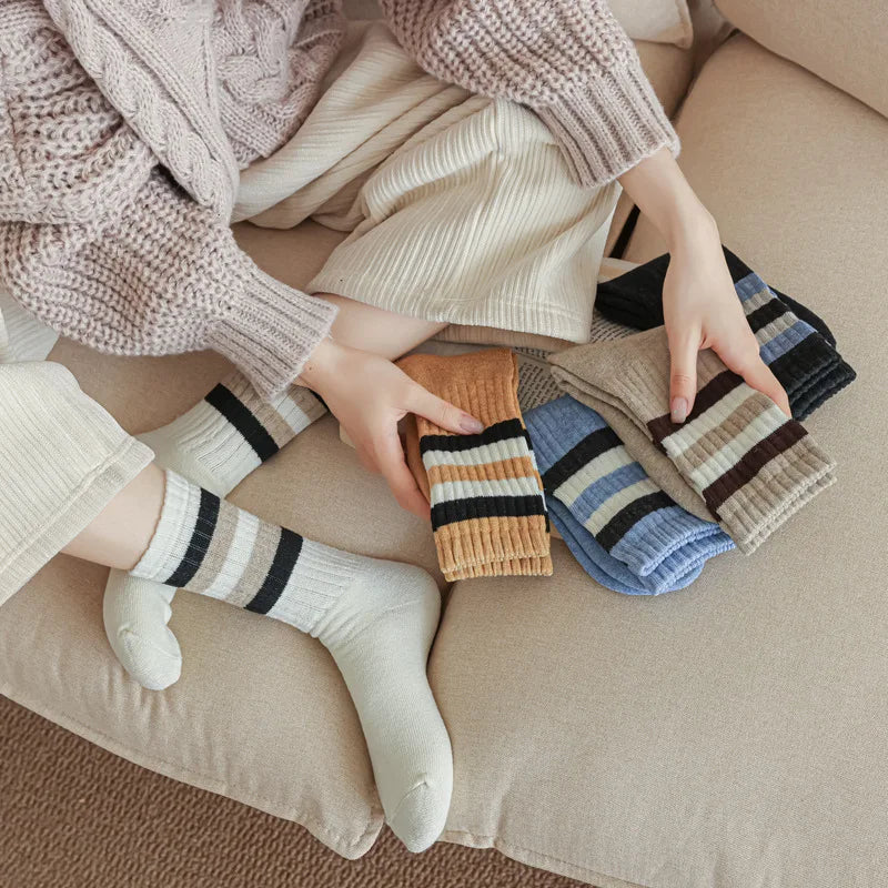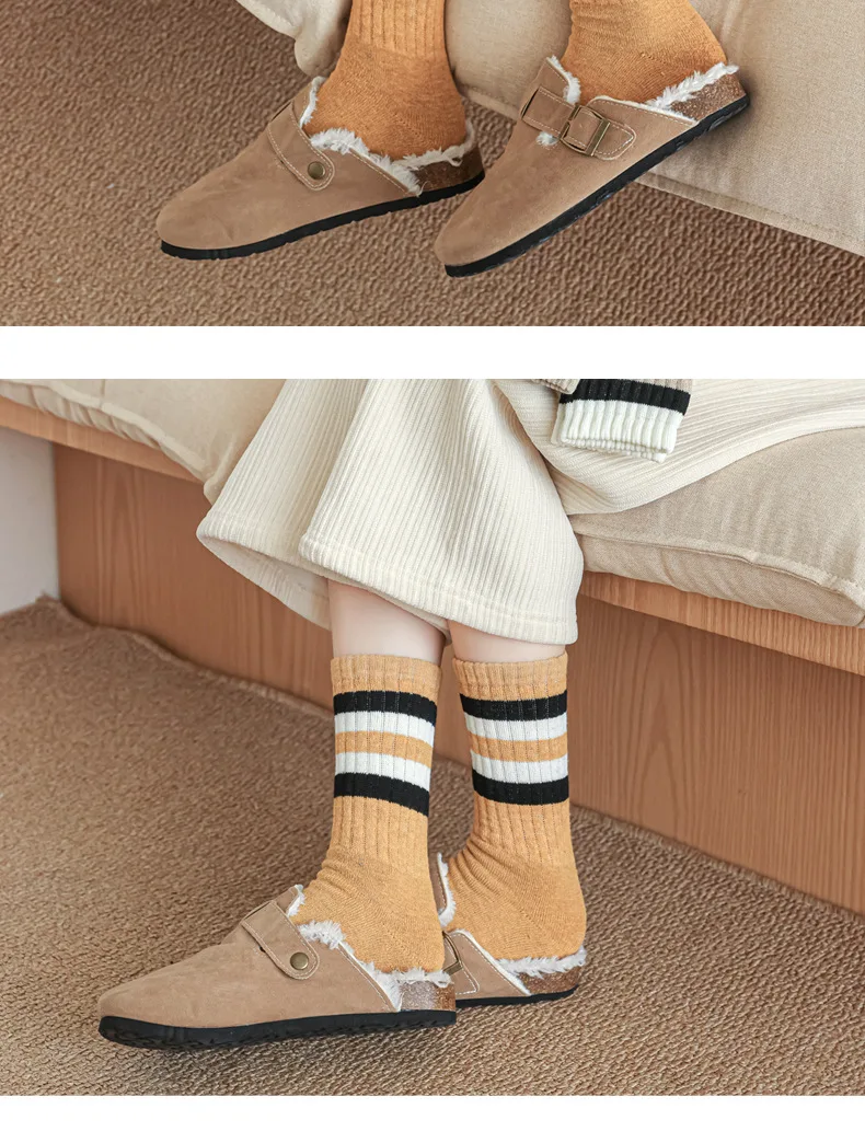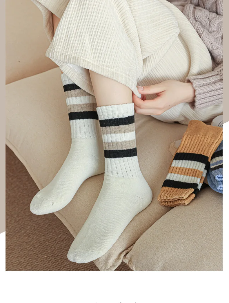 Lbsfy 5 Pairs Men Socks Autumn And Winter Padded Thickened Middle Socks Terry Bottom Warm Towel Cotton Socks Anti-Odor Sweat Sports So
