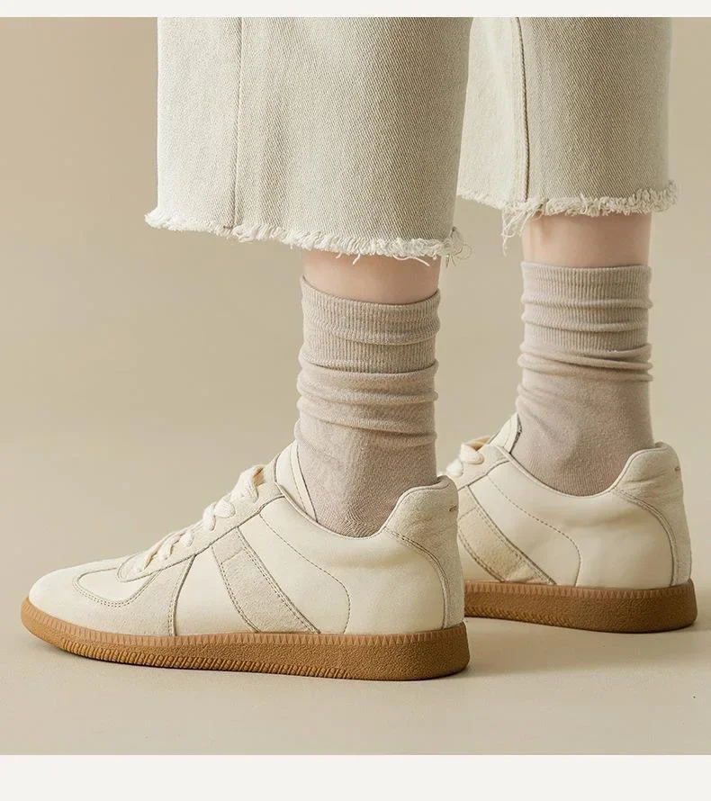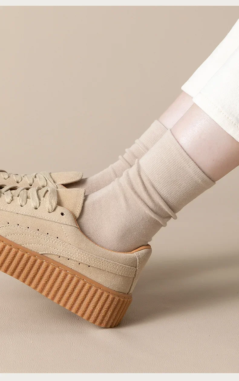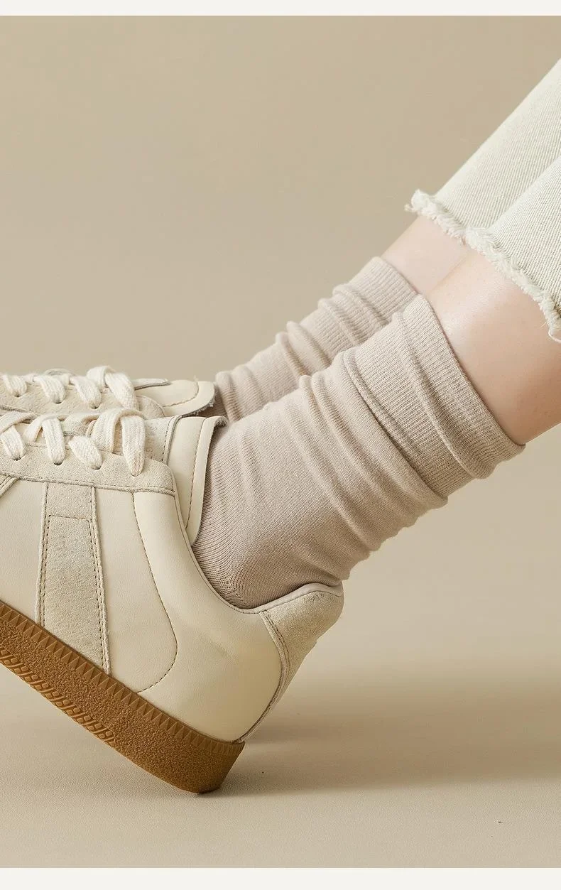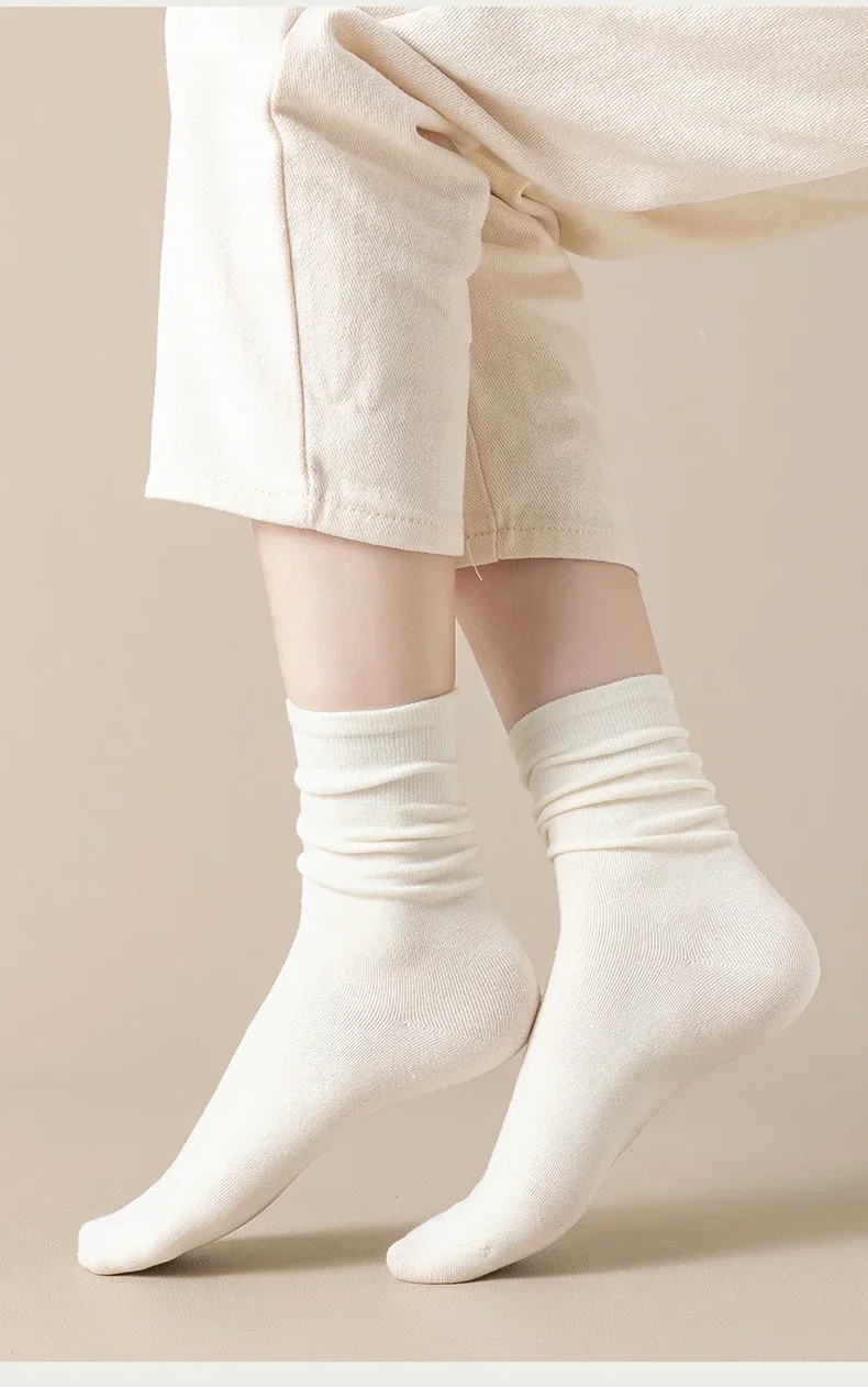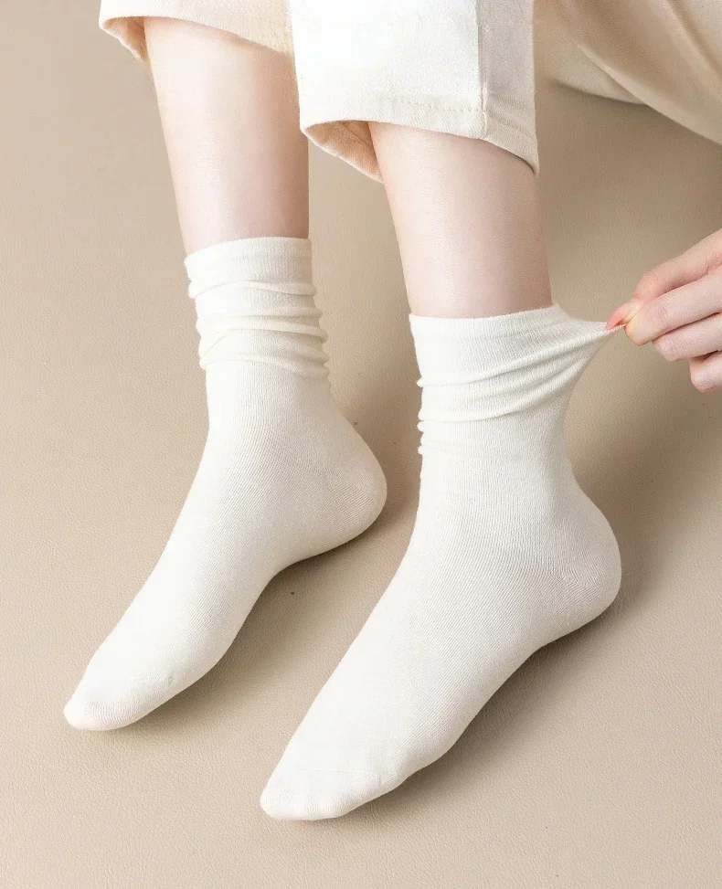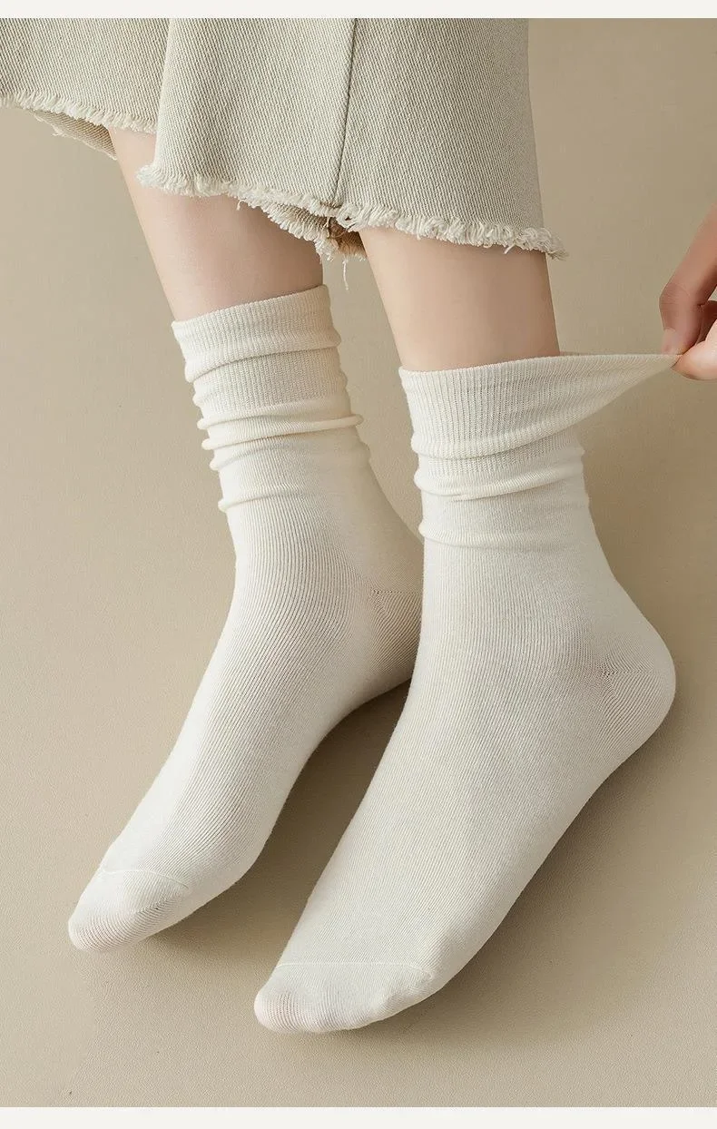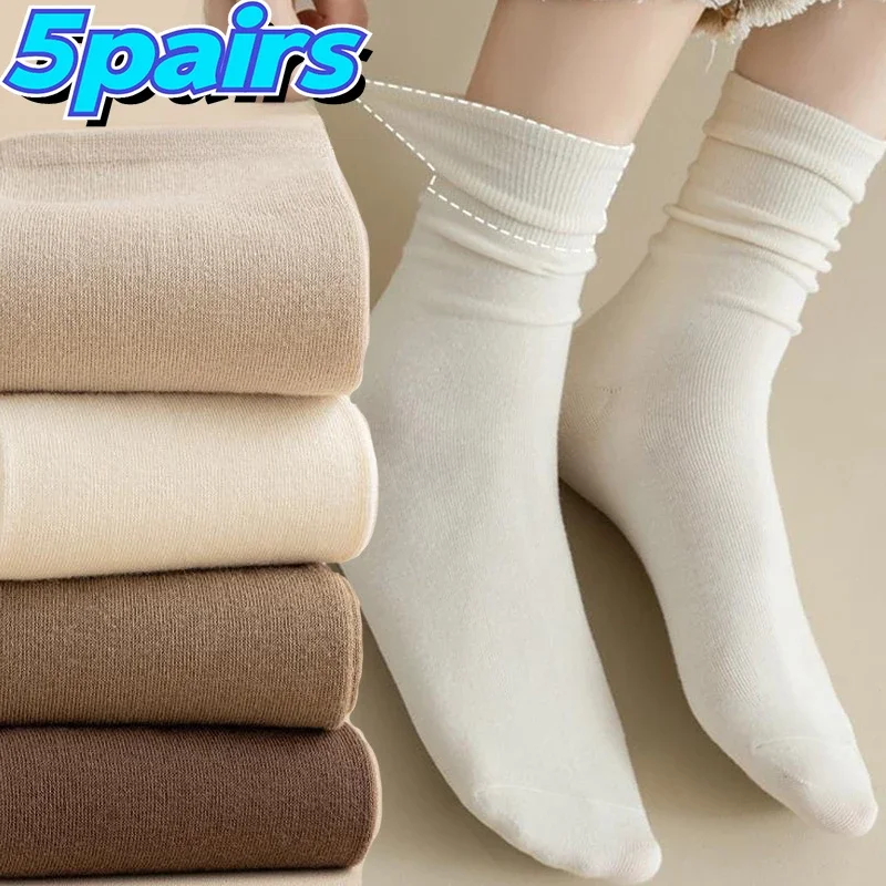 Lbsfy 5 Pairs Set Cotton Socks Medium Tube Knitted Loose Long Soft Solid Color Crew Casual Sock Black White Breathable Spring Autumn