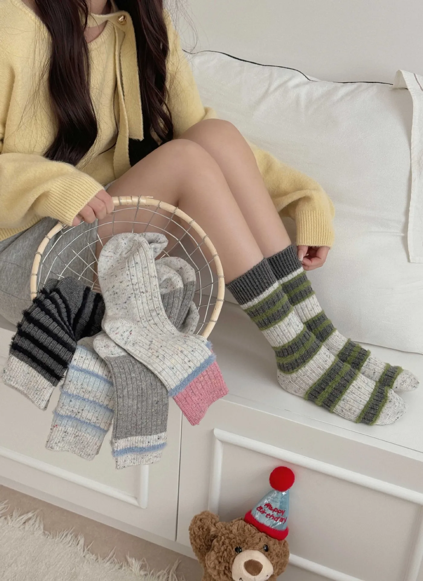 Lbsfy 5 pieces Wool Winter Thick Warm Cute Socks Cotton Korean Stripe Designer Socks Middle Tube Kawaii Casual Harajuku Women Socks