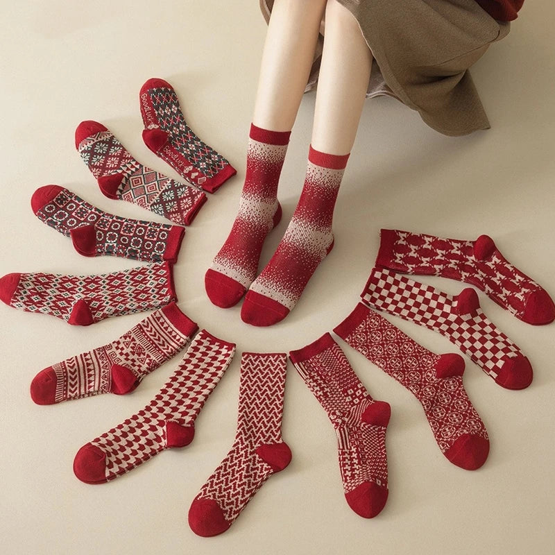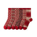 Lbsfy 6 Pairs Happy New Year Socks for Women Combed Cotton Fashion Red Christams Sock Sets Female Winter and Spring Double Needle Sock