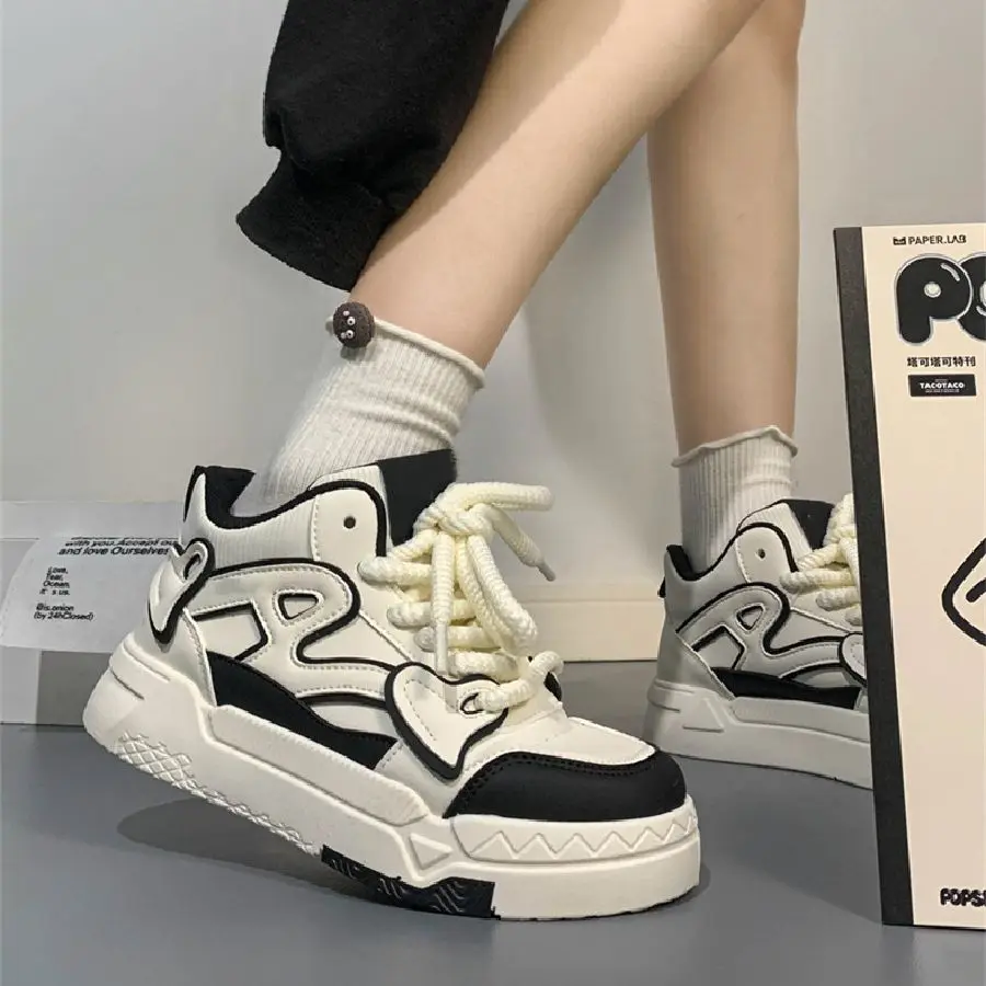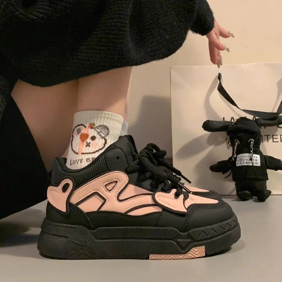 LBSFY - Autumn Designer Women Breathable Heart Sneakers Cute Shoes Thick Heel Sneakers Casual Running Platform Y2K Lolita Bread Shoes