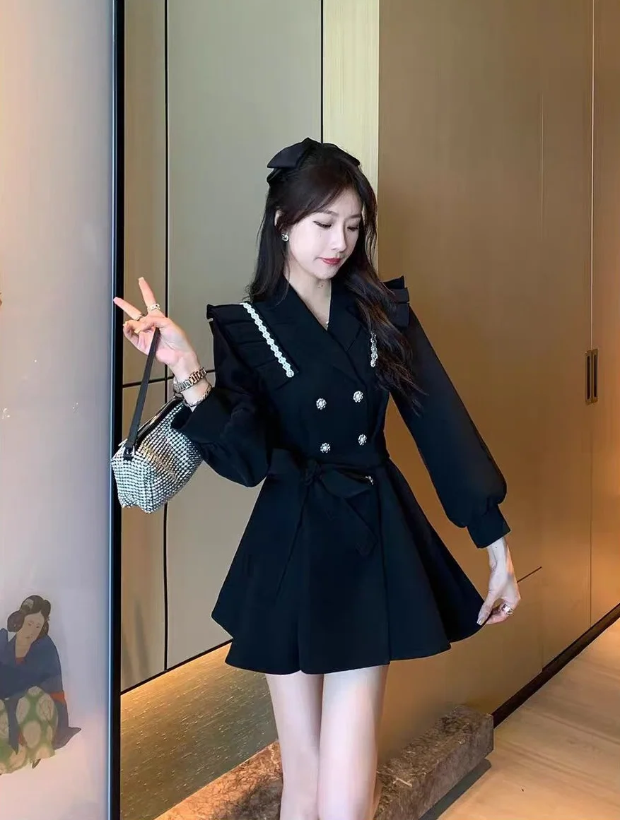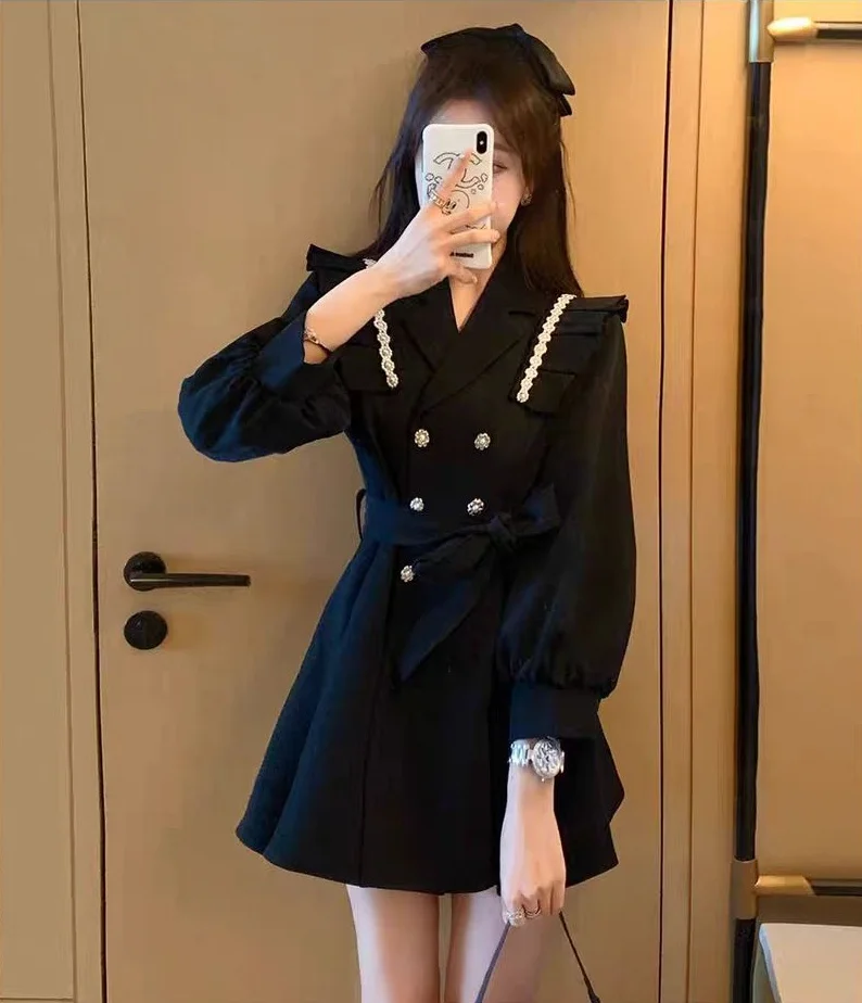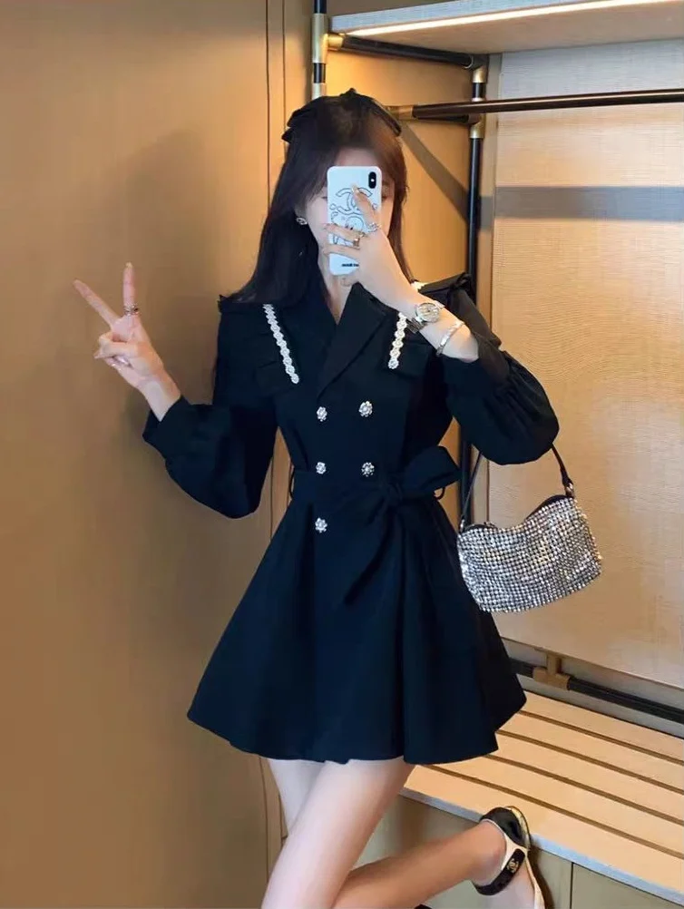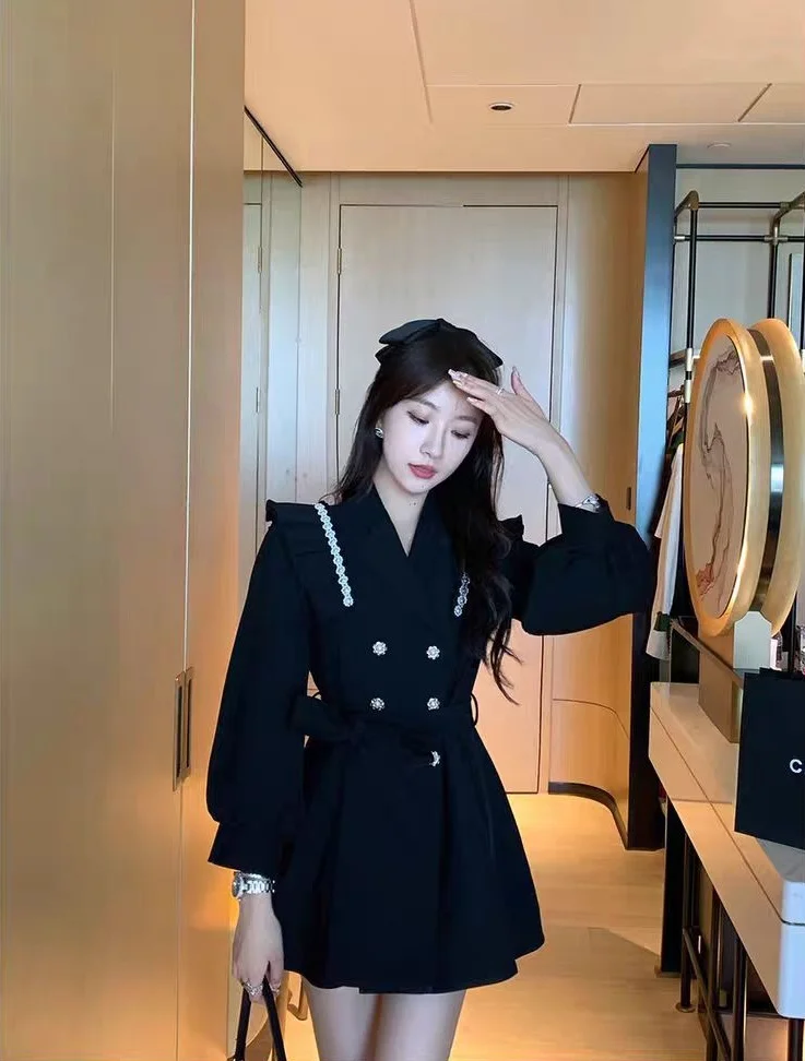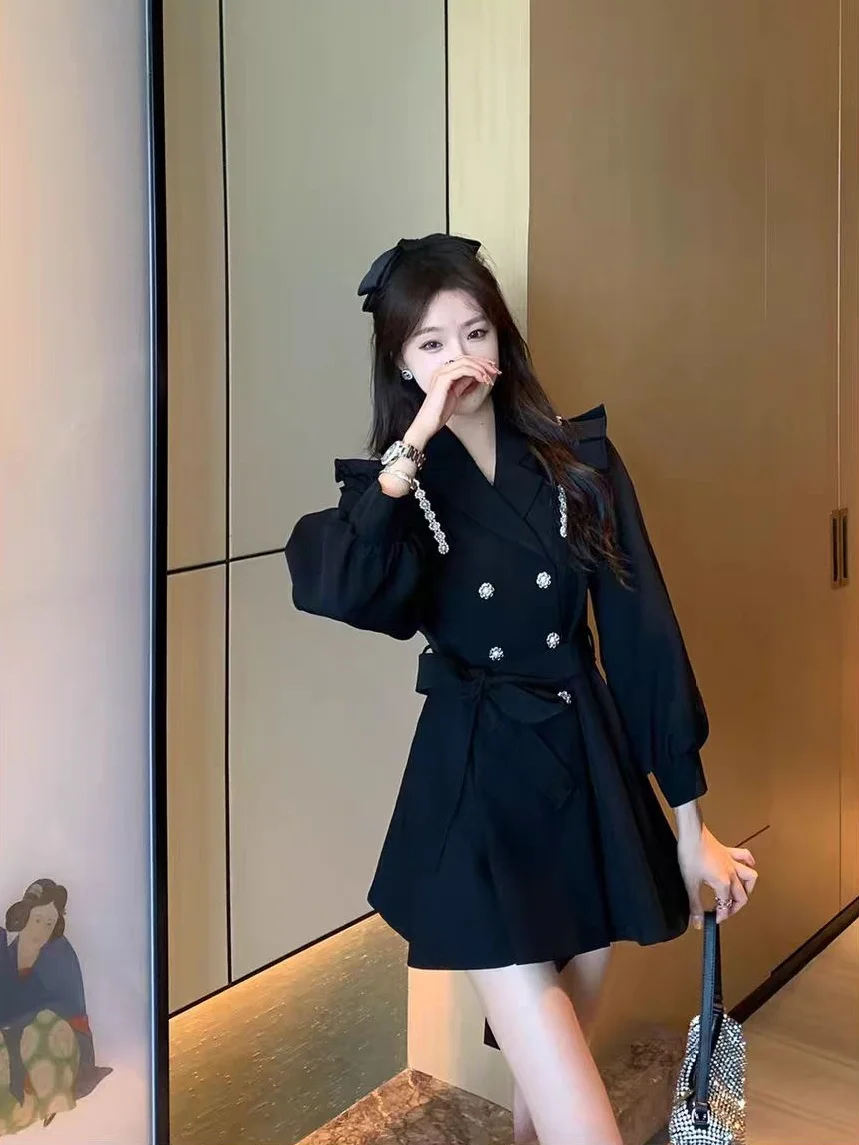 LBSFY -Autumn Elegant Blazer Dress for Women Female Double Breasted Solid A-line Evening Dresses Long Sleeve Female Casual Clothes 2024