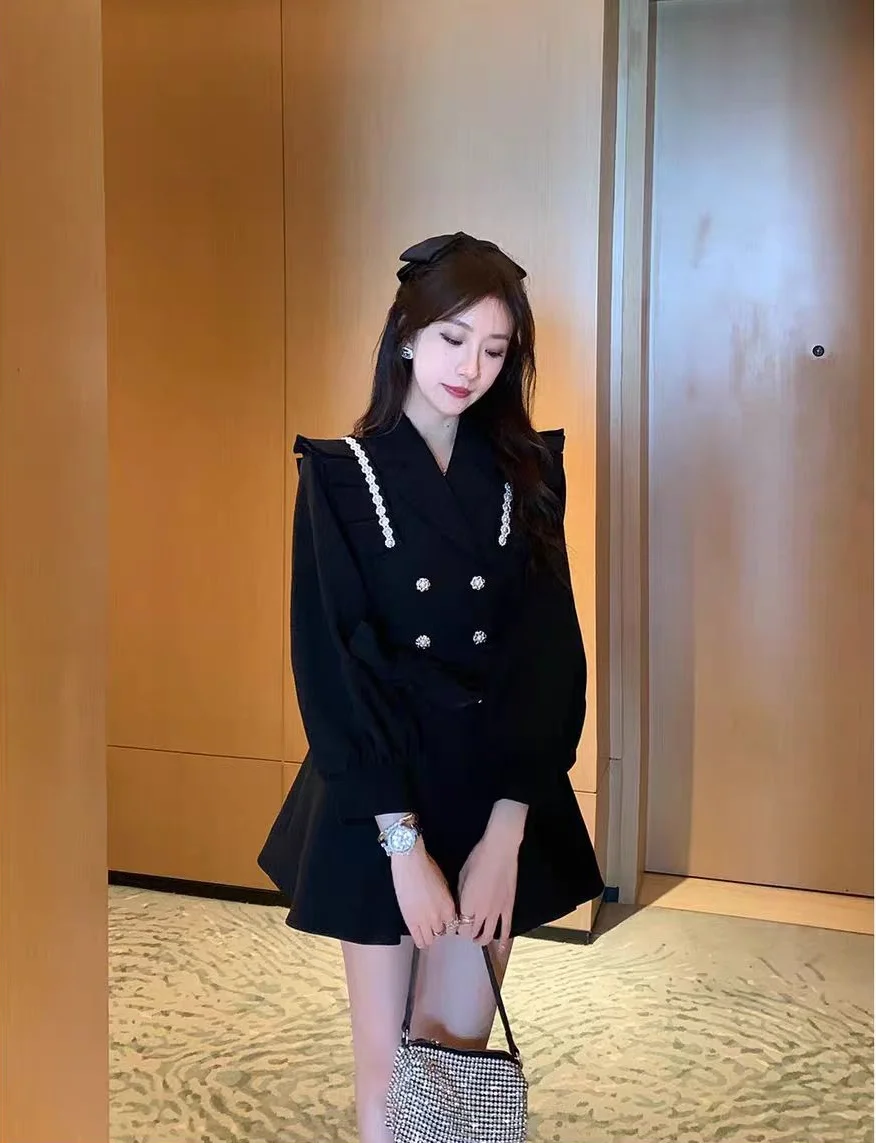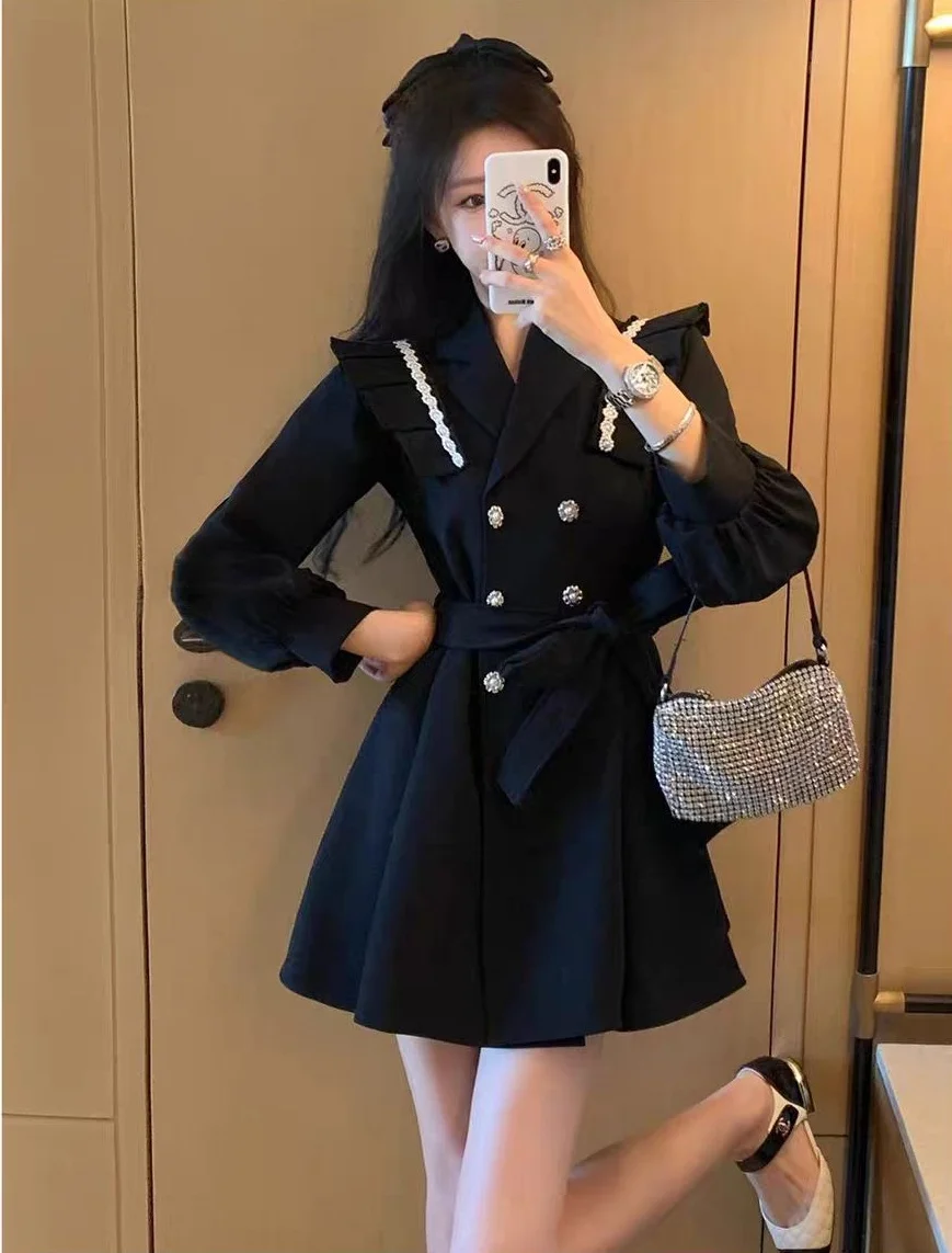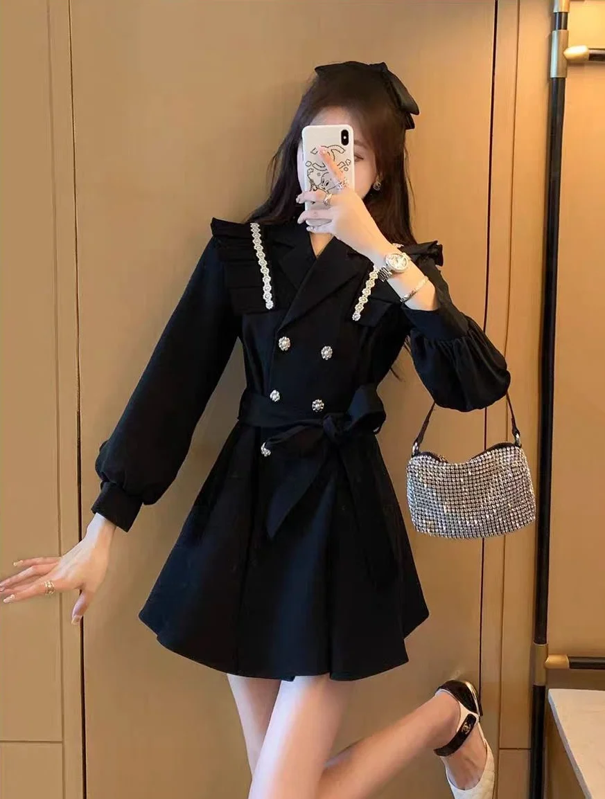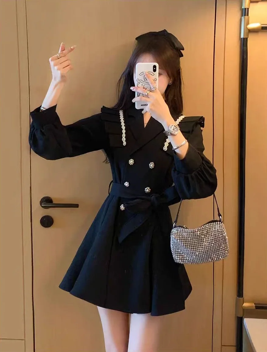 LBSFY -Autumn Elegant Blazer Dress for Women Female Double Breasted Solid A-line Evening Dresses Long Sleeve Female Casual Clothes 2024