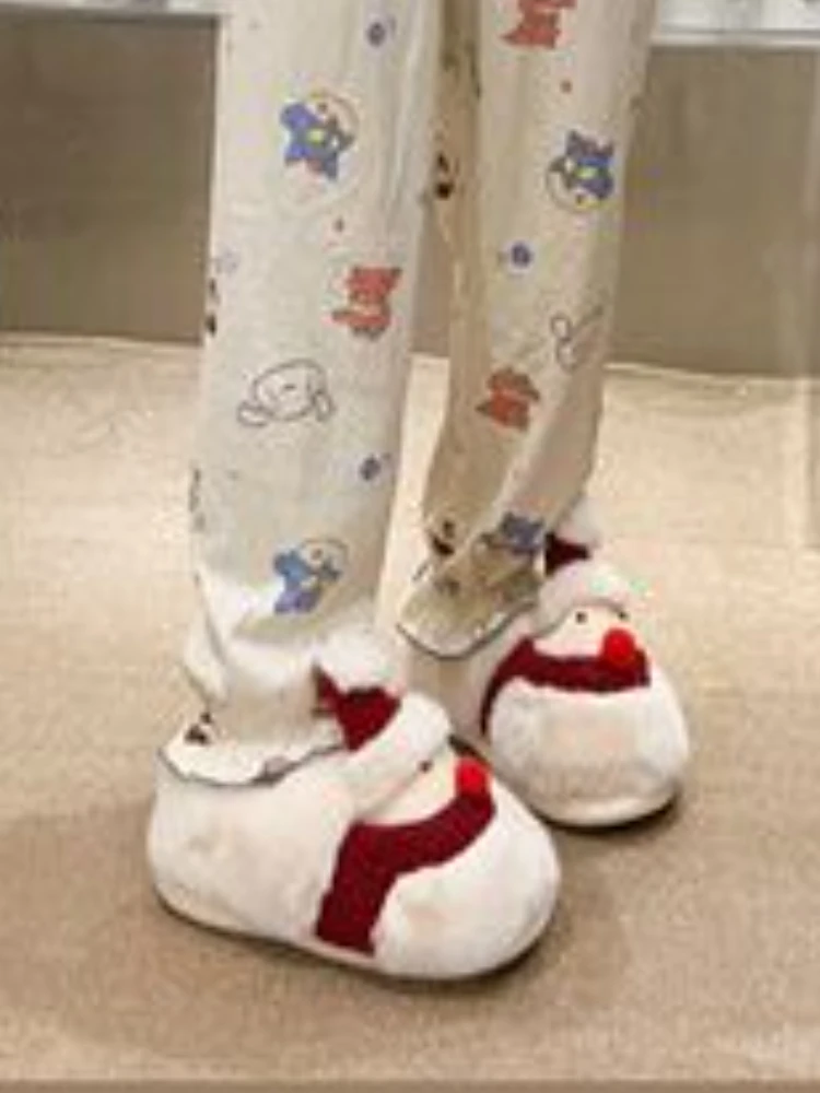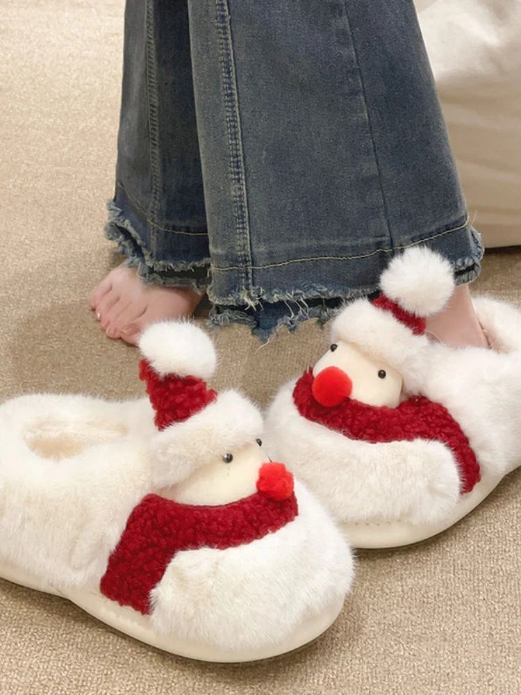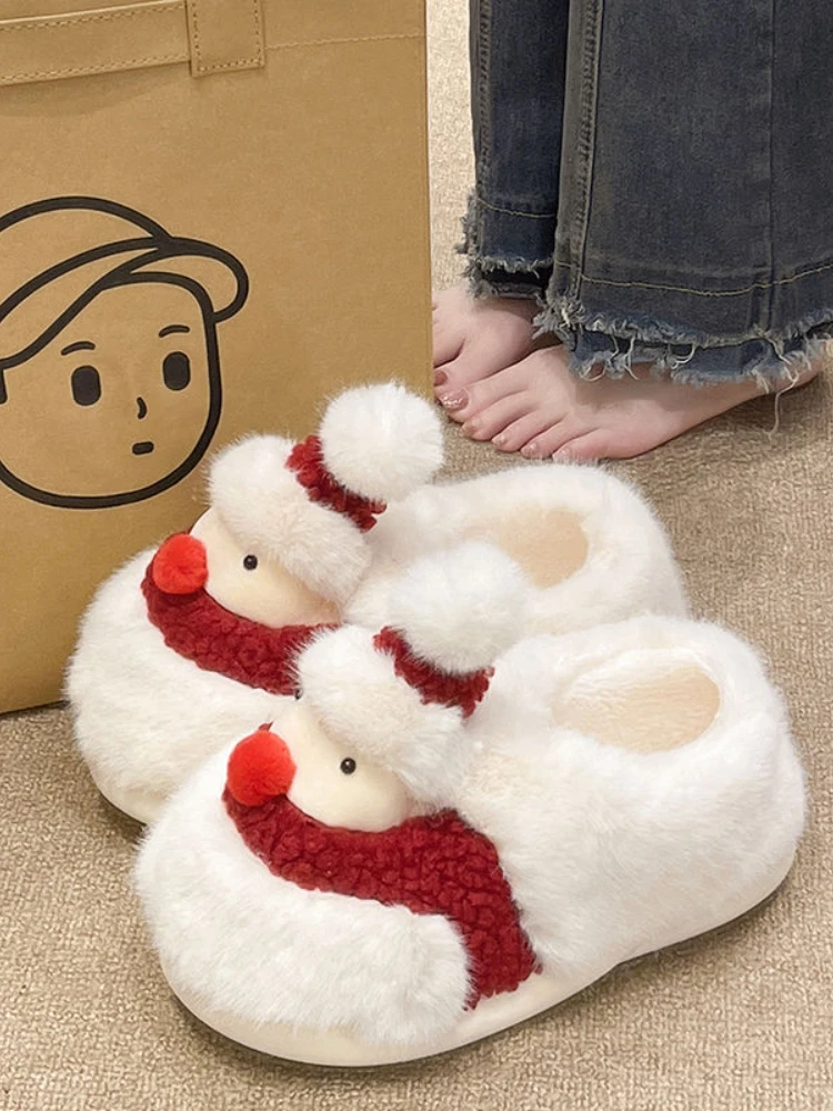 LBSFY - Autumn Fashion Lovely Snowman Cotton Slippers Women New Christmas Indoor Non-slip Shoes Female Thick Bottom Cartoon Warm Shoes