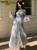 LBSFY -Autumn French Fashion Print Fairy Long Dresses Women Elegant Ruffles A-Line Party Birthday Vestido Female One Piece Clothes New