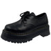 LBSFY -Autumn New Fashion Black Round Head Lace-up Solid Color Womens Loafers Casual Thick Soled Leather Women's Thick Soled Shoes