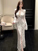 LBSFY -Autumn Sexy Long Sleeves Party Dress for Women Elegant Hollow Out Lace Bandage Bodycon Prom Vestidos Female Split Robe Outfits