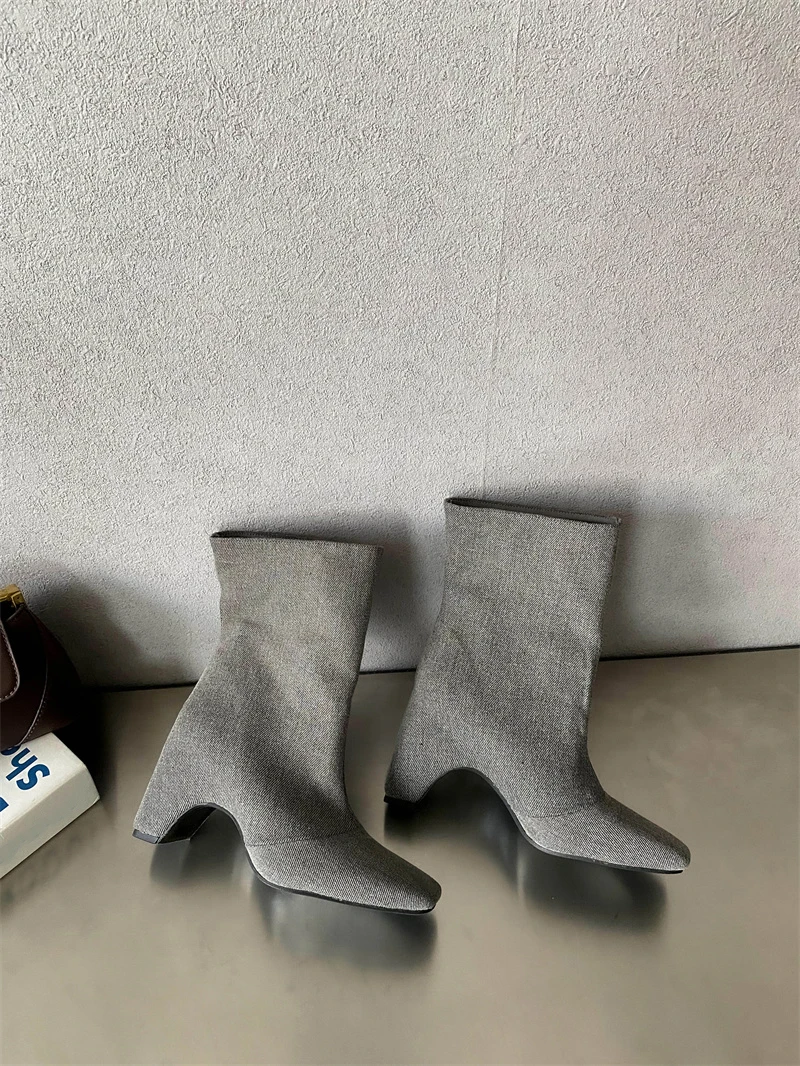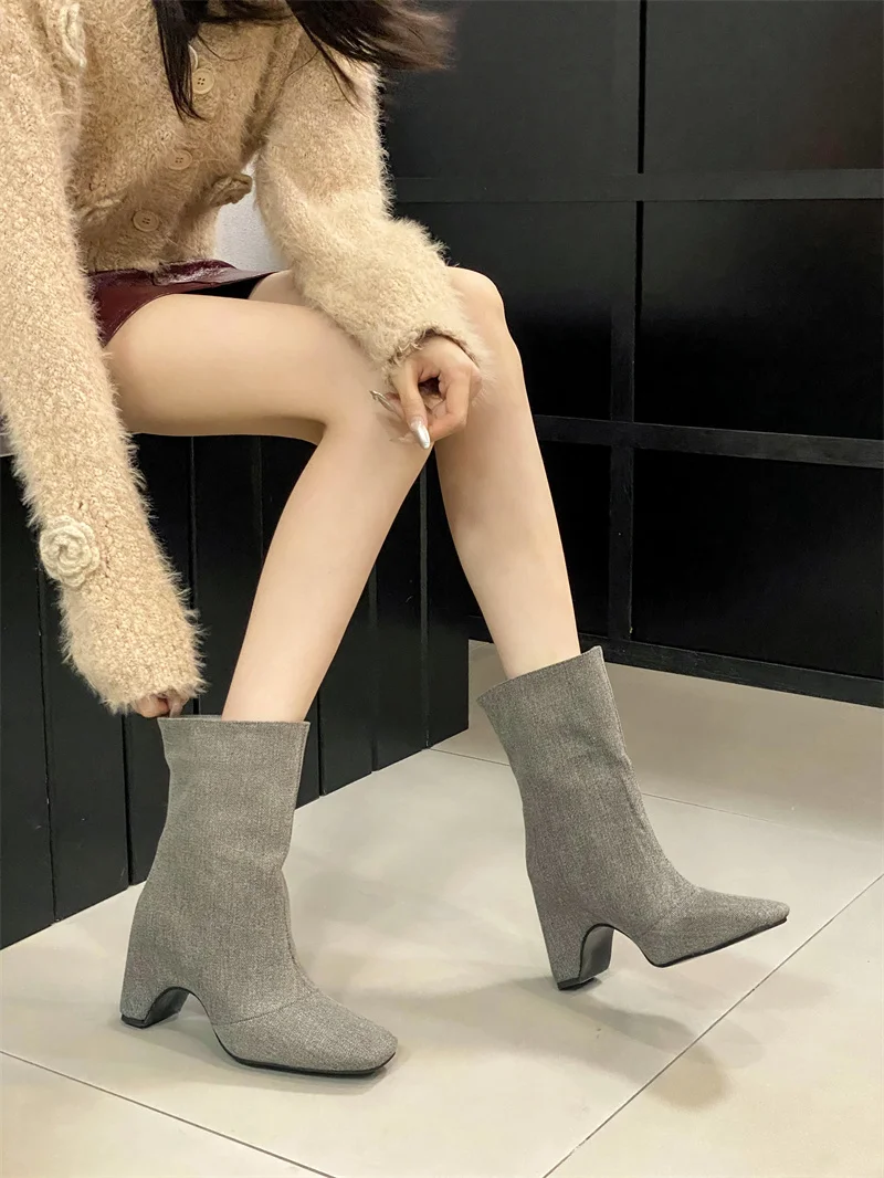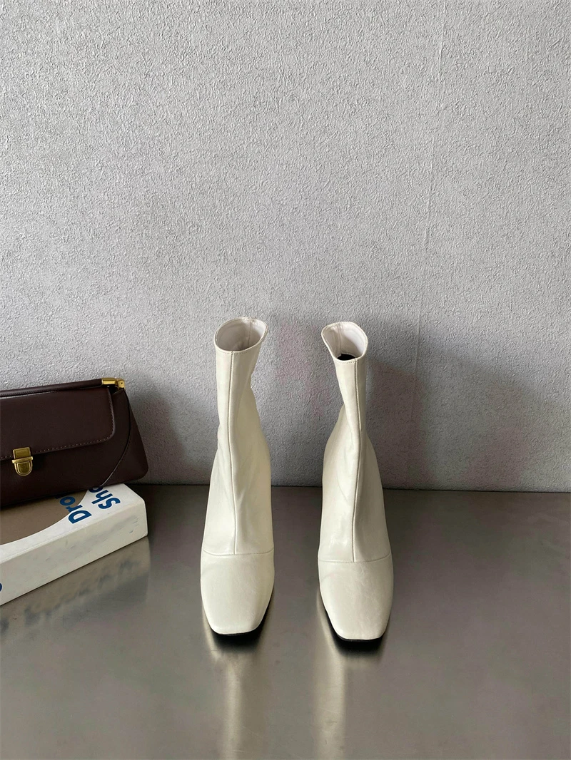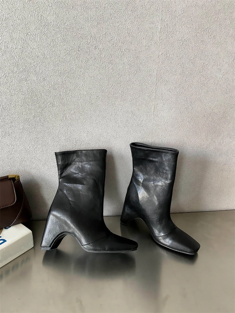 LBSFY - Autumn Winter Chelsea Ankle Boots Women Cozy PU Leather High Heels Fashion Square Toe Slip On Ladies Party Shoes Booties