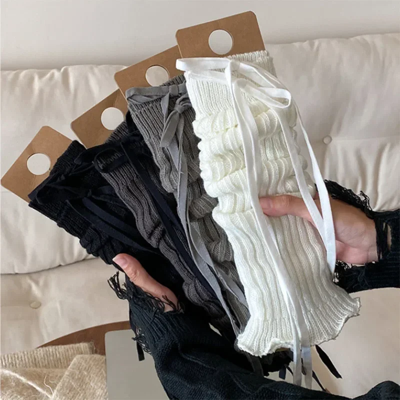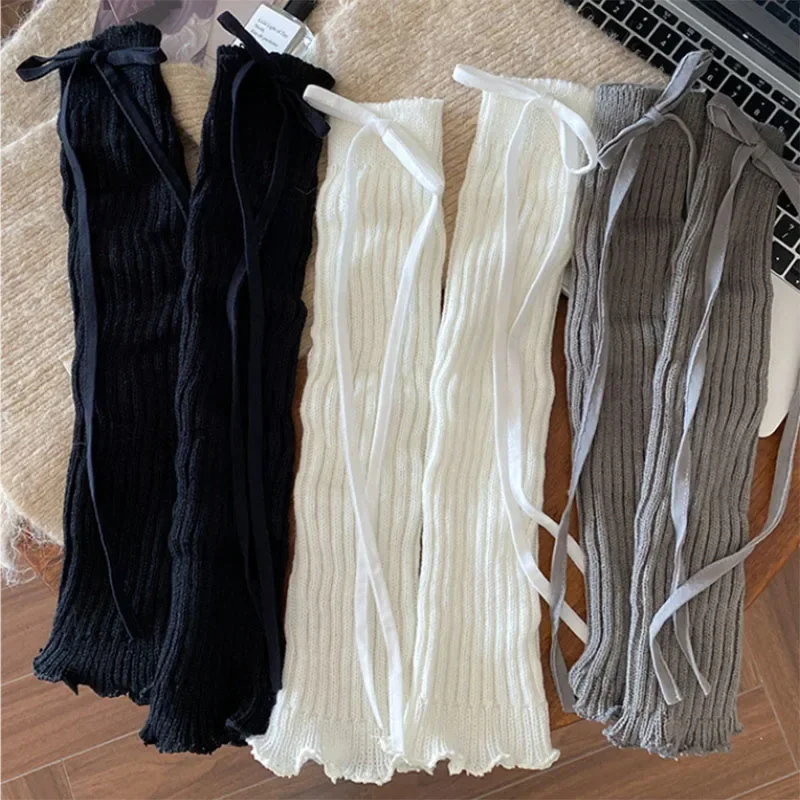 Lbsfy Autumn Winter Children Leg Warmers Lolita Lace Bowknot Knitted Socks Baby Girls Warm Foot Cover Cute Sweet Socks Long Stockings