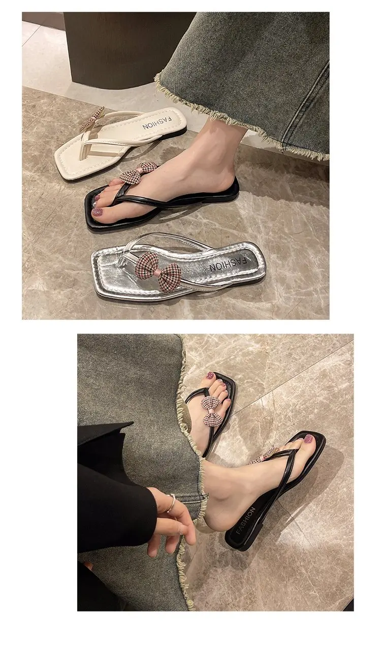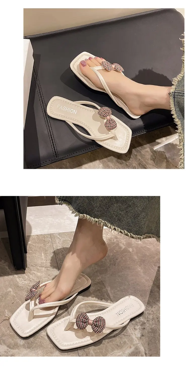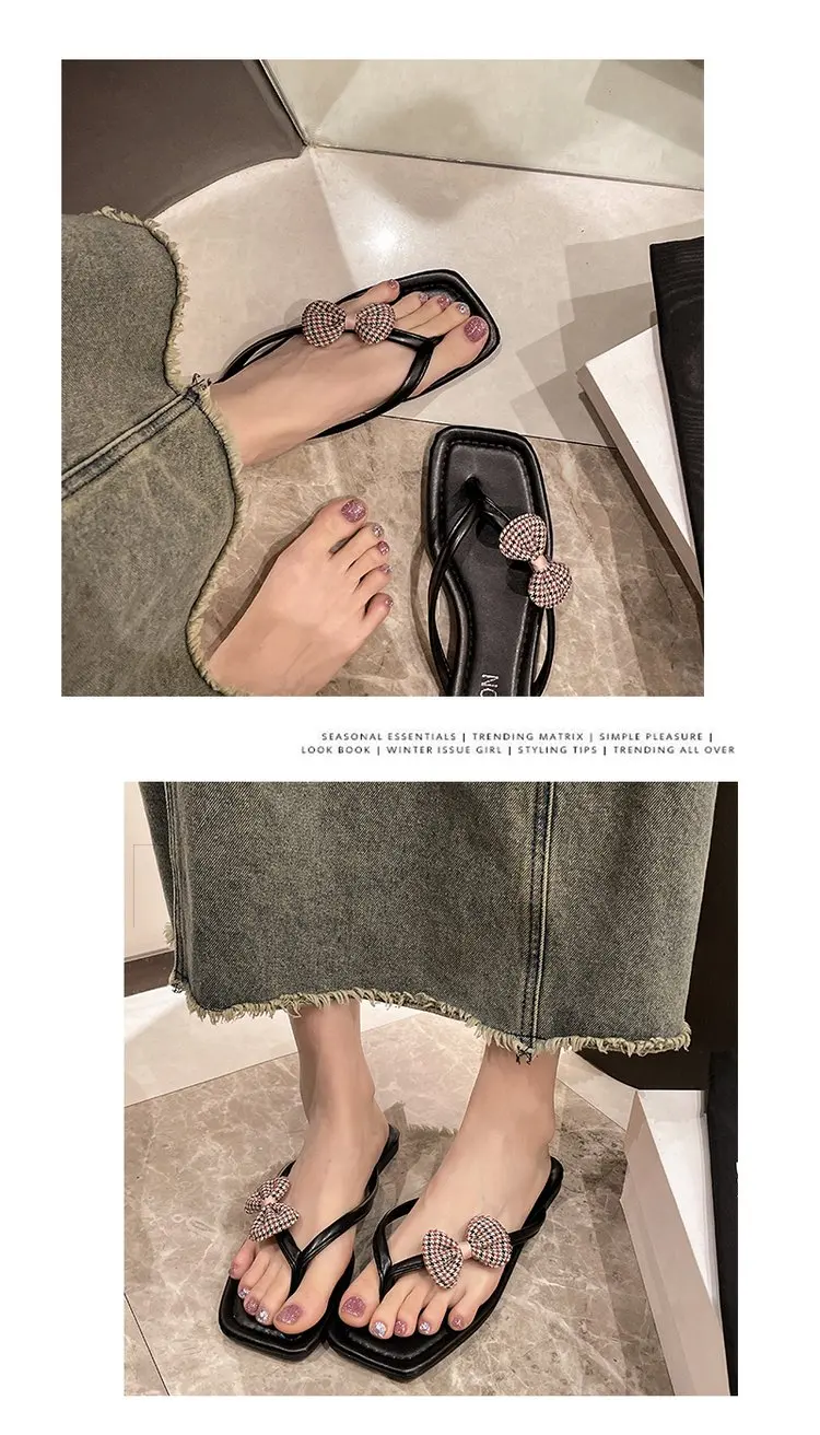 LBSFY - Beach Shoes Slippers Casual Low Rubber Flip Flops Butterfly-Knot Slides Sabot Luxury Soft Hawaiian Flat Butterfly-knot PU