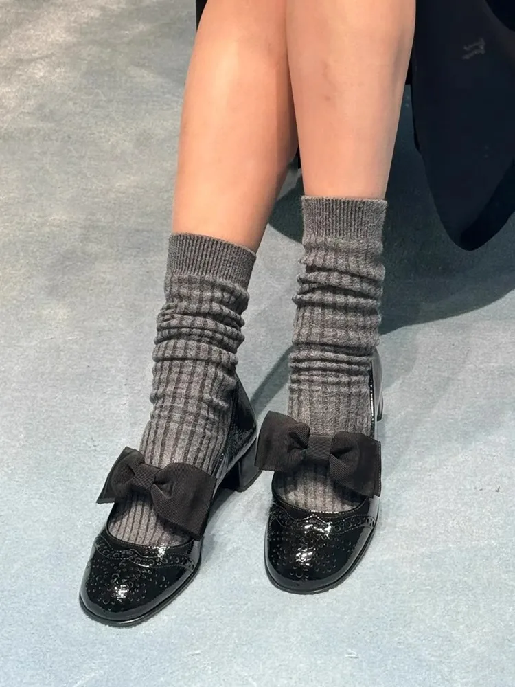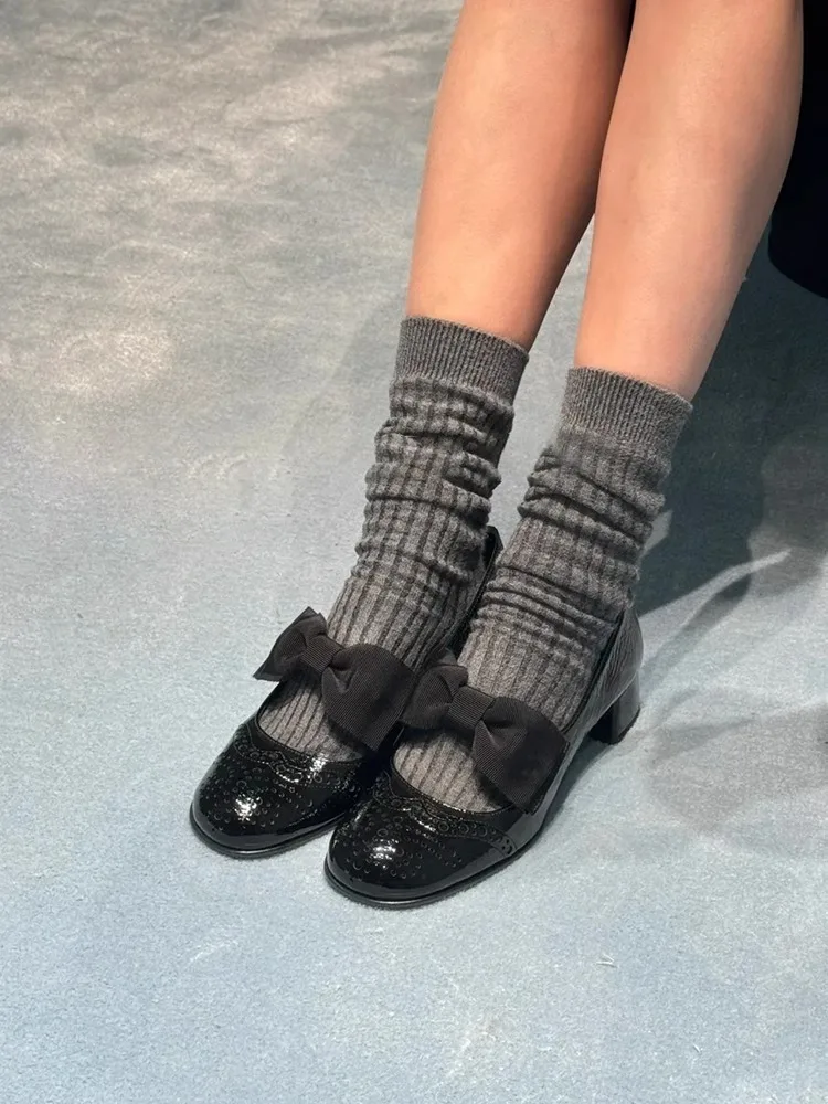 LBSFY  -  Black Butterfly-knot Female Pumps Round Toe Chunky High Heels Ankle Strap Shallow Luxury Party Dress Summer Women Shoes Loafers