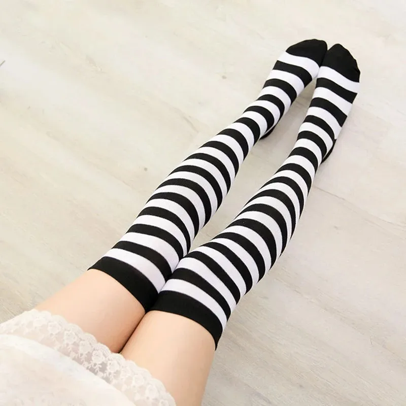 Lbsfy Black Pink Blue Lolita Striped Stockings For Women Lovely School Girls Knee High Long Stockings Cosplay Anime Student Socks