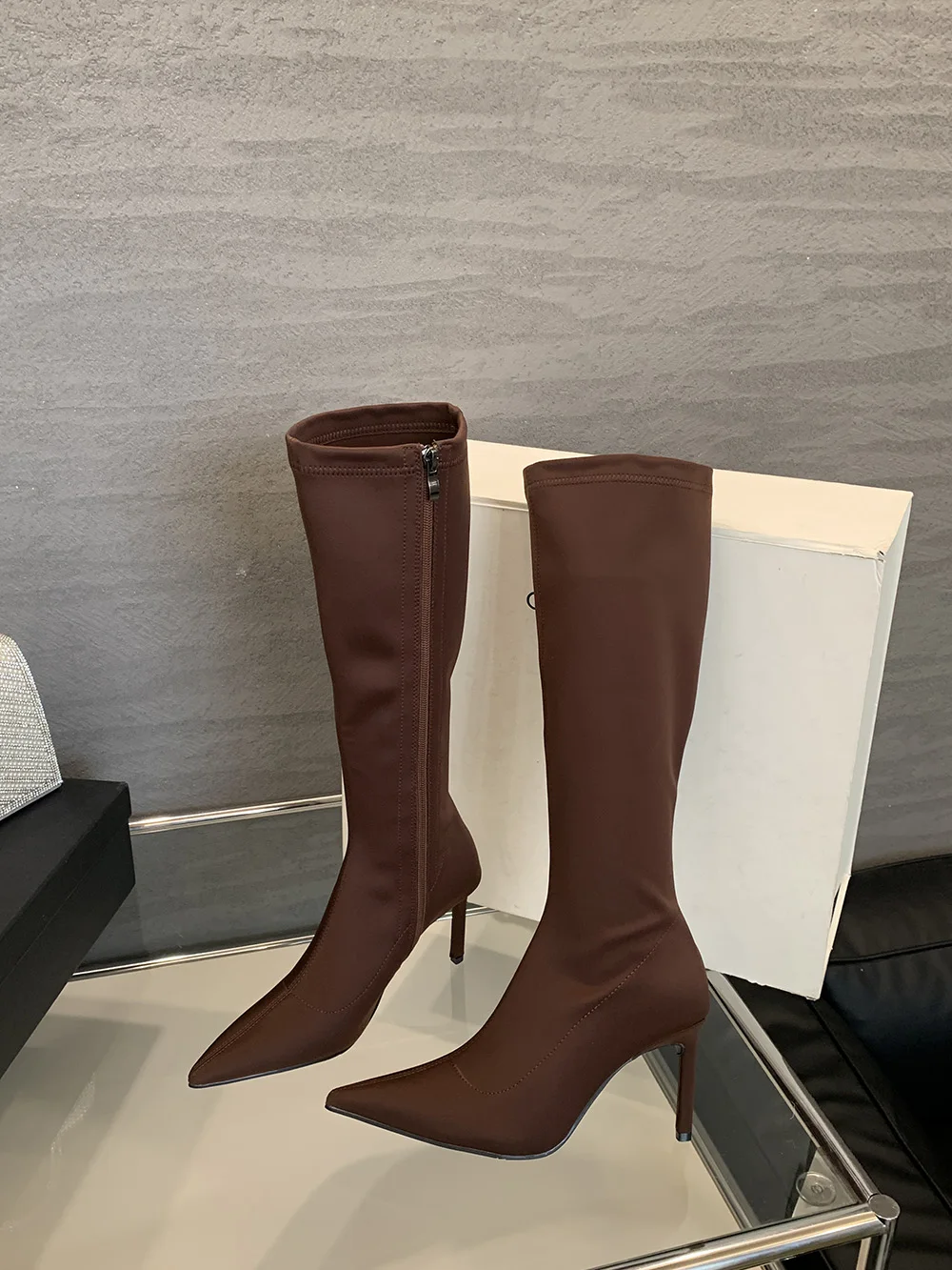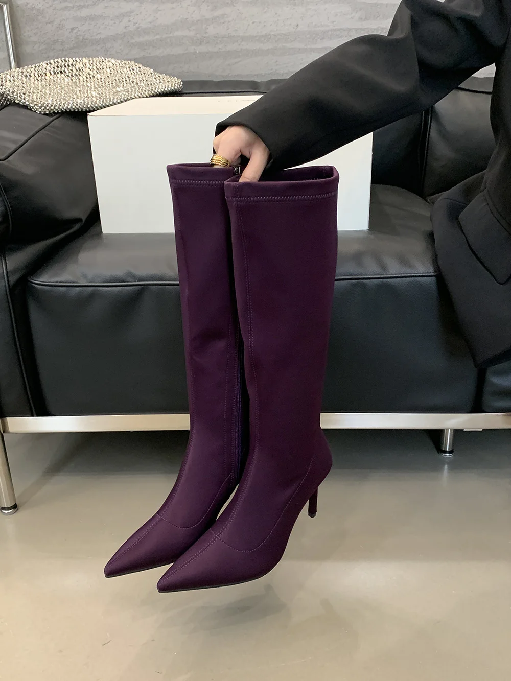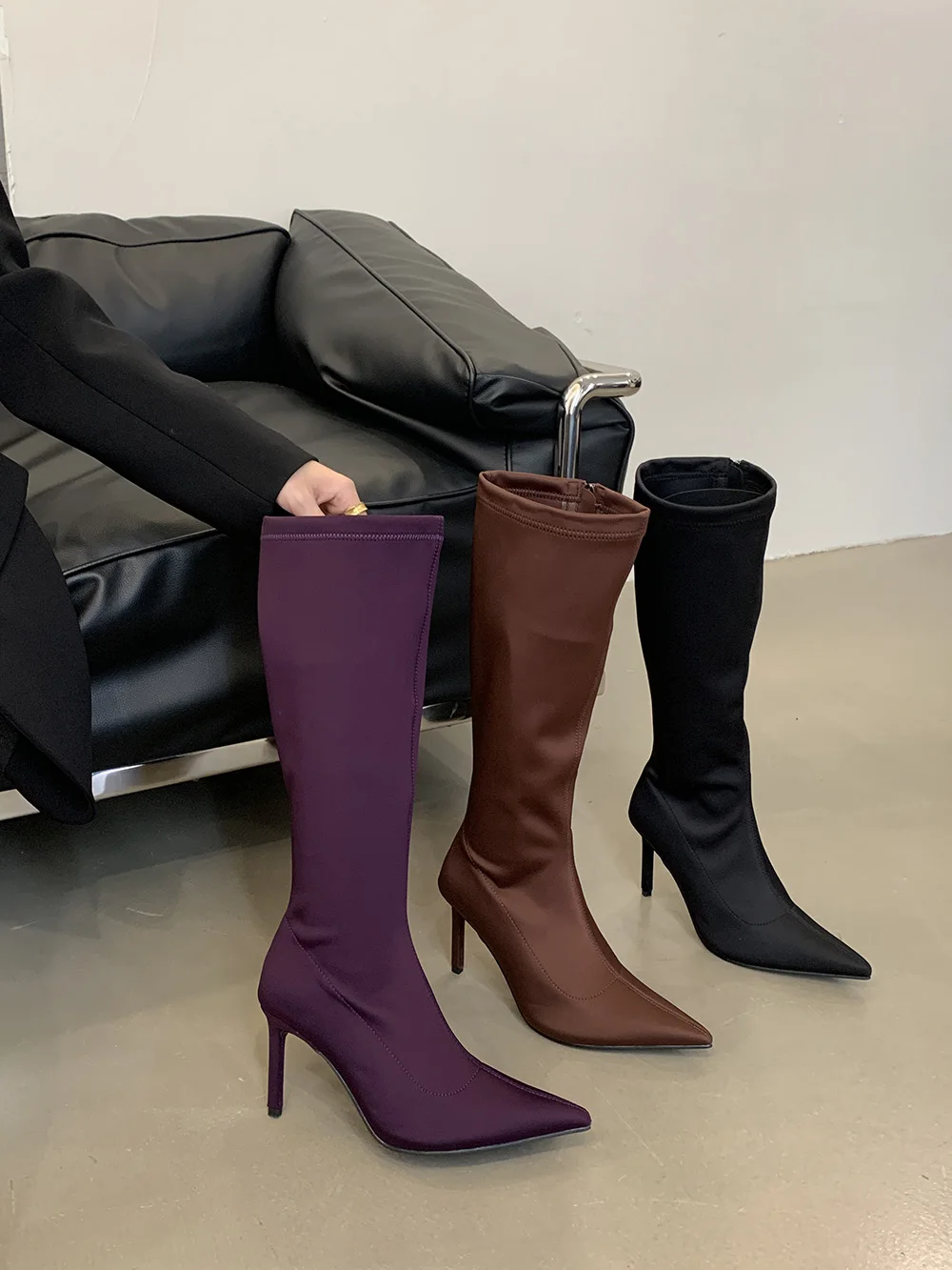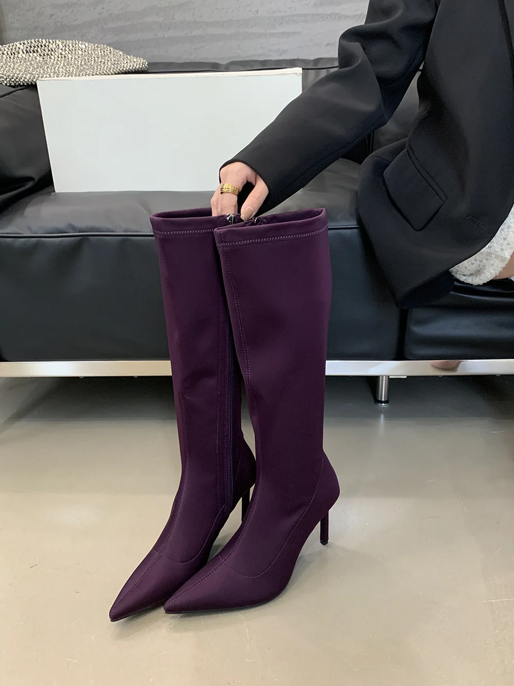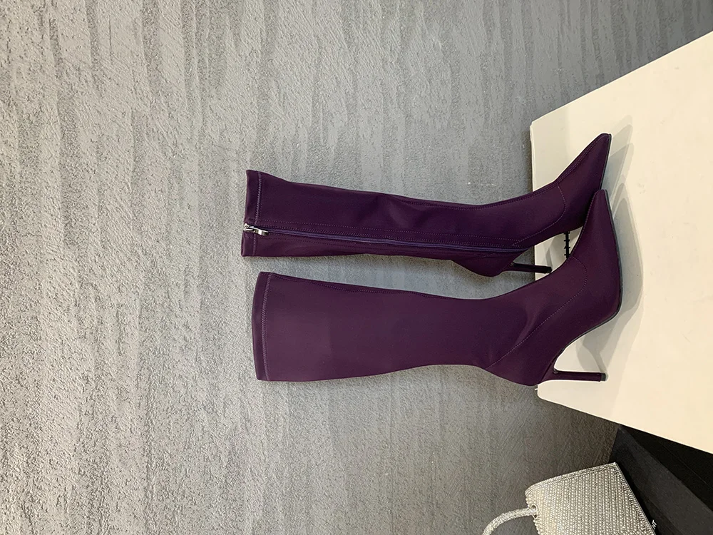 LBSFY - Black Purple Brown Women Knee High Boots Chelsea Botas Thin High Heels Side Zipper Party Pumps Shoes Winter Boot Woman Gladiator