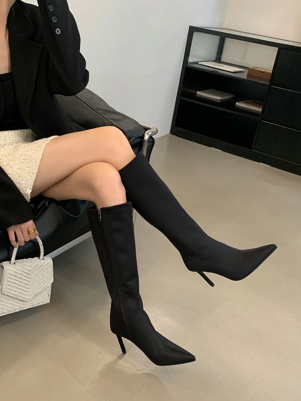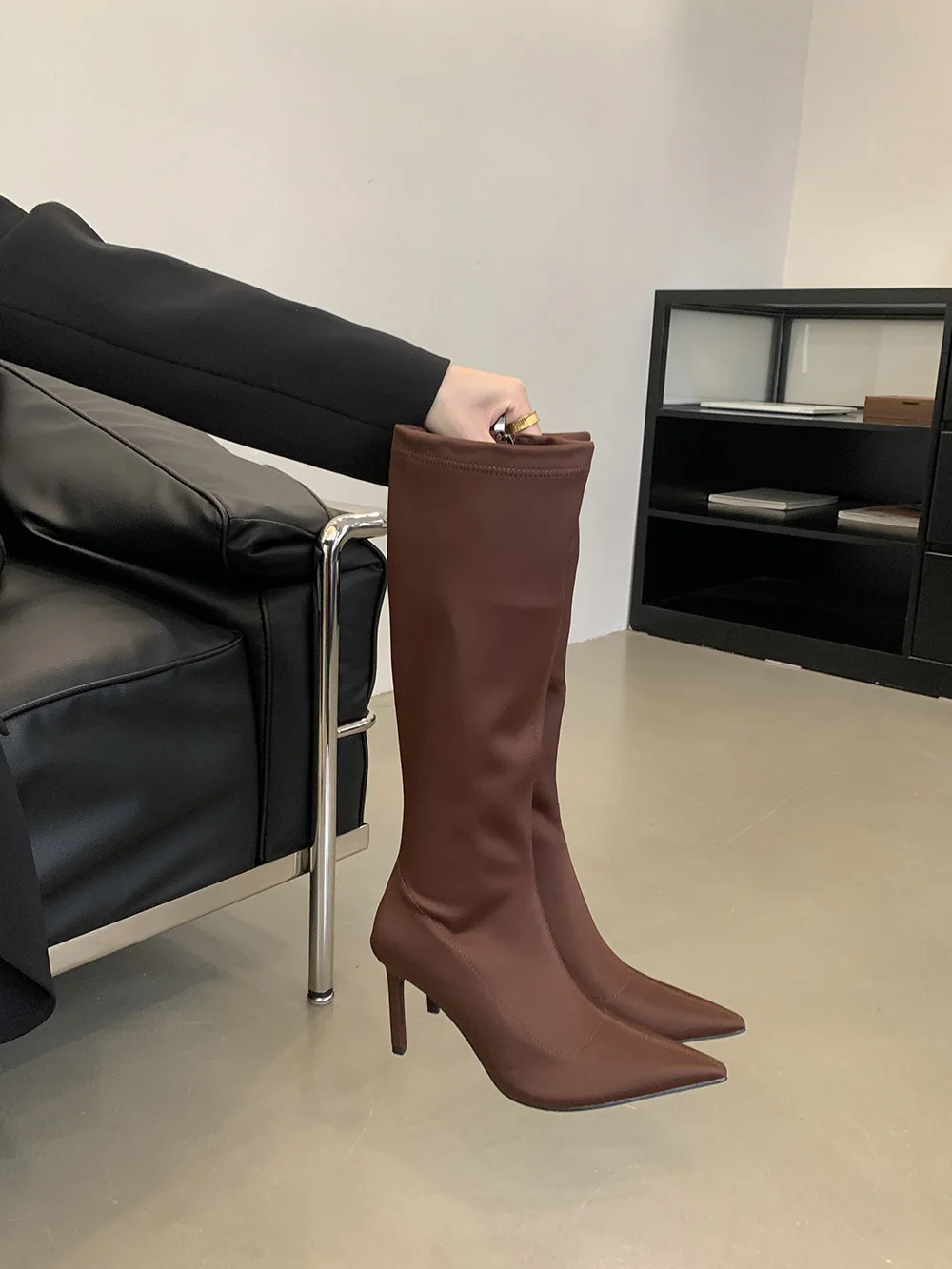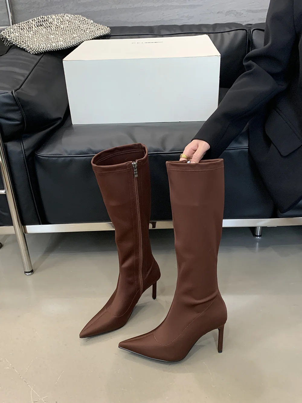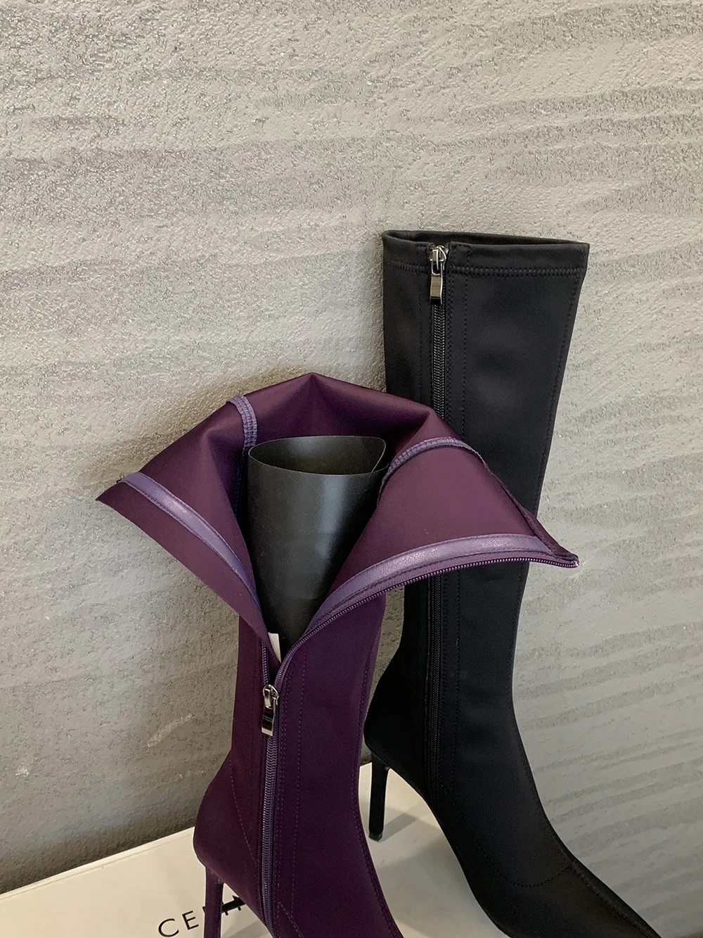 LBSFY - Black Purple Brown Women Knee High Boots Chelsea Botas Thin High Heels Side Zipper Party Pumps Shoes Winter Boot Woman Gladiator